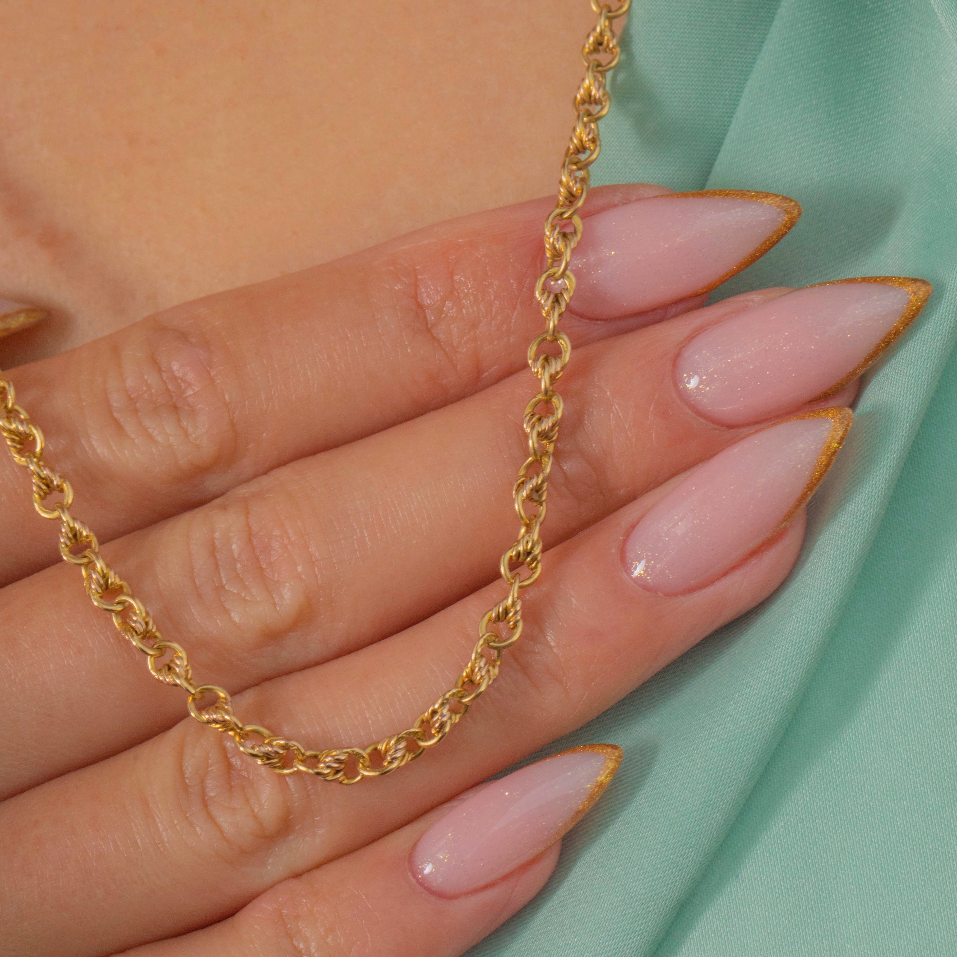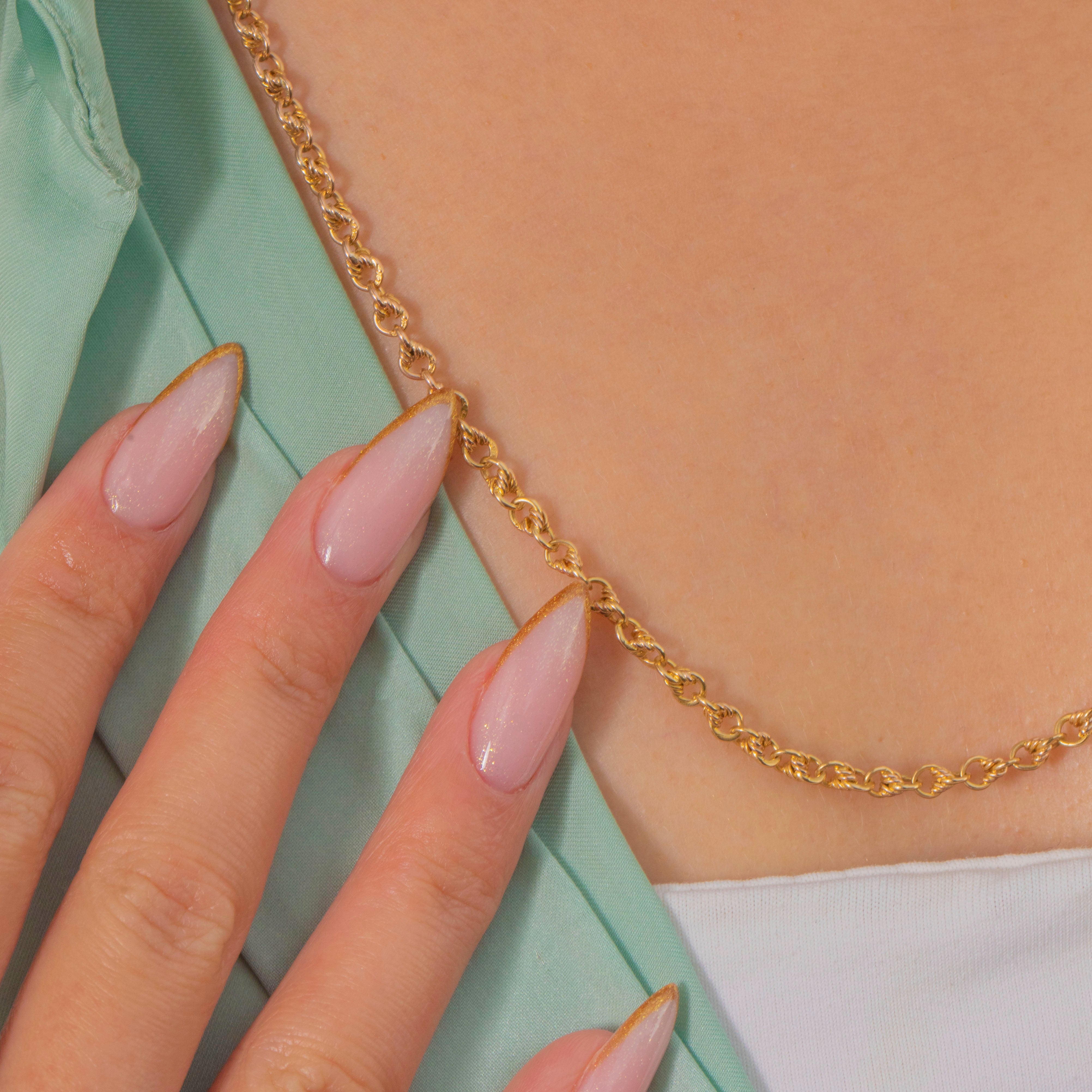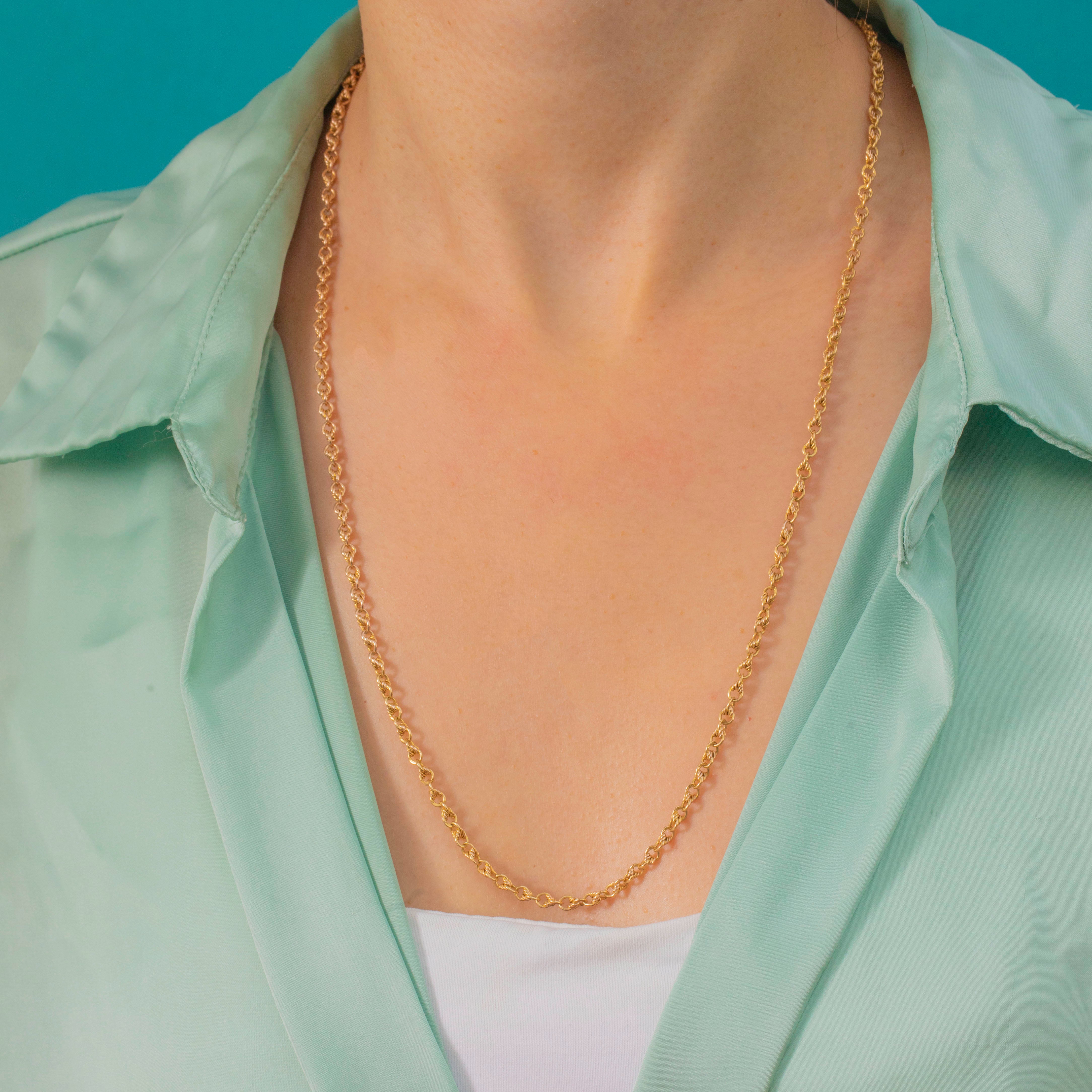 The craftsmanship is superb, with each link elegantly catching the light as it moves. This versatile chain is perfect for layering or for wearing alone to showcase its sculptural beauty.