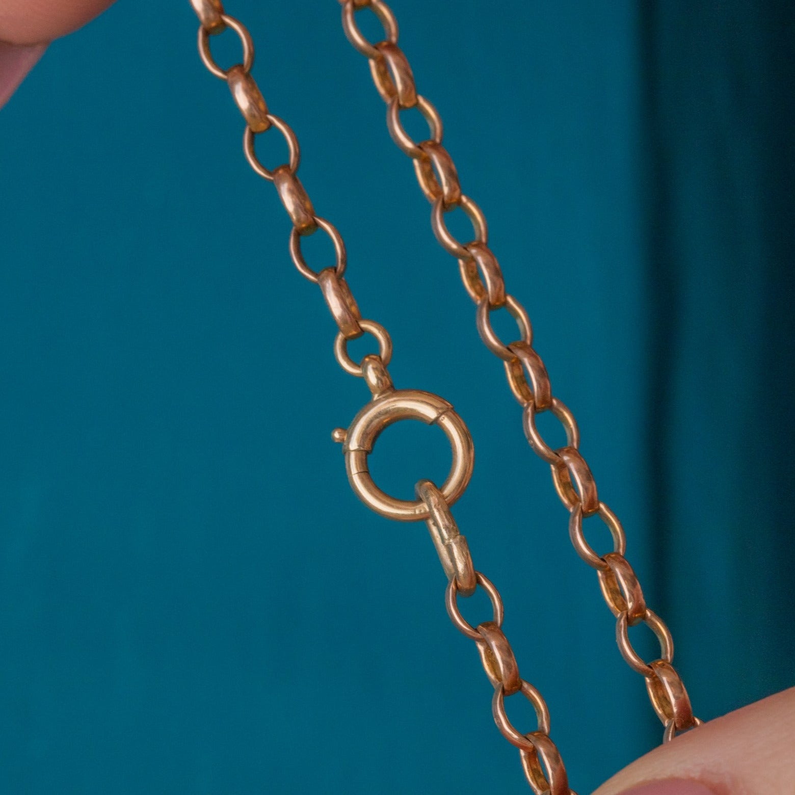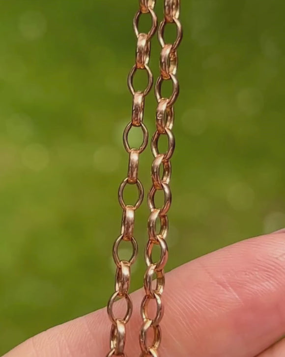 EXCELLENT. This 23" 9ct Gold belcher chain is in excellent condition. The links are all firmly connected and free from dings or scuffs. The bolt-ring is fully functioning for secure wear and provides versatility as you can suspend a pendant from it! This antique Gold chain can be worn and adored for decades more.