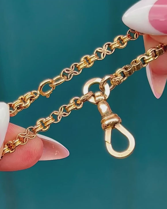 24" Antique 9ct Gold Fancy Link Chain with 9ct Gold Dog-Clip