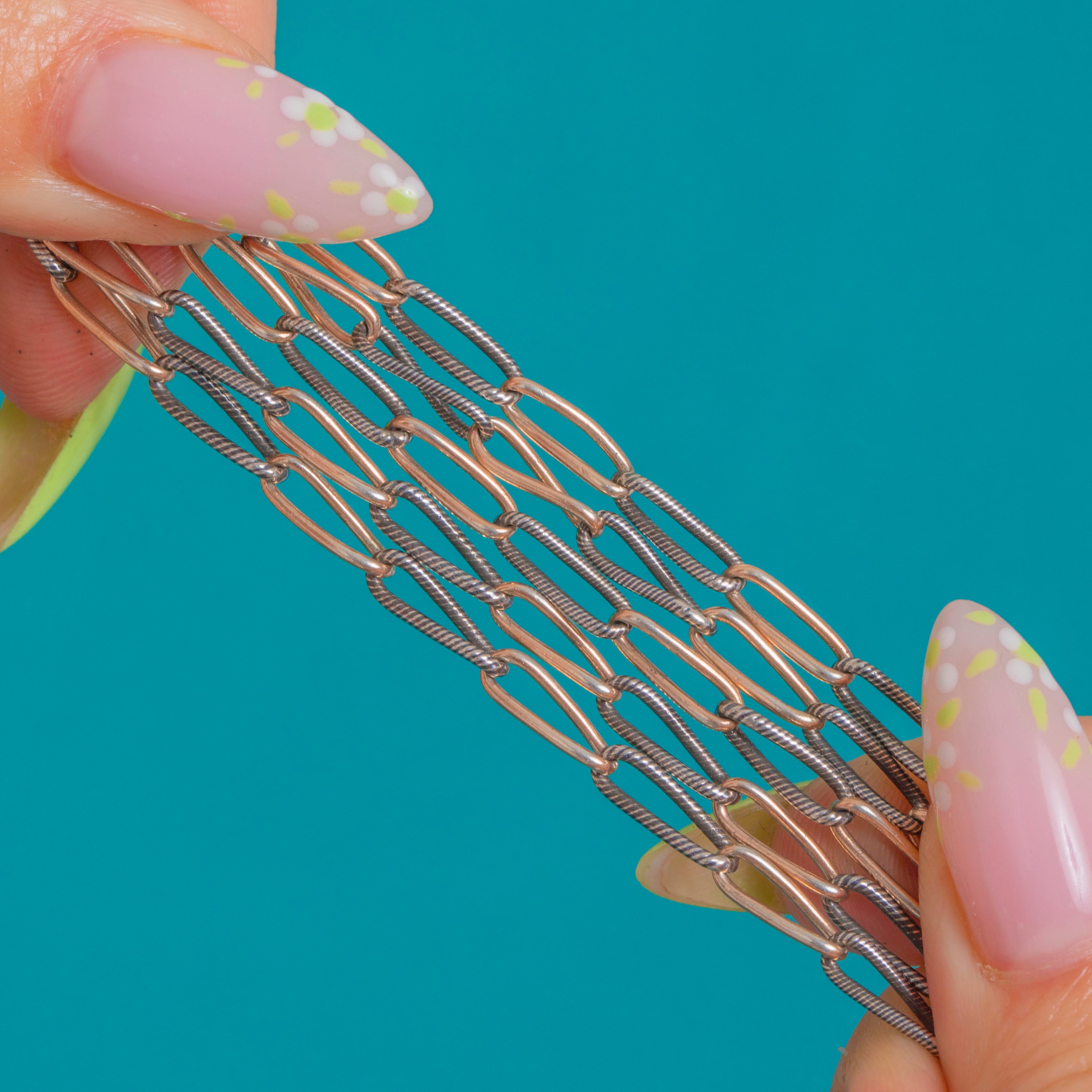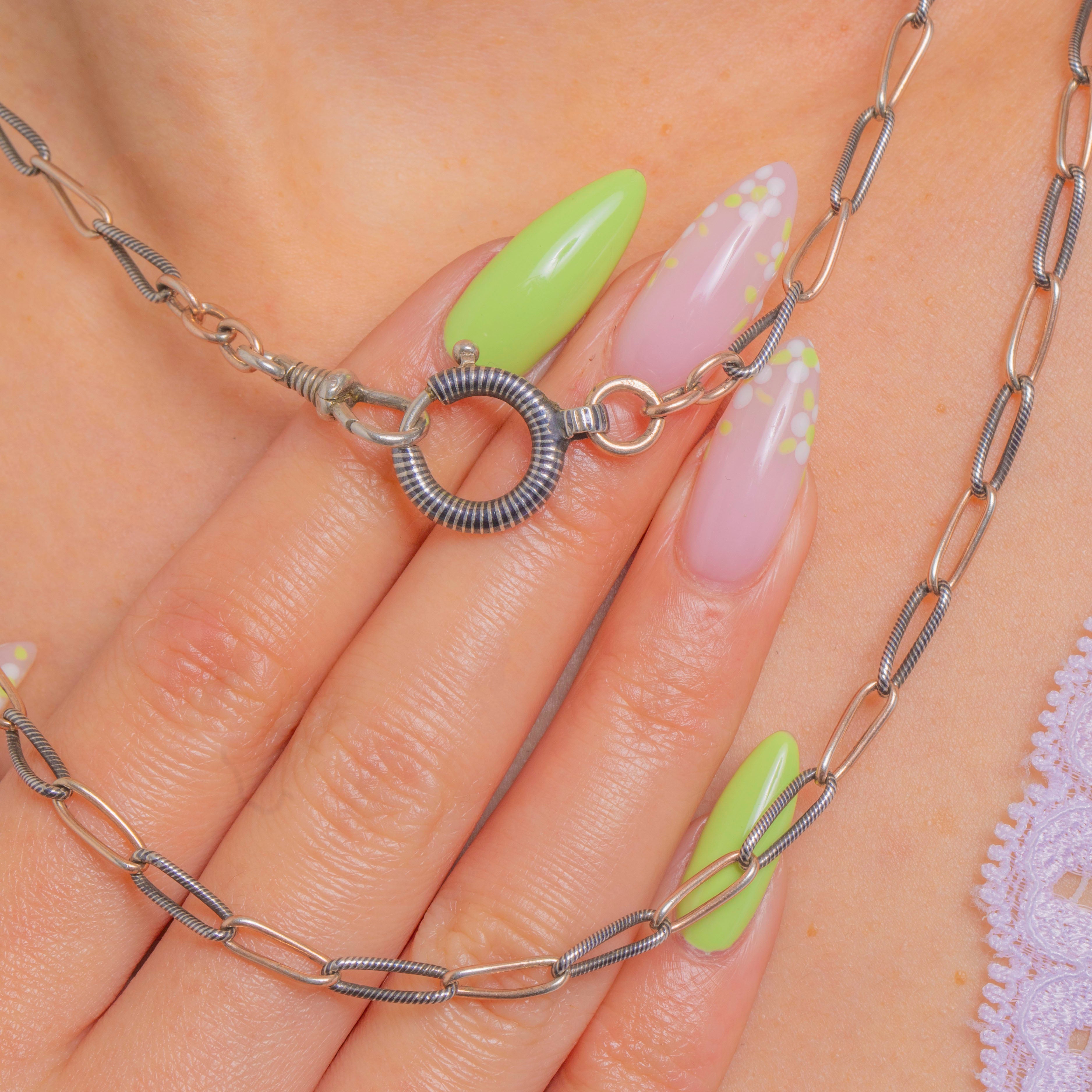 A true Victorian classic, this 64" Niello longuard chain is sleek, versatile and steeped in antique charm. The inky depth of Niello plays beautifully against the warmth of Gold Plated Silver, creating a refined contrast that feels both understated and luxurious.