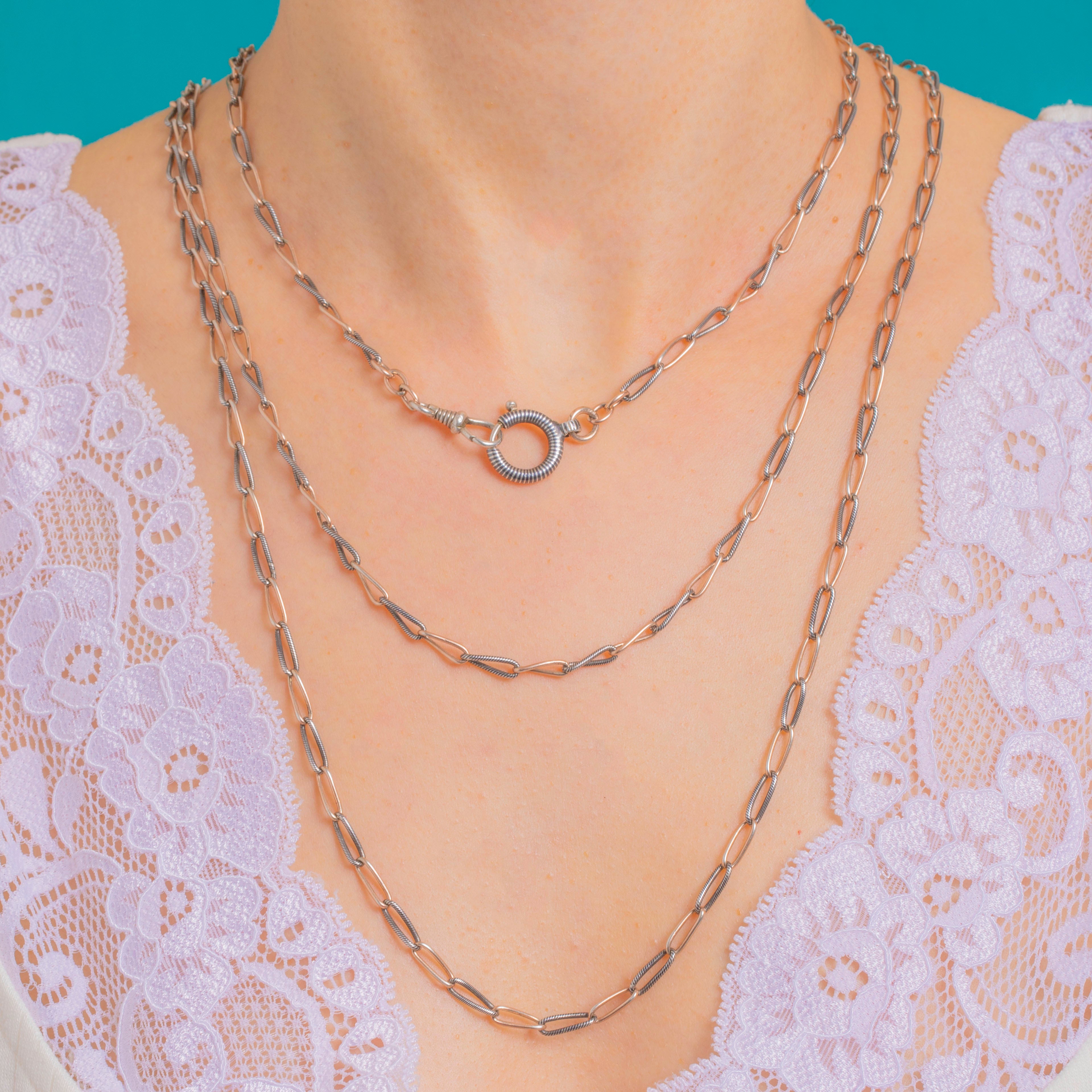 Finished with both a bolt ring and a dog clip, it offers multiple styling possibilities and easy attachment for your favourite pieces. Elegant at 2.5mm wide, it drapes effortlessly whether worn long or wrapped.