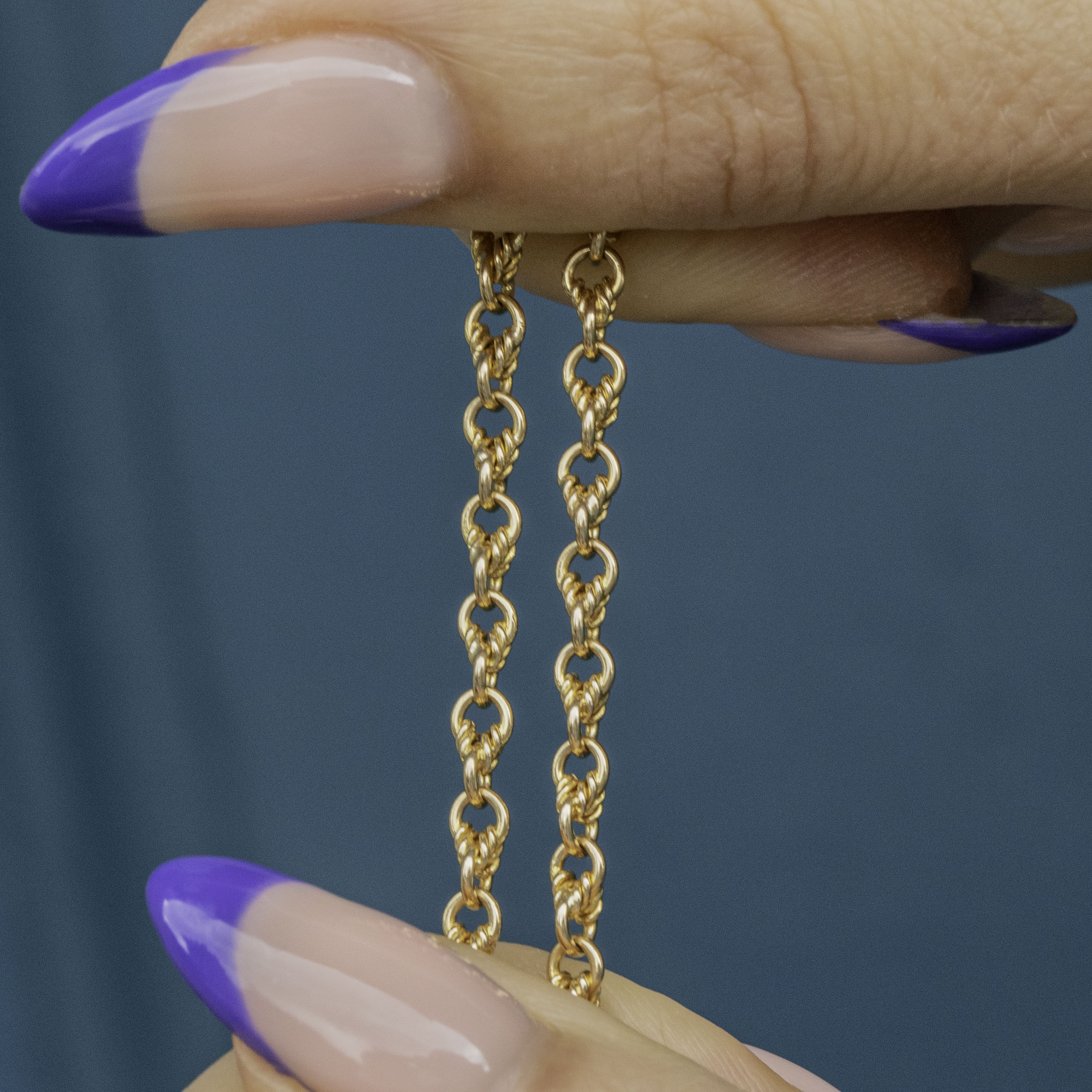 This 7" antique 15ct Gold lovers knot bracelet is a jewellery box essential! Bringing a splendorous splash of Gold to any wrist stack, her 7-inch length is formed of dainty lover's knot links that effortlessly caress your wrist.