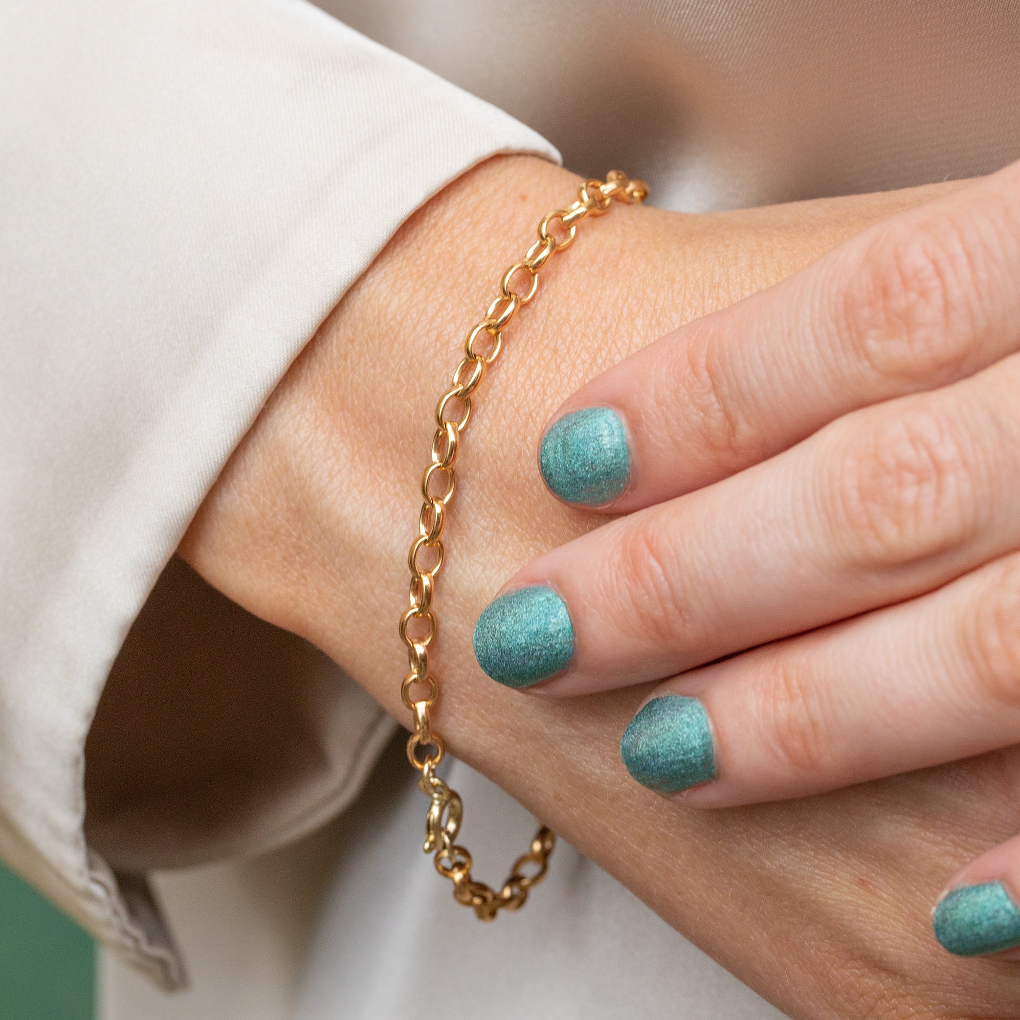 This 7" antique 9ct Gold oval link belcher bracelet is a sumptuous everyday piece. Laying gracefully upon the wrist, the warmth of her saturated, 9ct Gold radiates throughout each uniformed link.