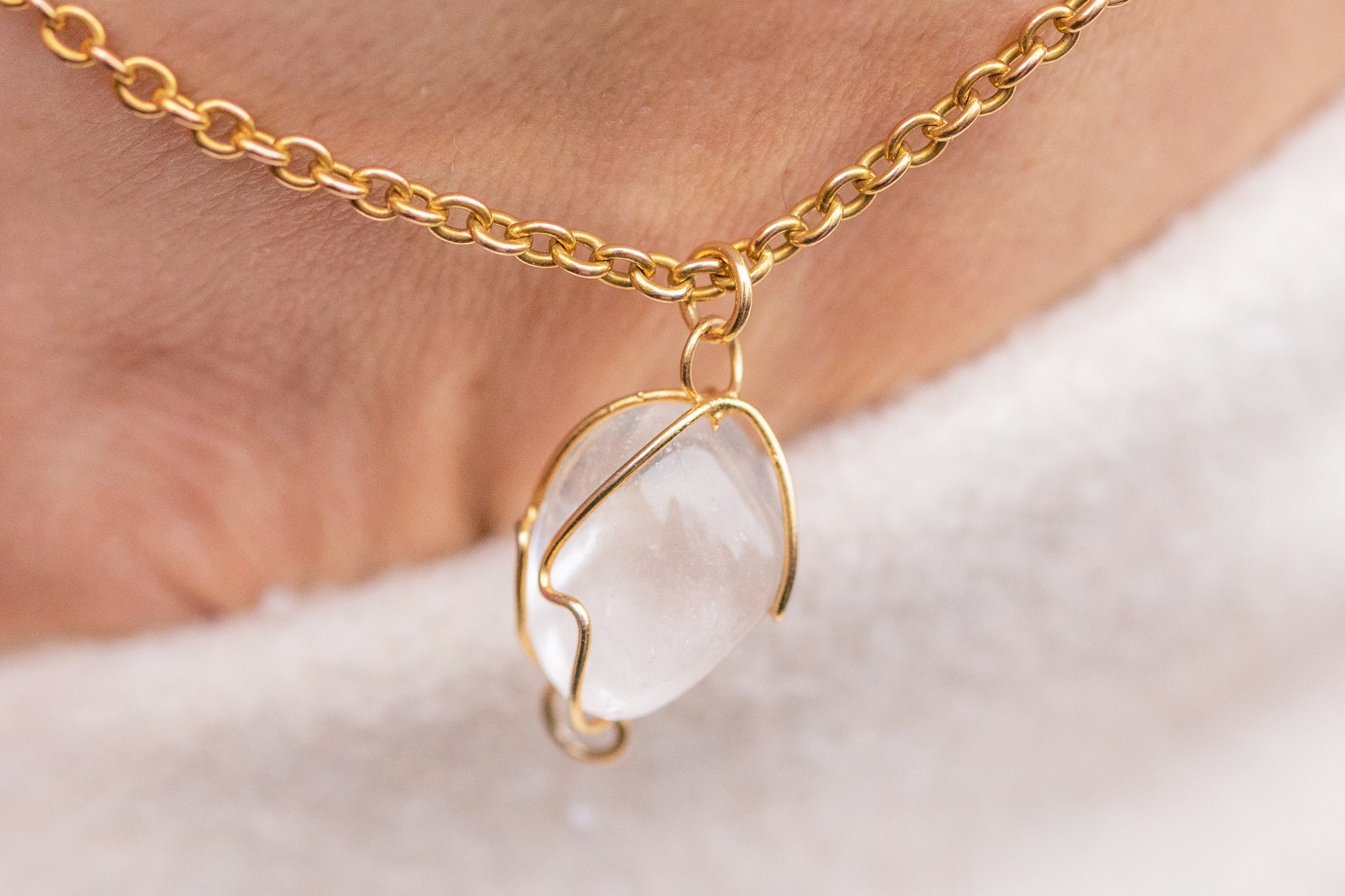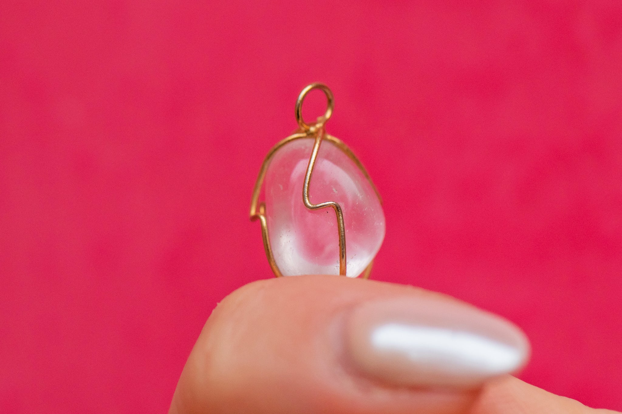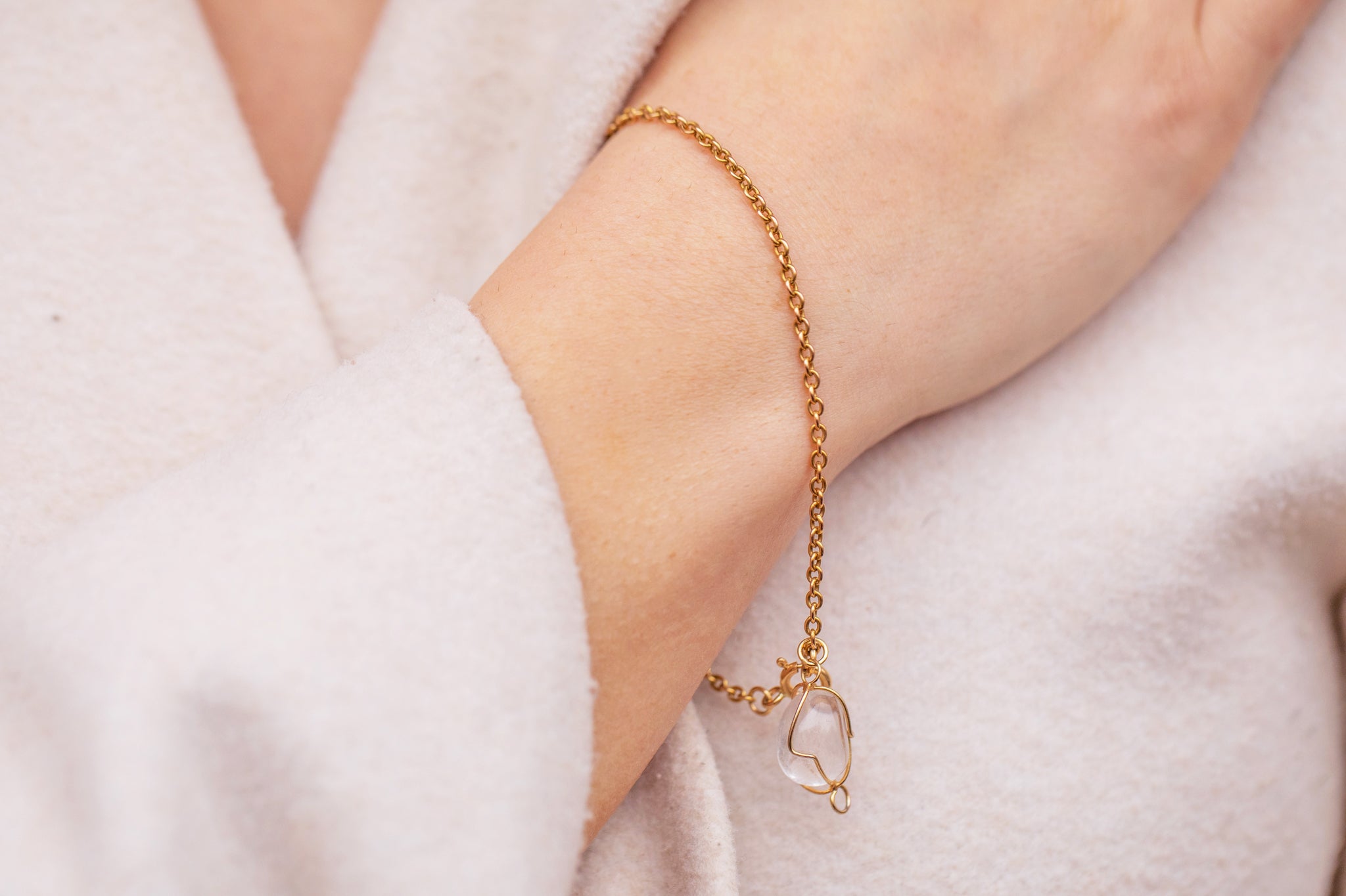 Bracelet antique en or 18 carats de 8" avec breloque en cristal de roche
