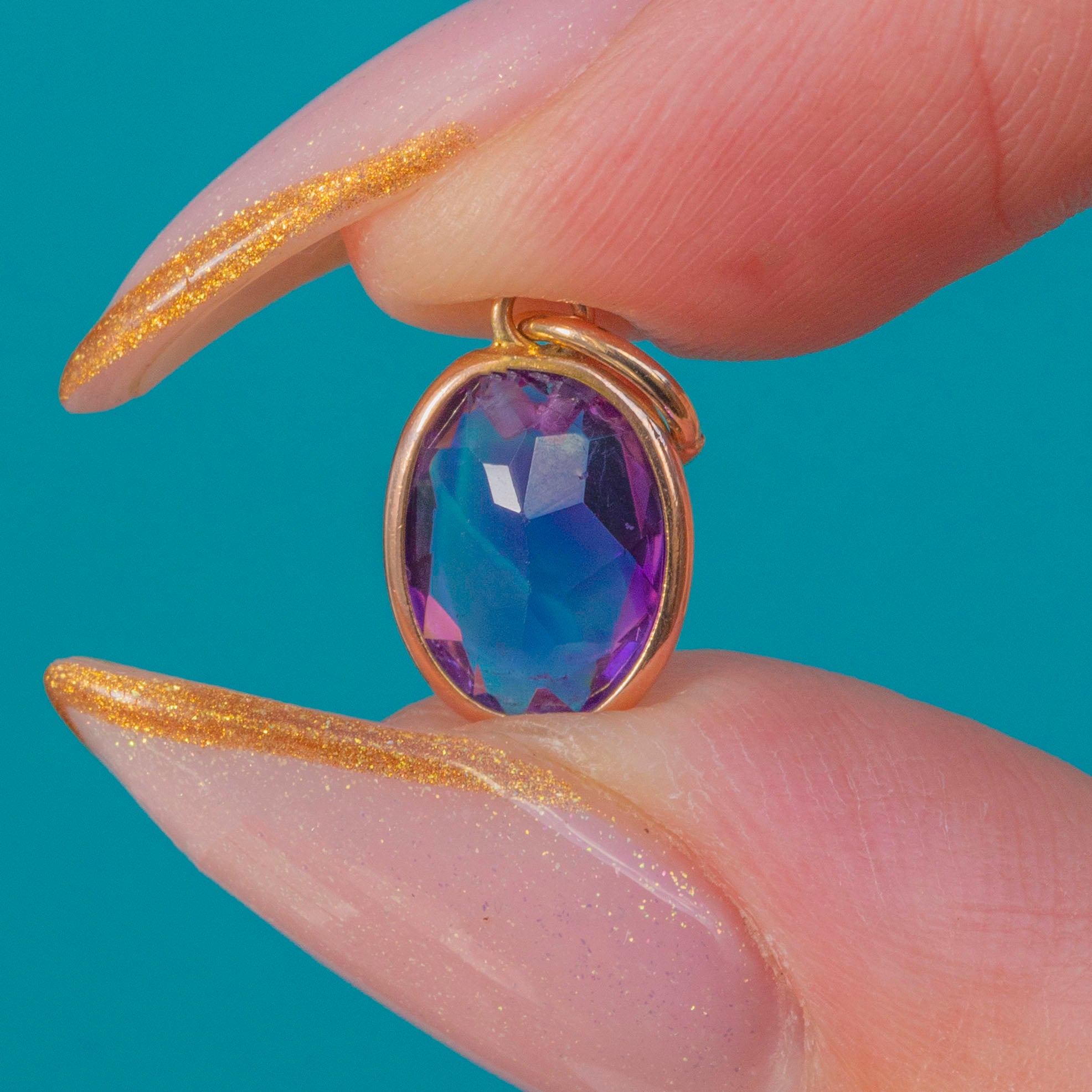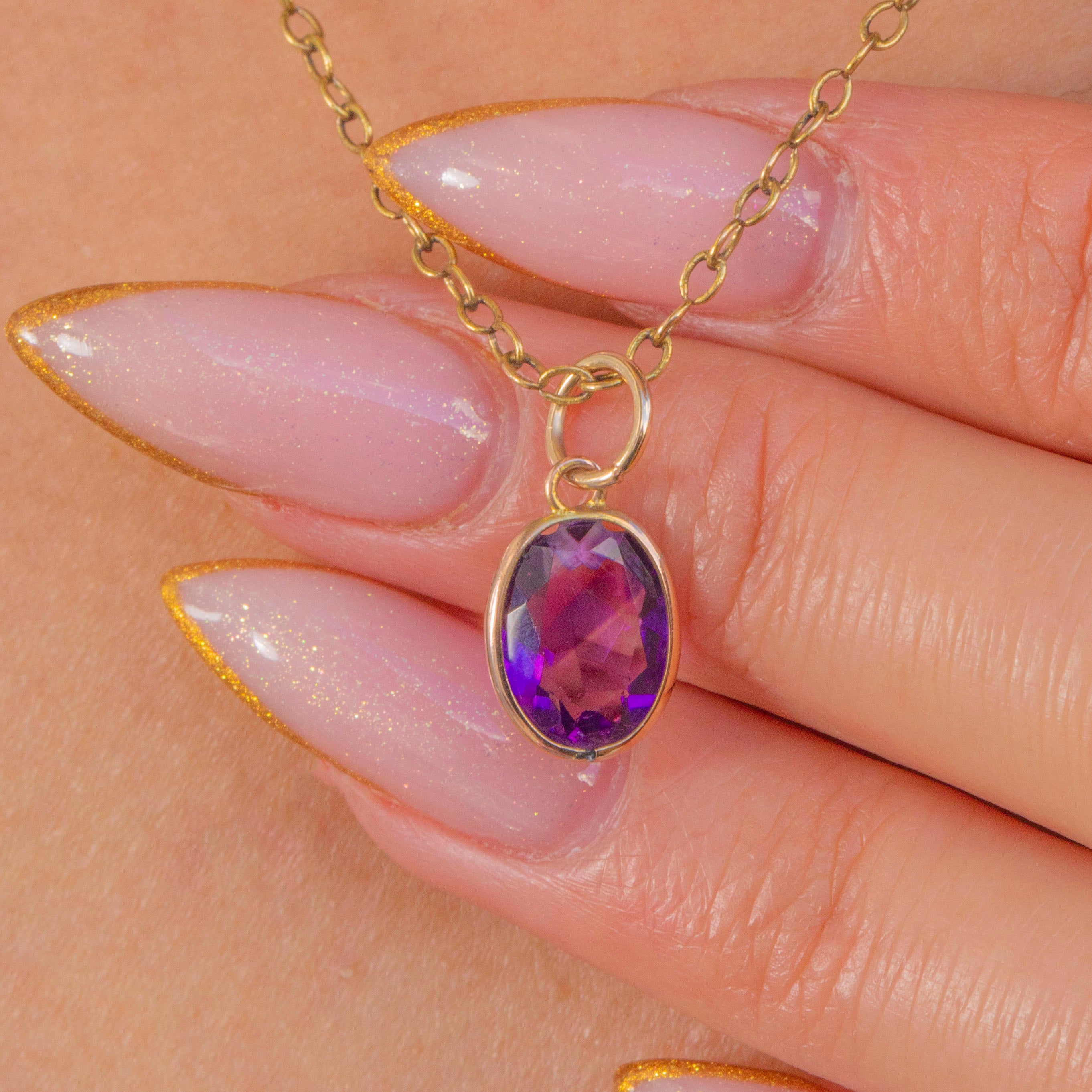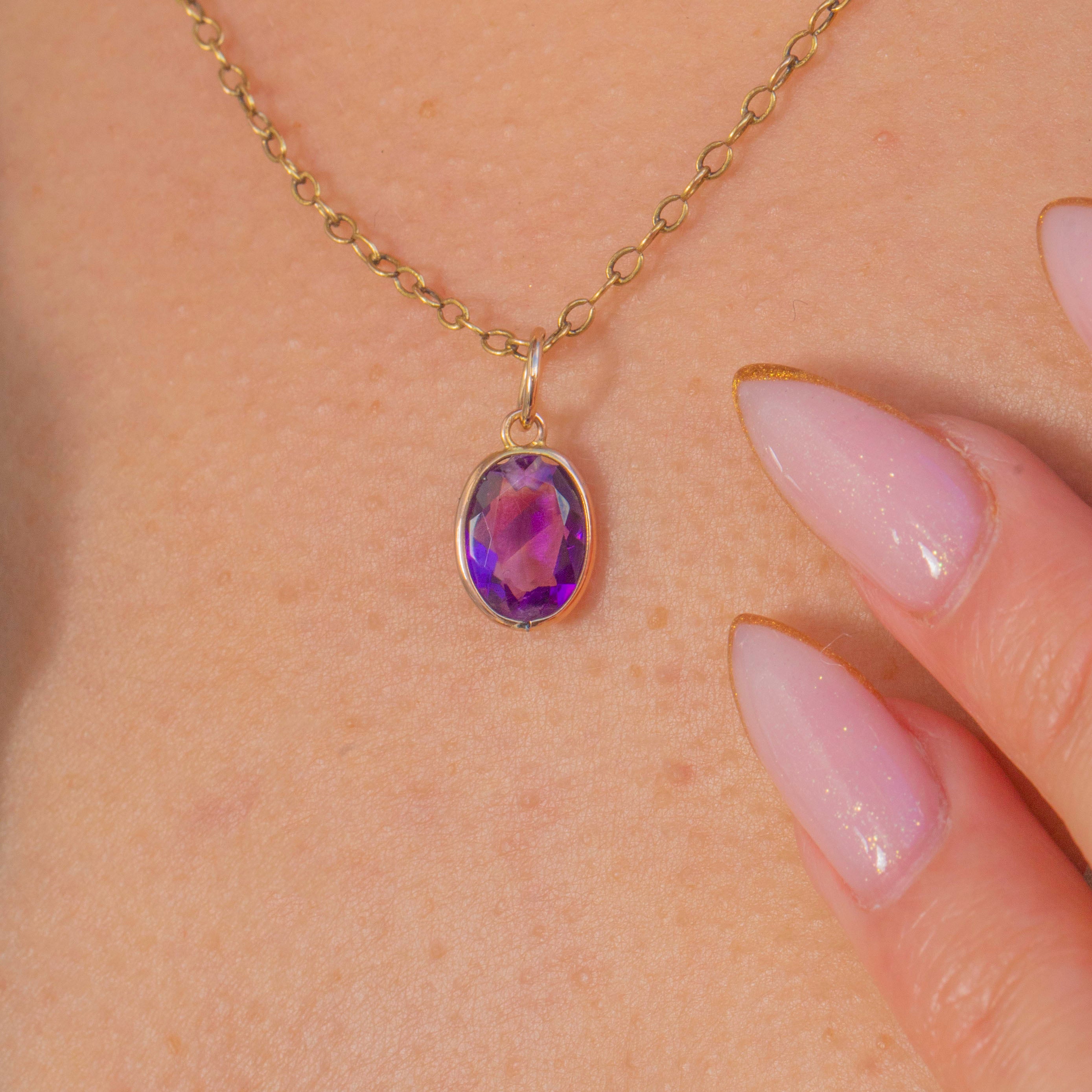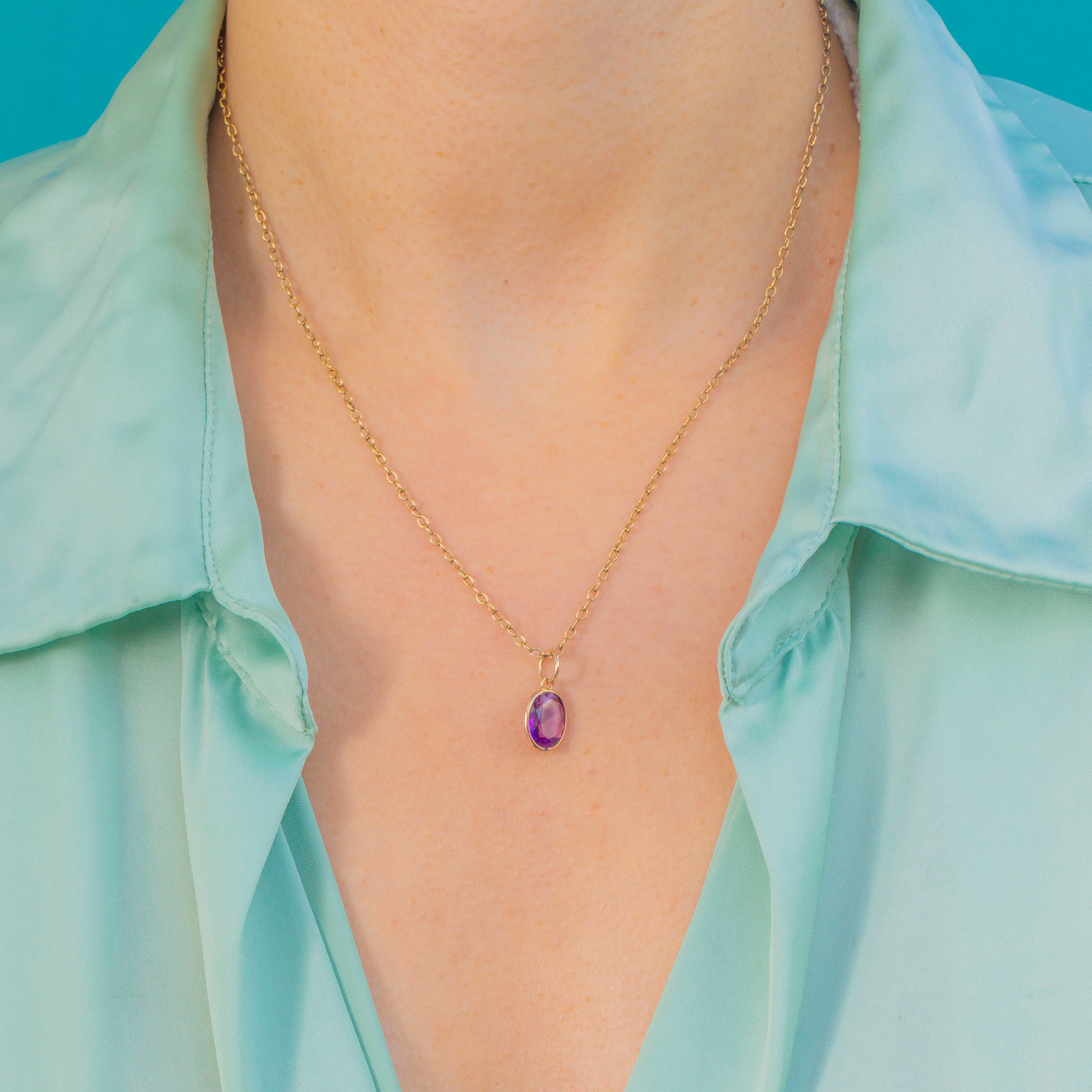 Breloque en or 9 carats avec améthyste sertie en chaton
