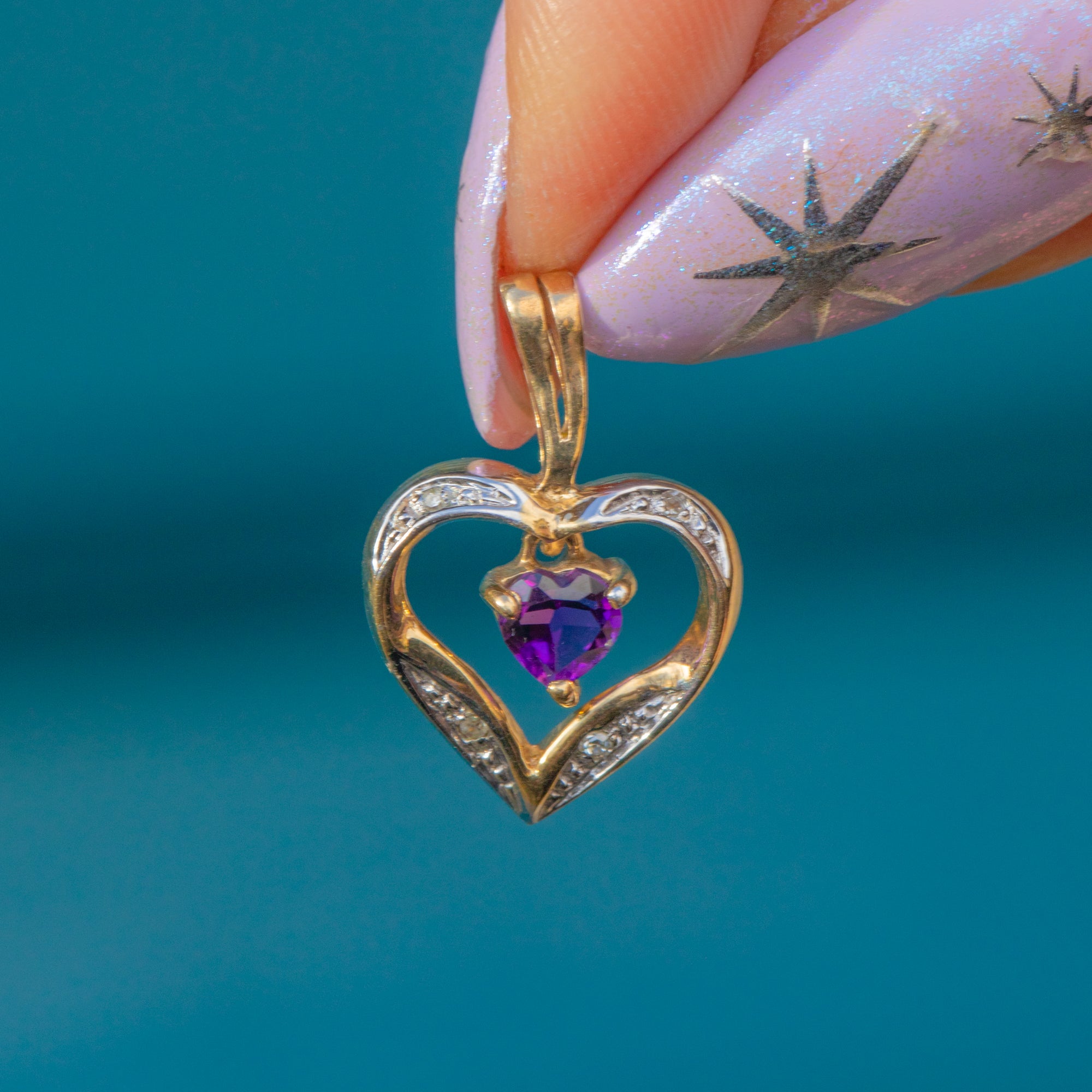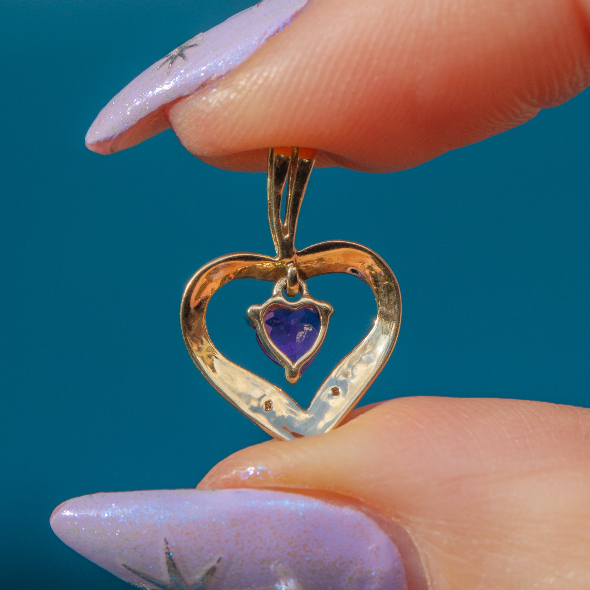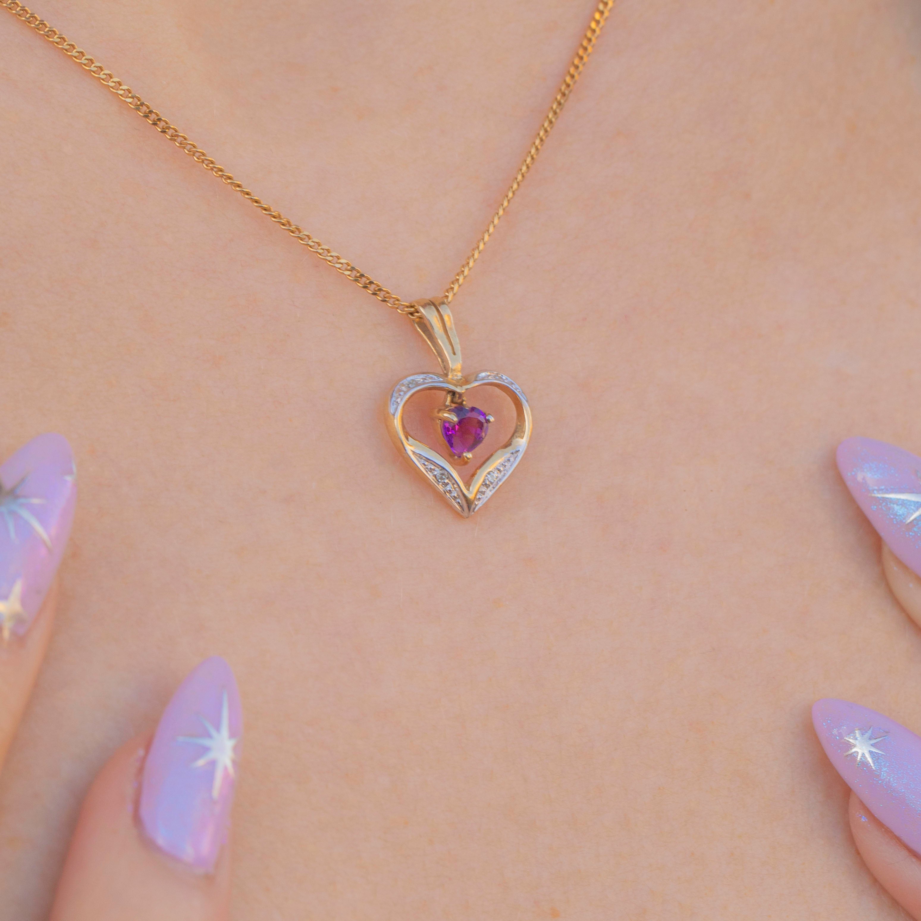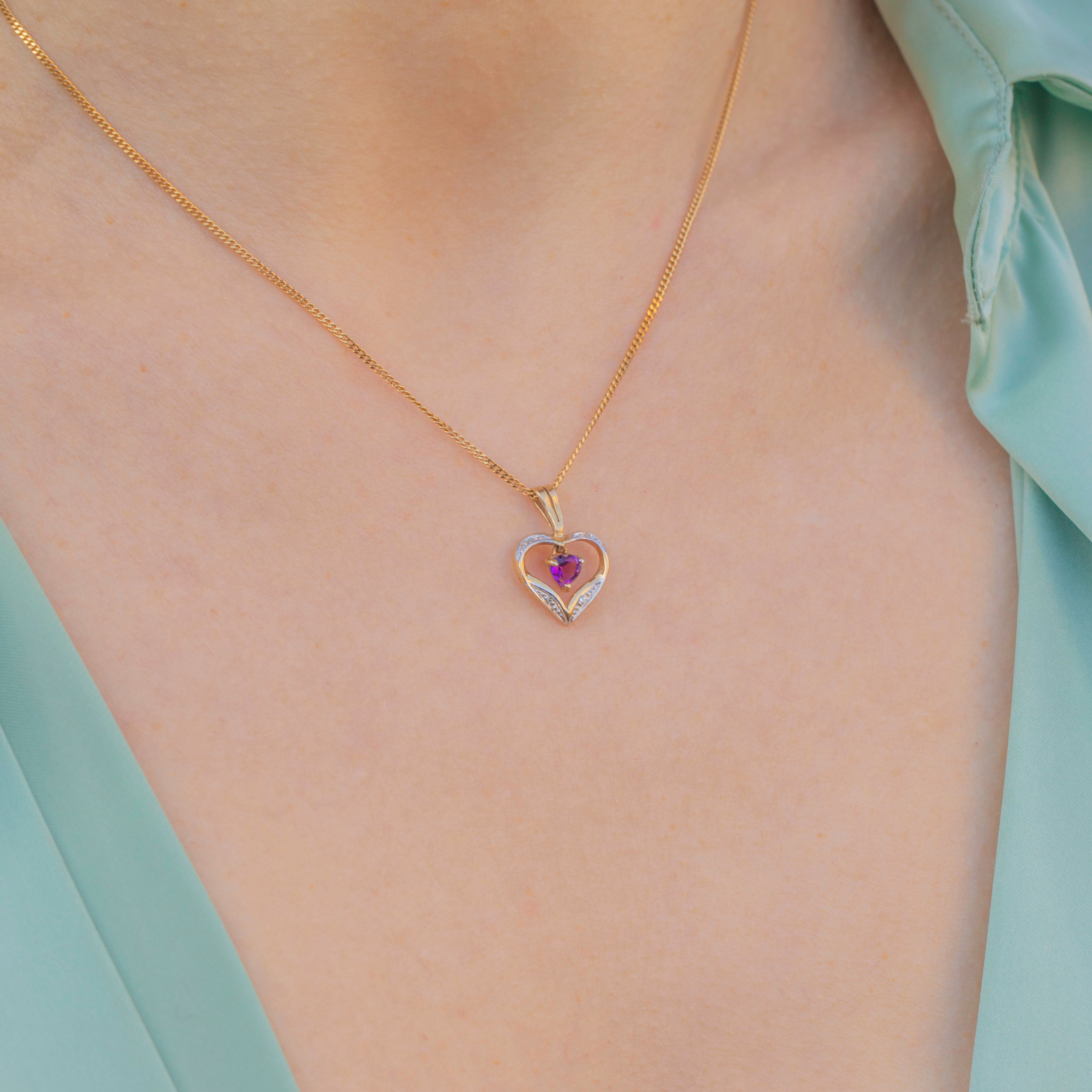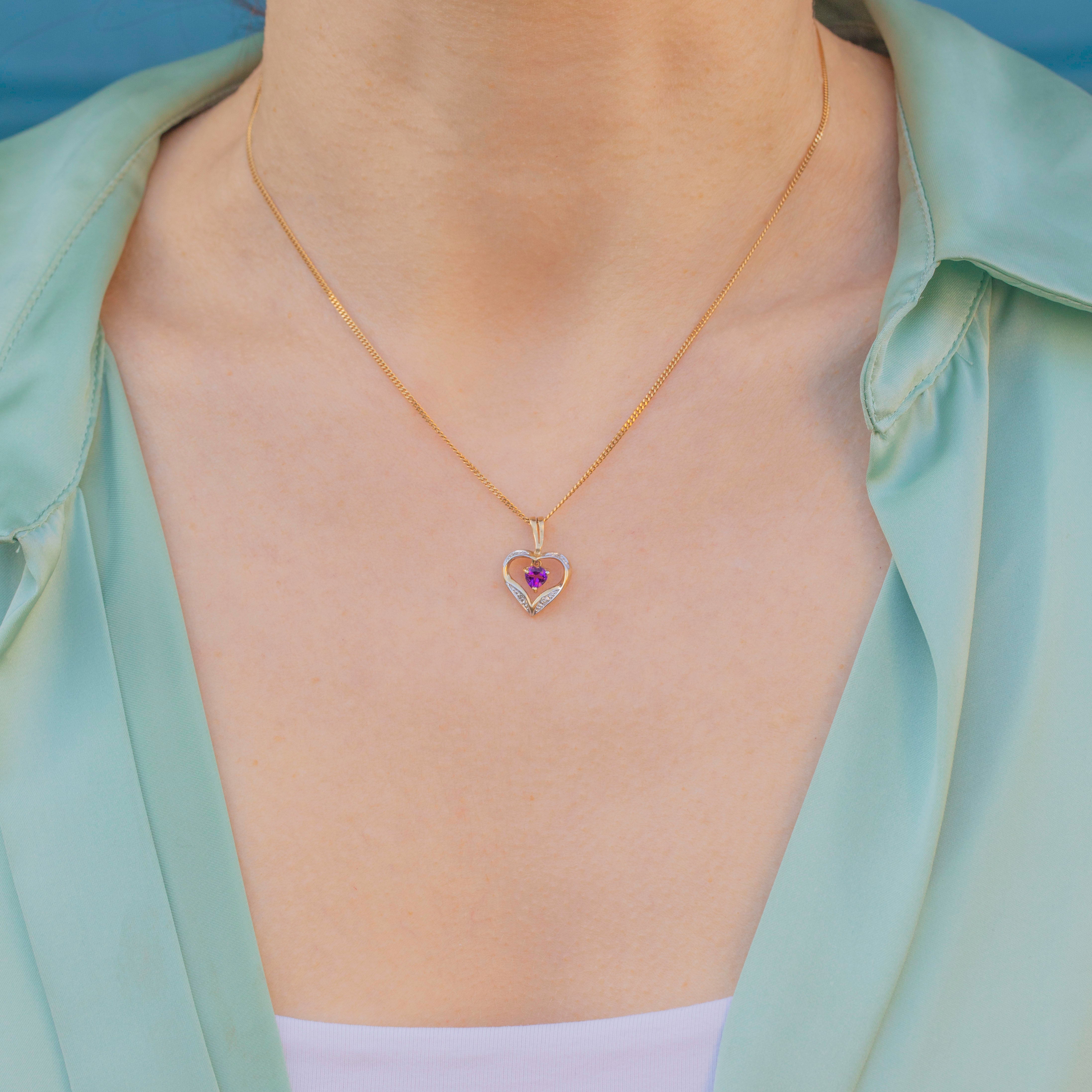 Pendentif cœur en or 9 carats avec améthyste et diamant