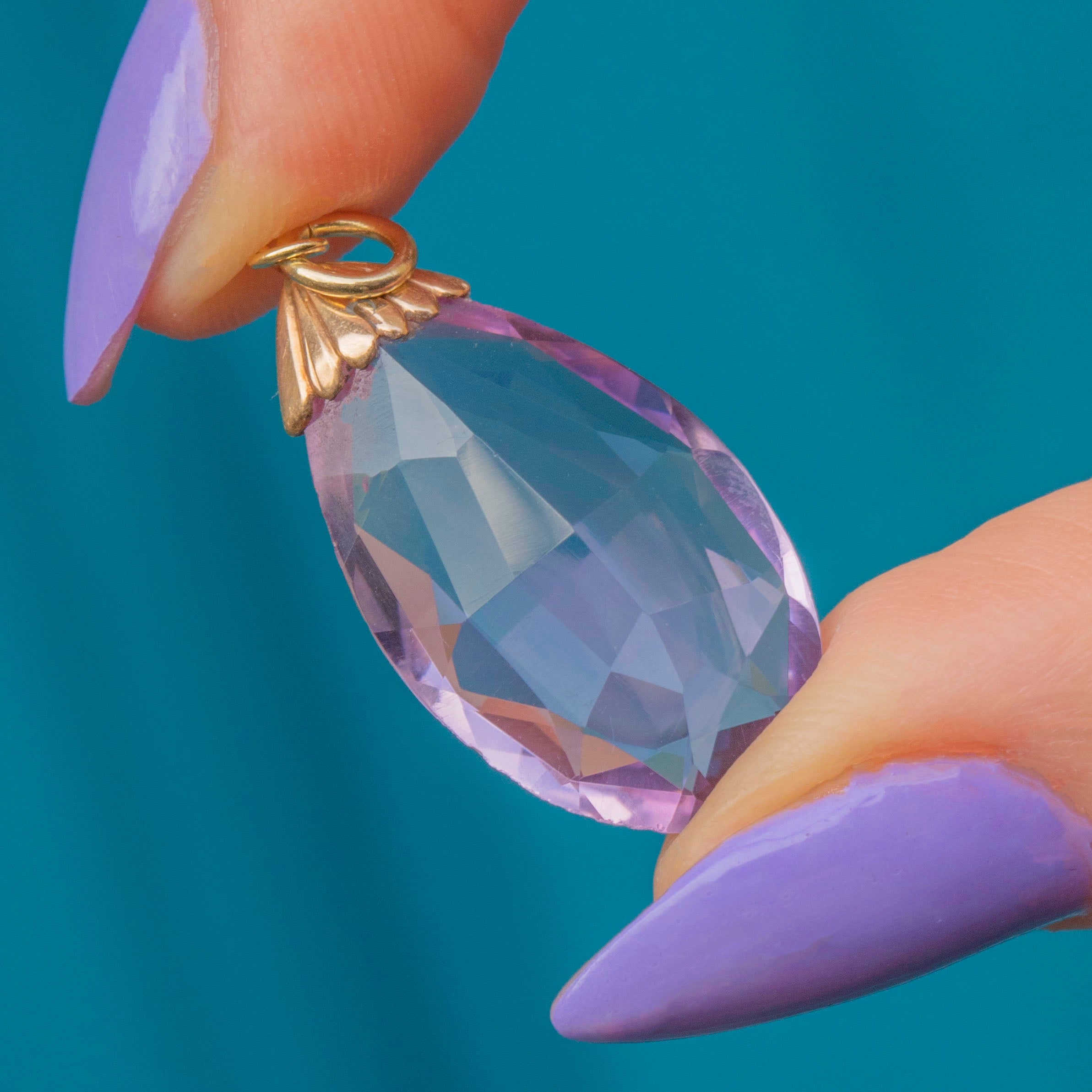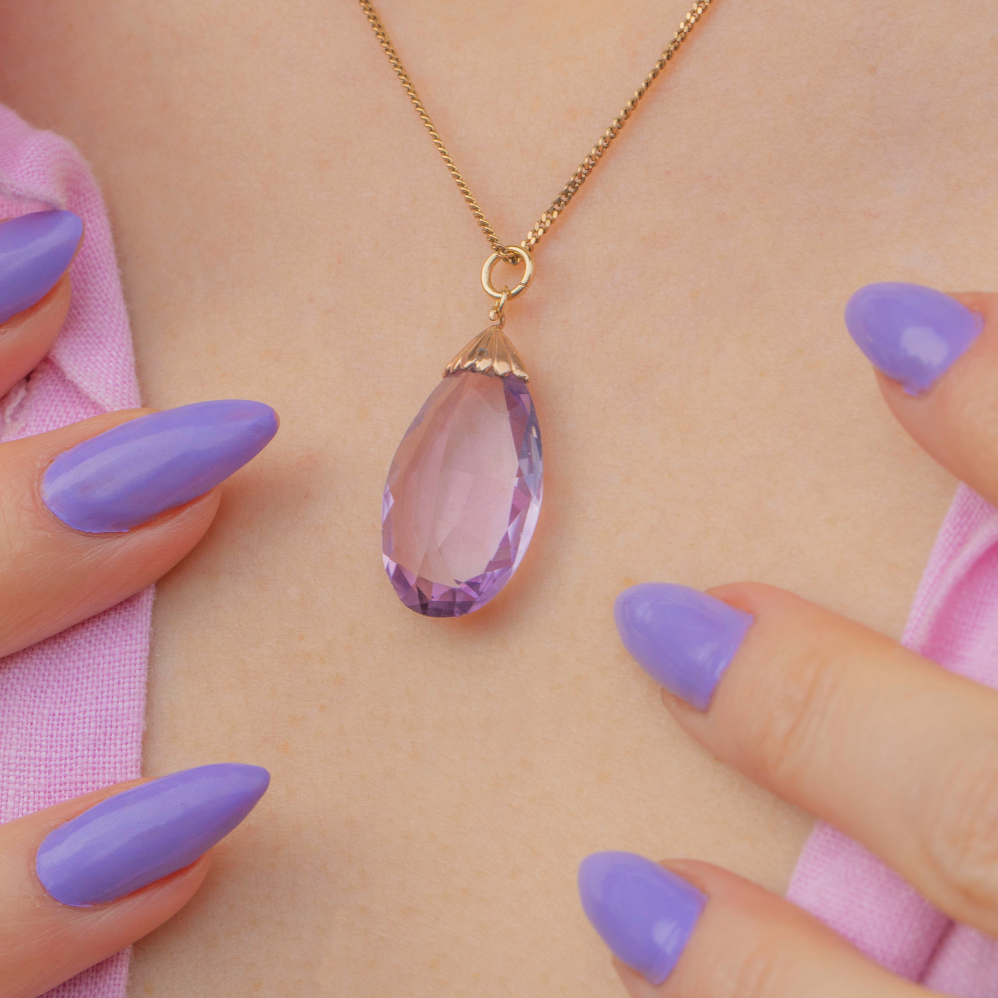 Art Deco 9ct Gold Amethyst Pear Drop Pendant, 9.35ct