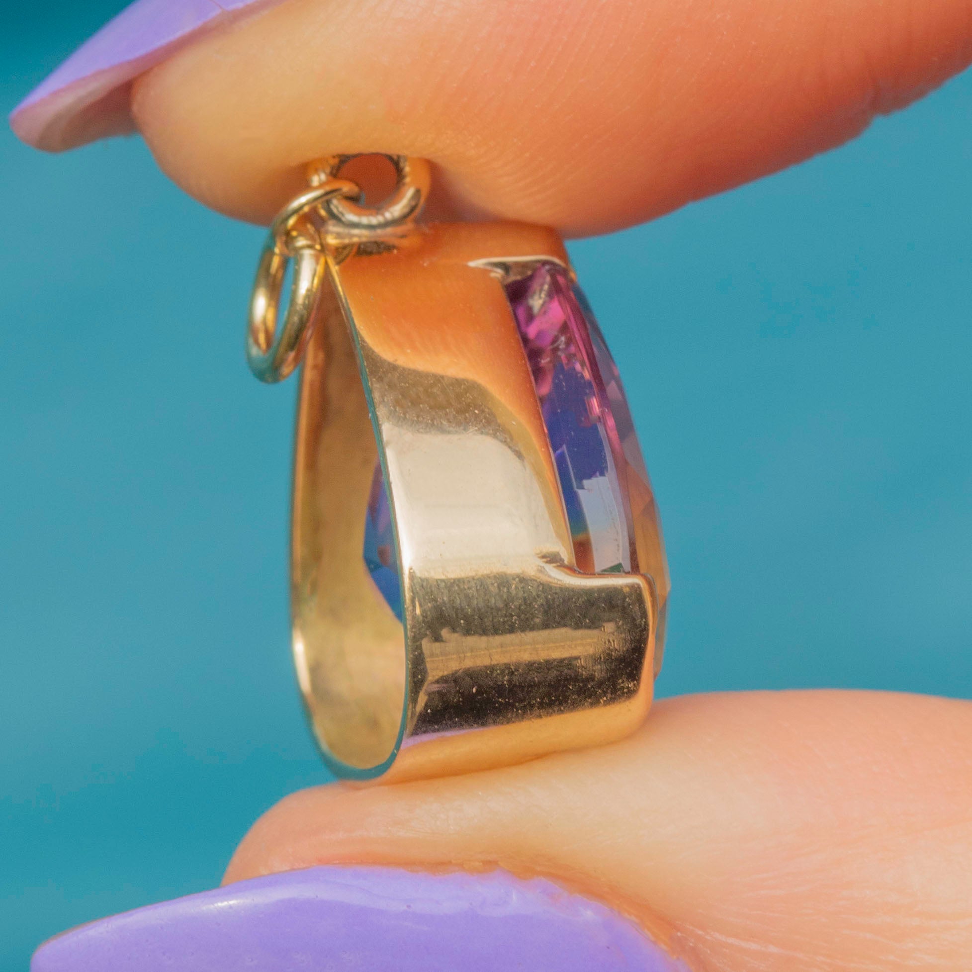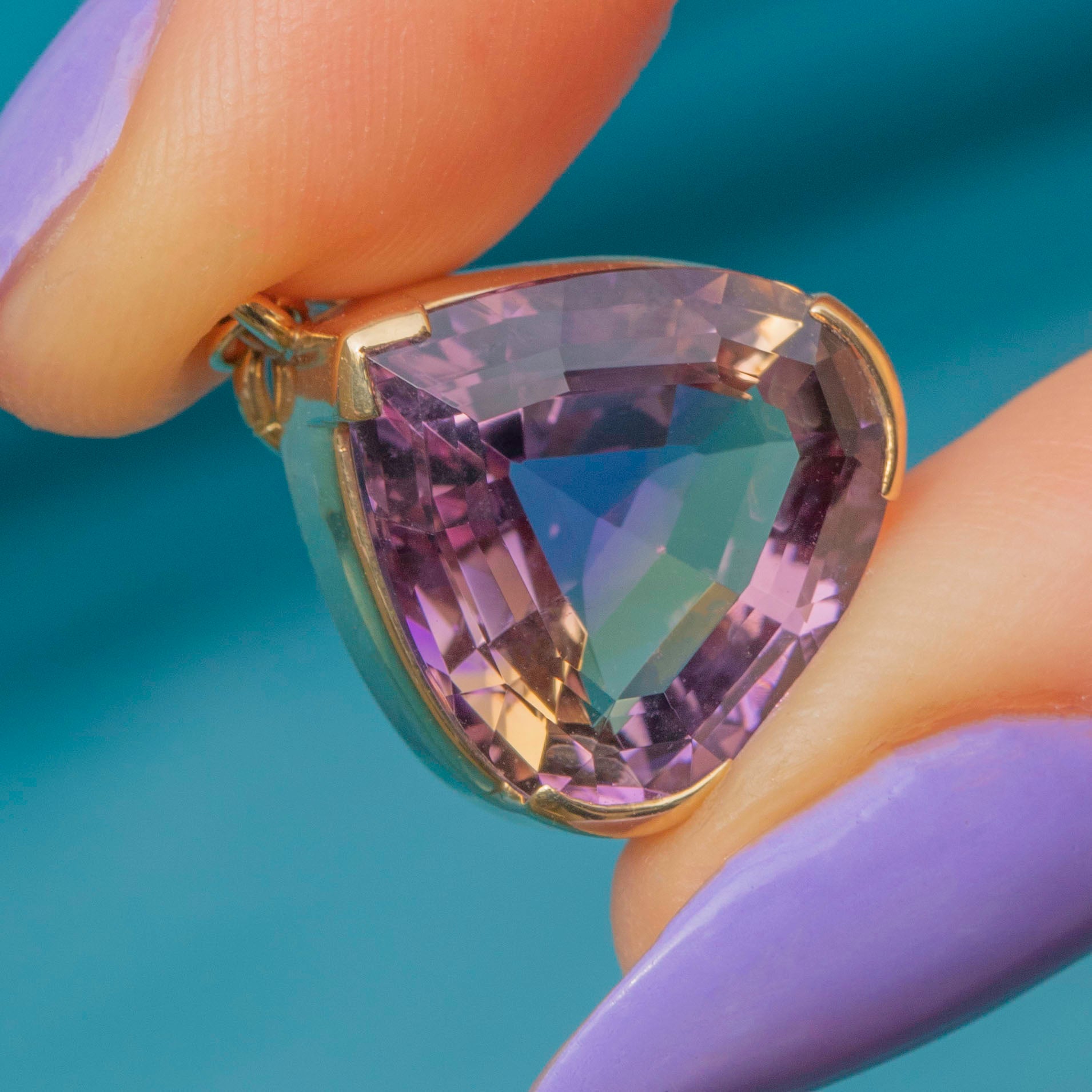 EXCELLENT: This 9ct Gold Ametrine pendant is in excellent condition! Her Ametrine is radiant, free from any scuffs or nibbles, and secure within its setting. There are some minor scratches to the Gold settings, though this is difficult to spot without a jeweller's loupe. With a secure jump ring, you can wear this vintage pendant with confidence!
