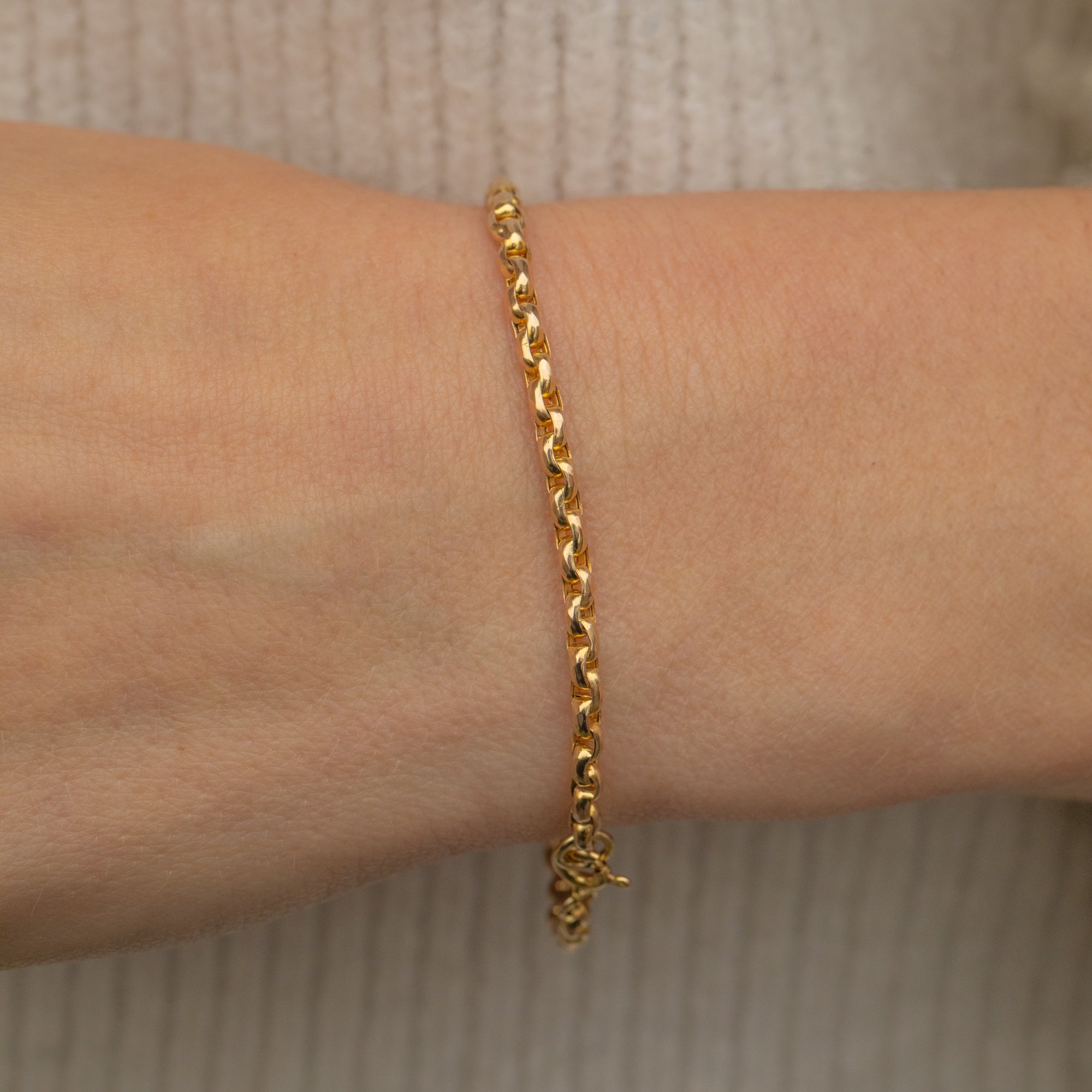 Radiate a sunshine glow from your wrist with this antique 9ct Gold chain bracelet! Interlocked belcher links and endless curves give this fabulous piece a gorgeous flowing effect as she drapes around your wrist.