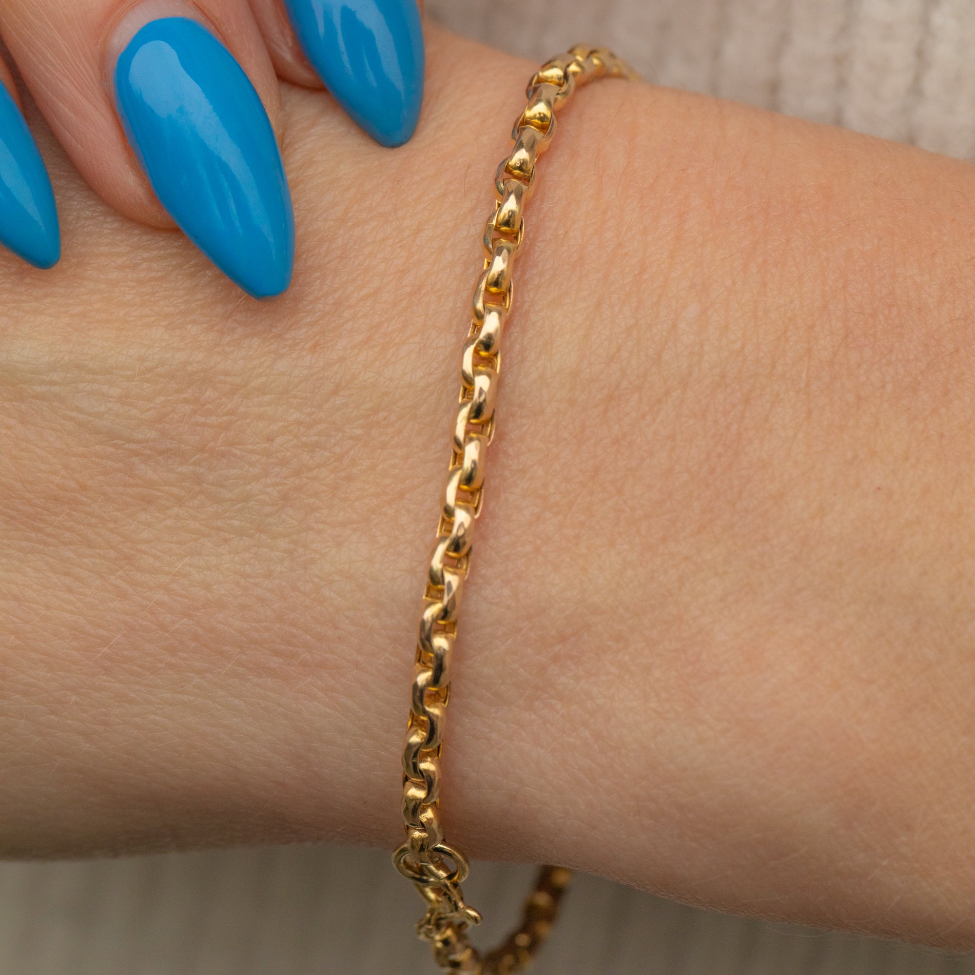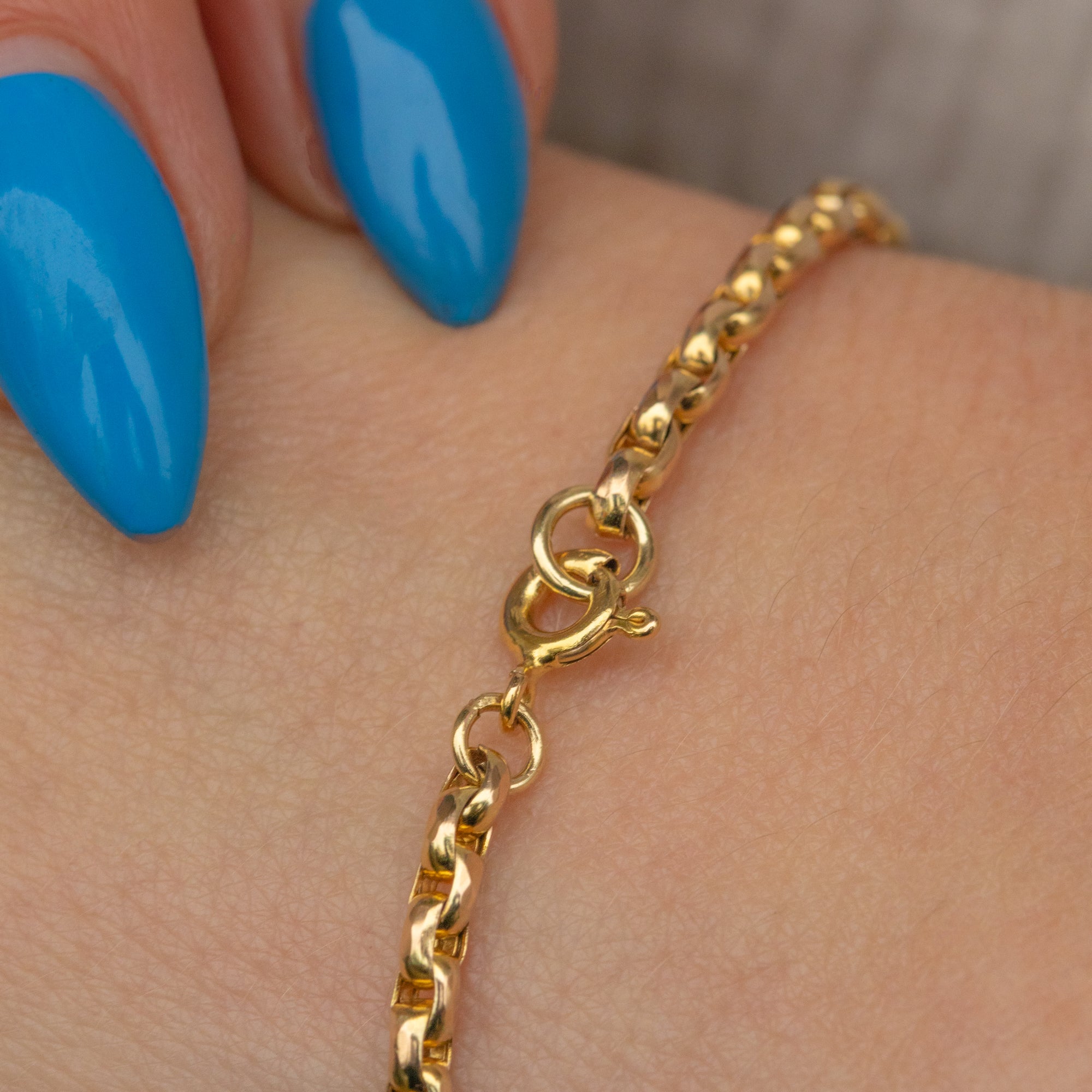 EXCELLENT. This antique 9ct Gold chain bracelet is in excellent condition. Her Gold is wonderfully rich and saturated, with little signs of wear. The clasp is lovely and functions well with a good, strong bolt-ring. This is a lovely versatile antique Gold chain bracelet ready to be worn at the drop of a hat!