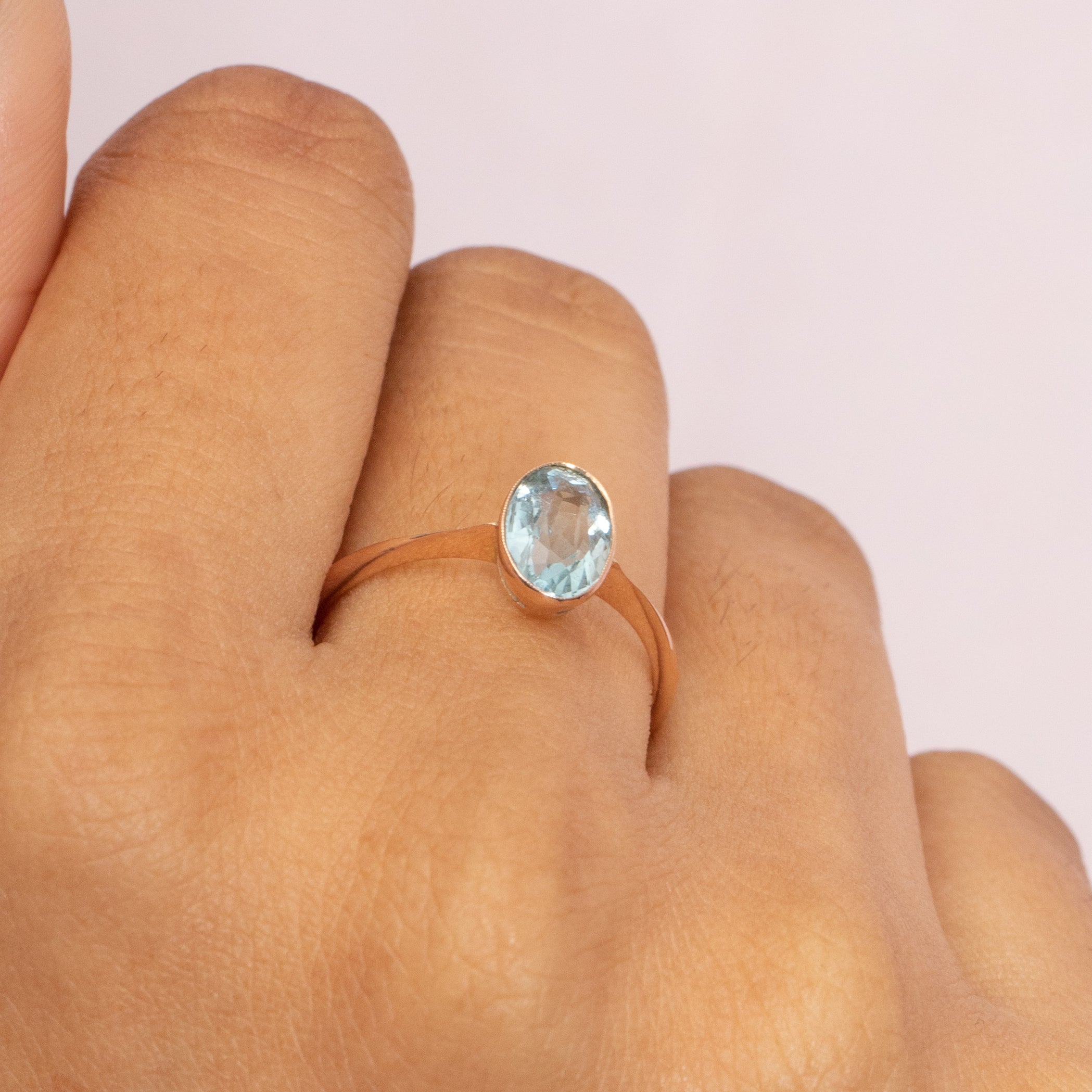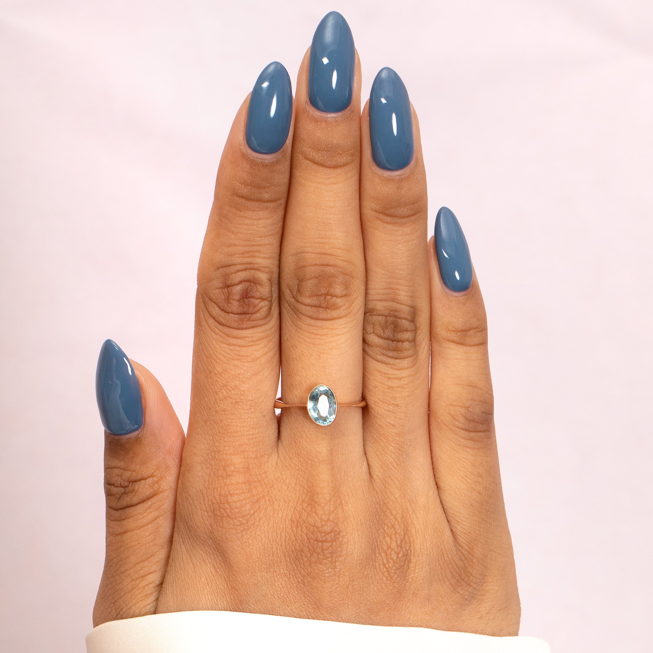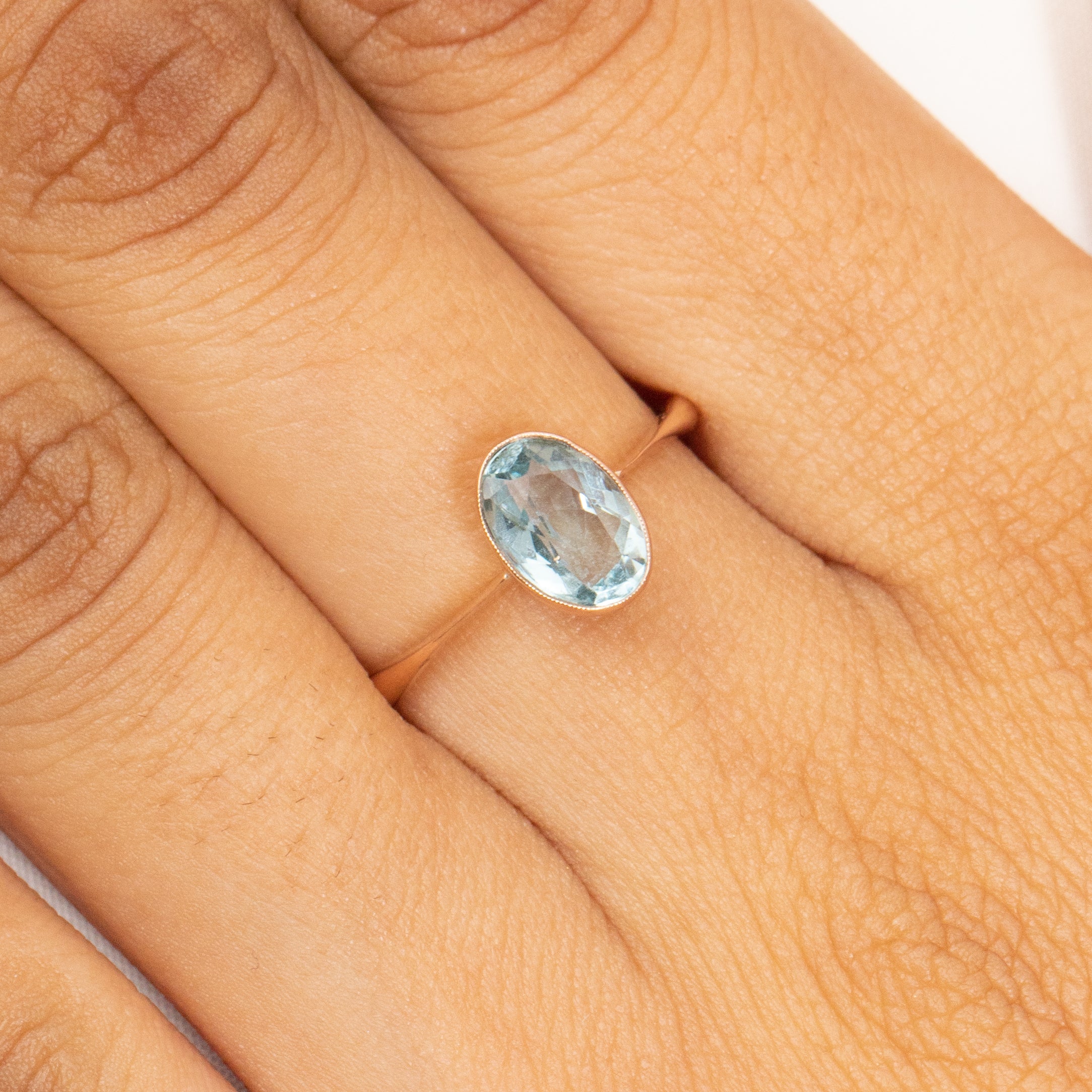 Bague solitaire ovale en or 9 carats sertie d'une aigue-marine en chaton, aigue-marine 1,00 ct