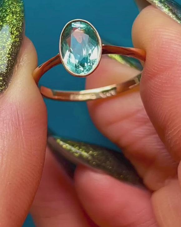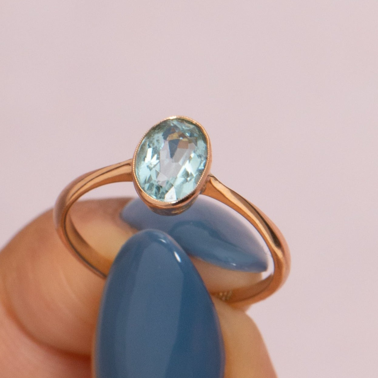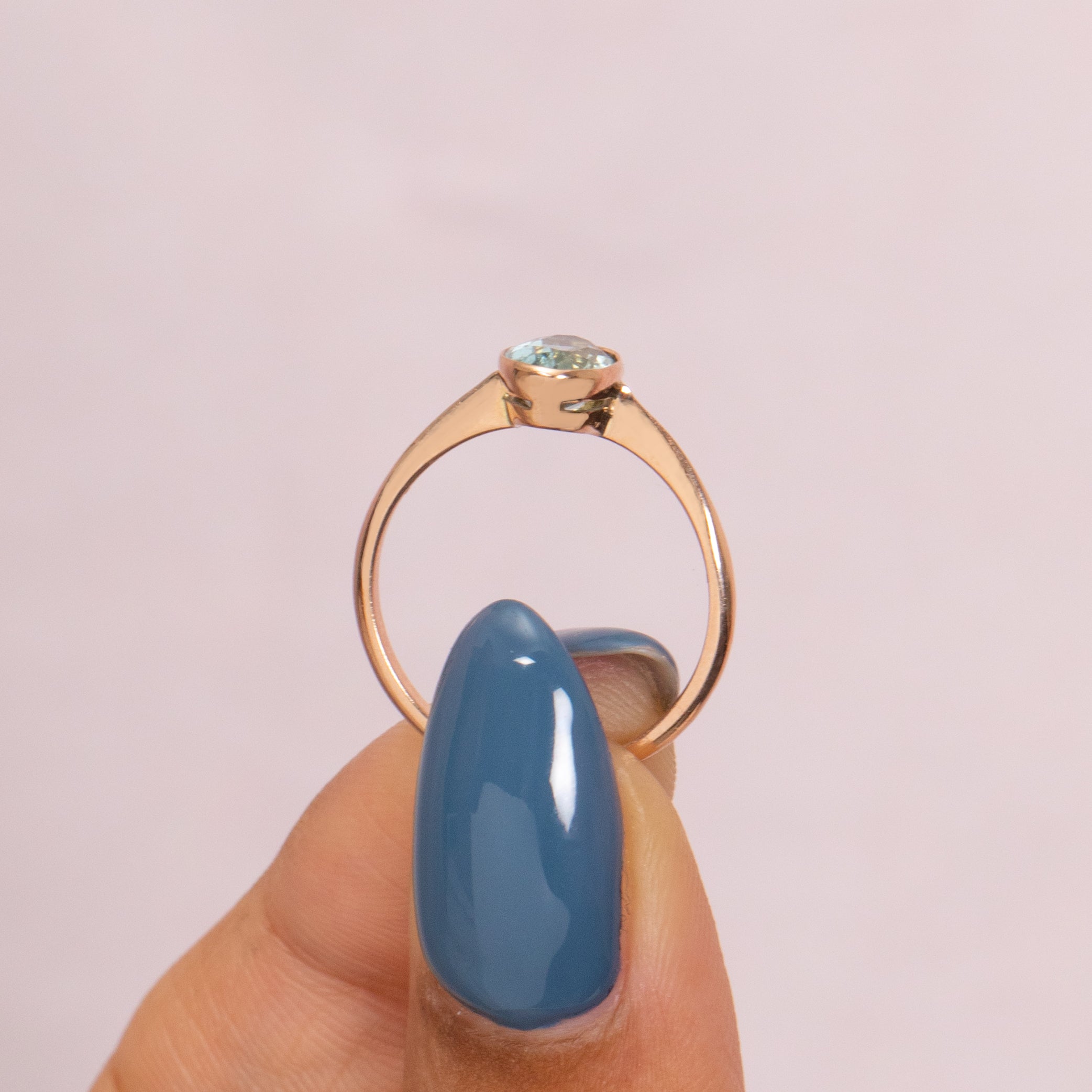 Bague solitaire ovale en or 9 carats sertie d'une aigue-marine en chaton, aigue-marine 1,00 ct
