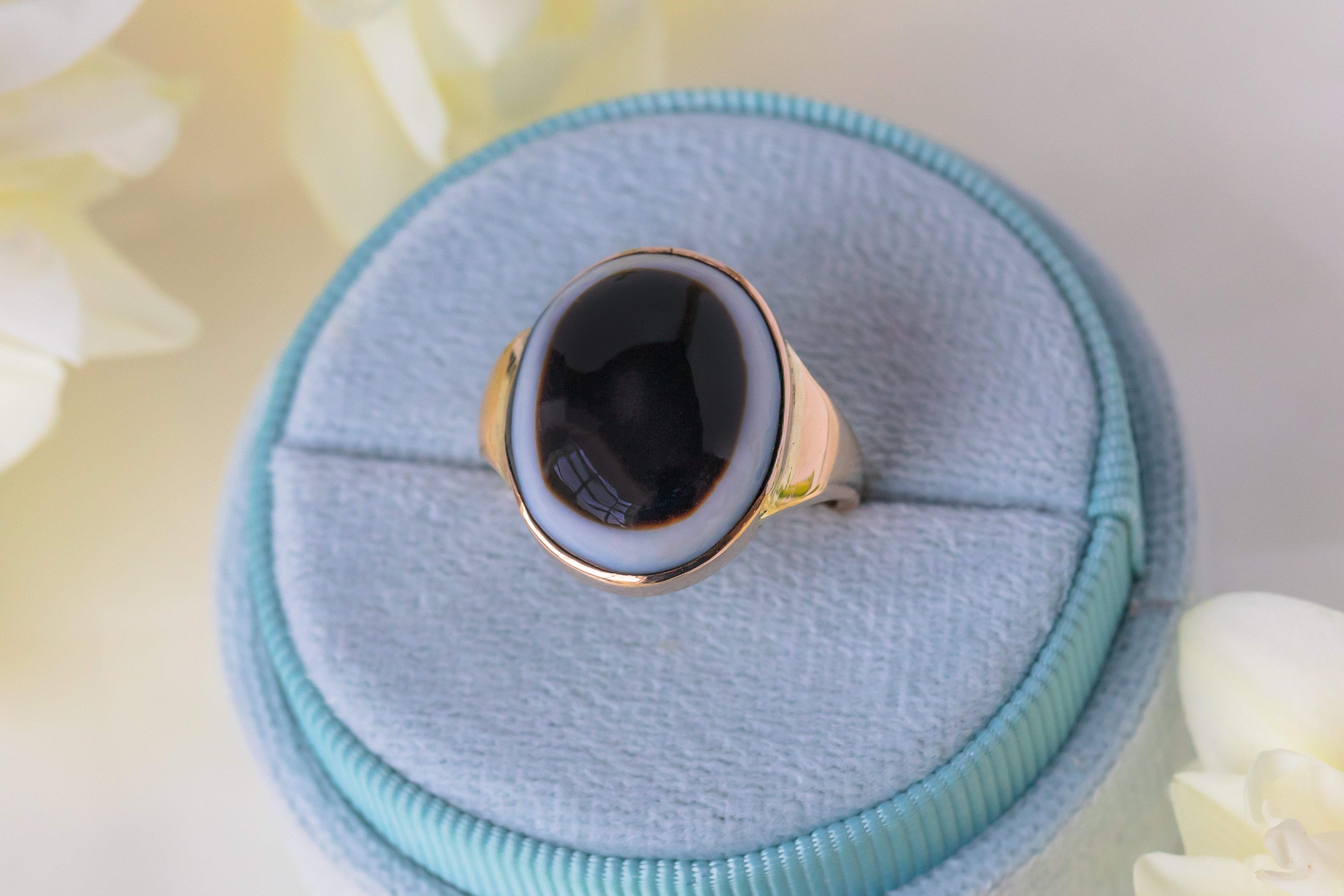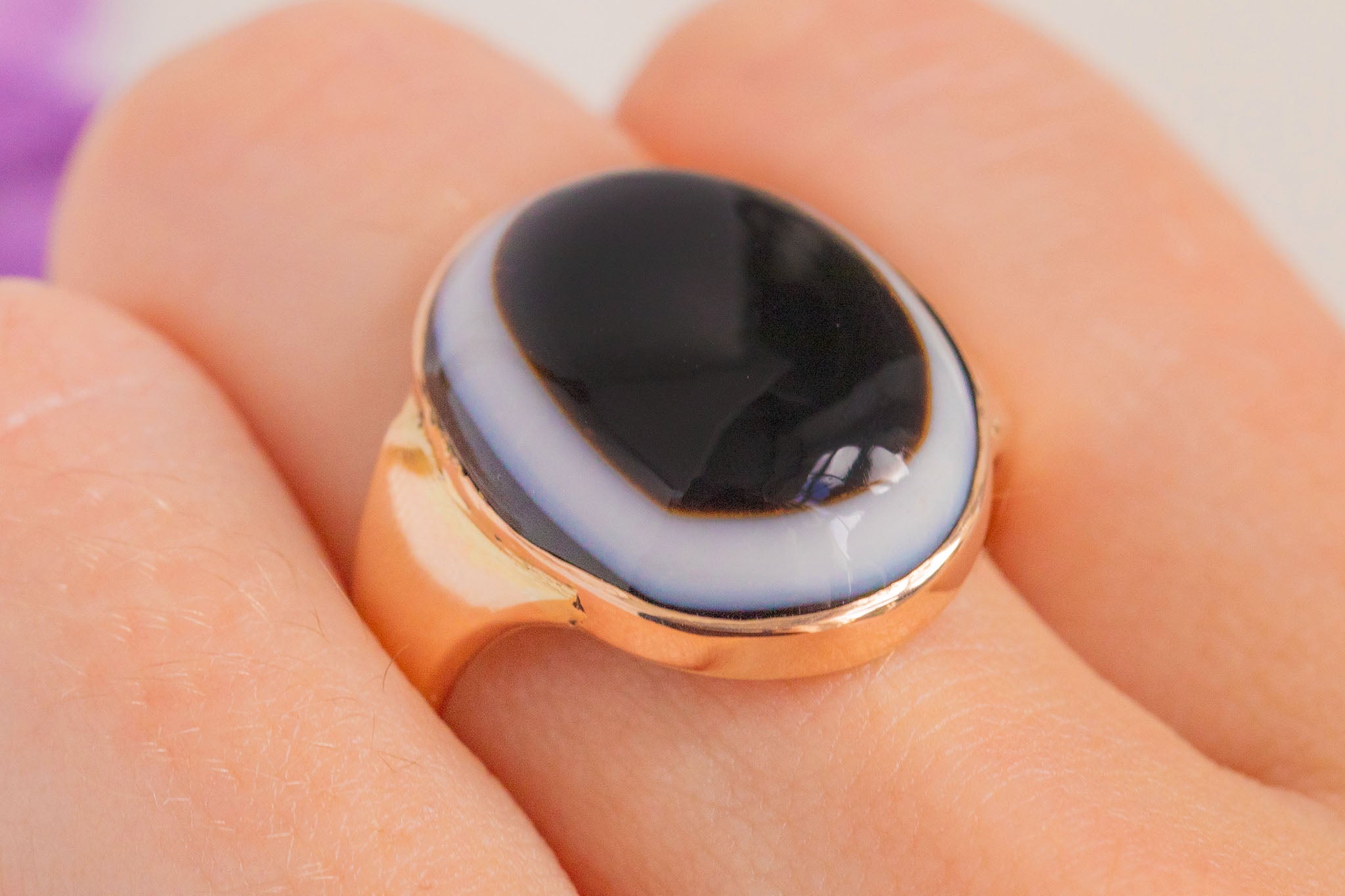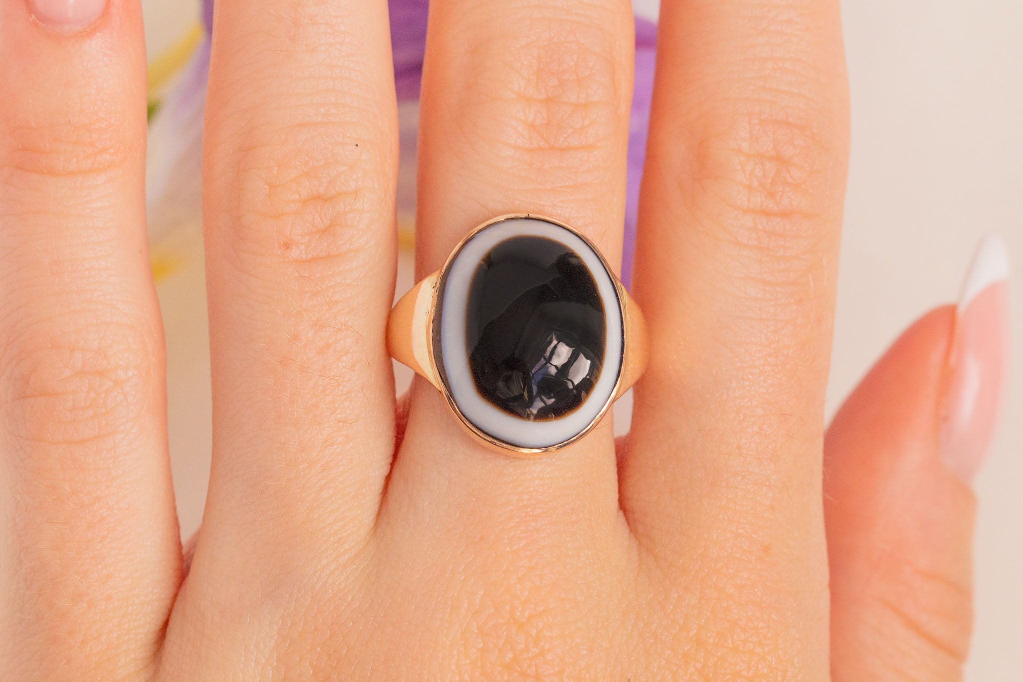 Bague antique en agate à bandes en or 9 carats