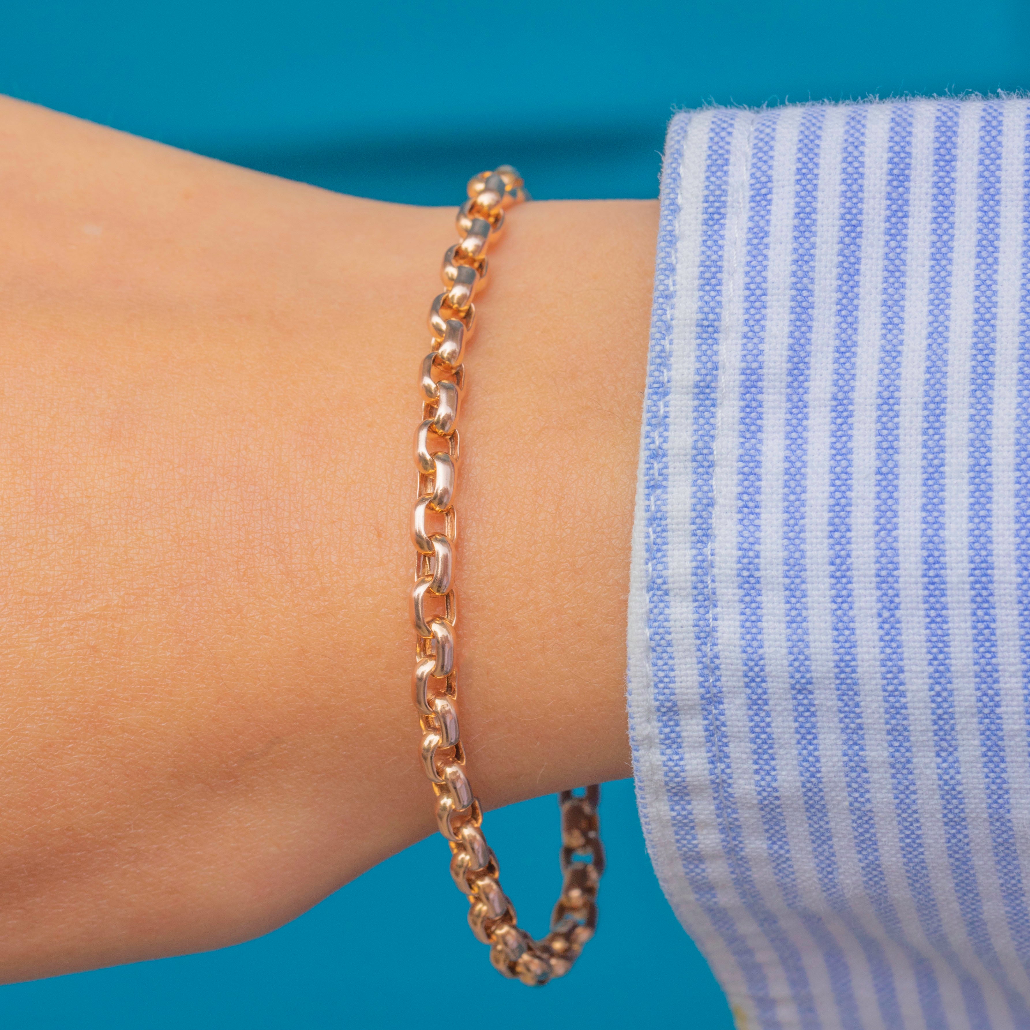 A charming Victorian belcher bracelet crafted in 9ct Gold. This timeless design features classic rounded links with a lovely rosy hue, bringing warmth and character to the piece.