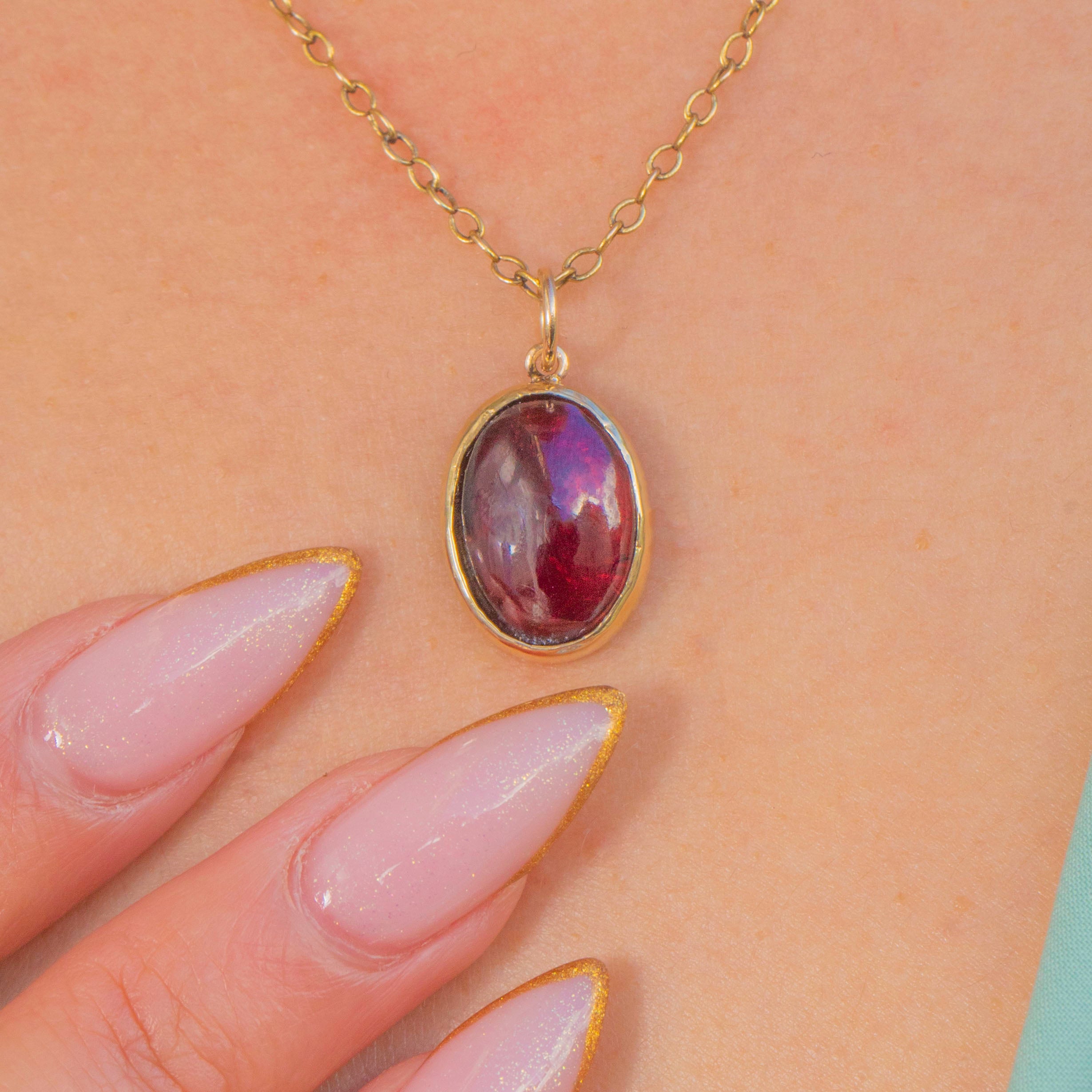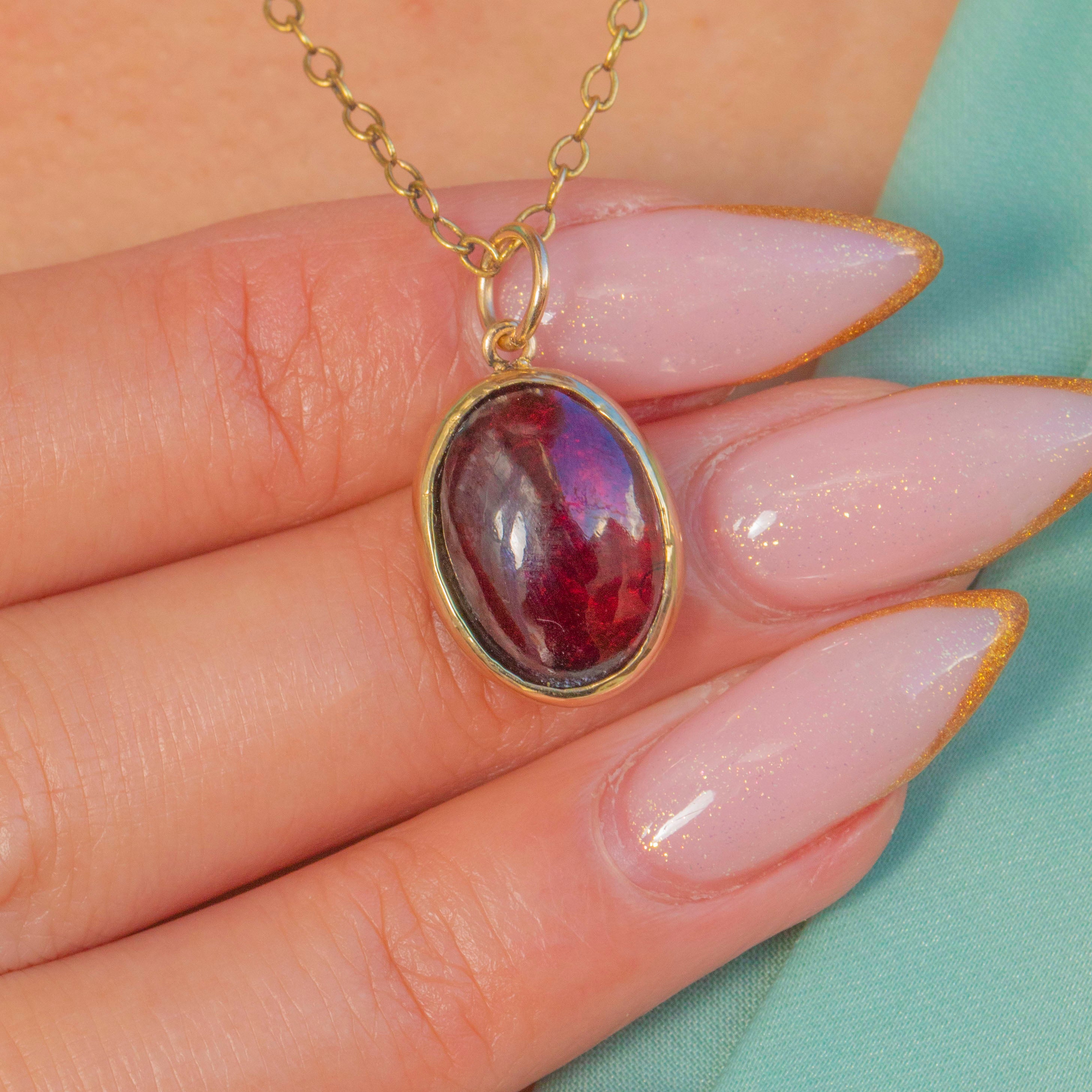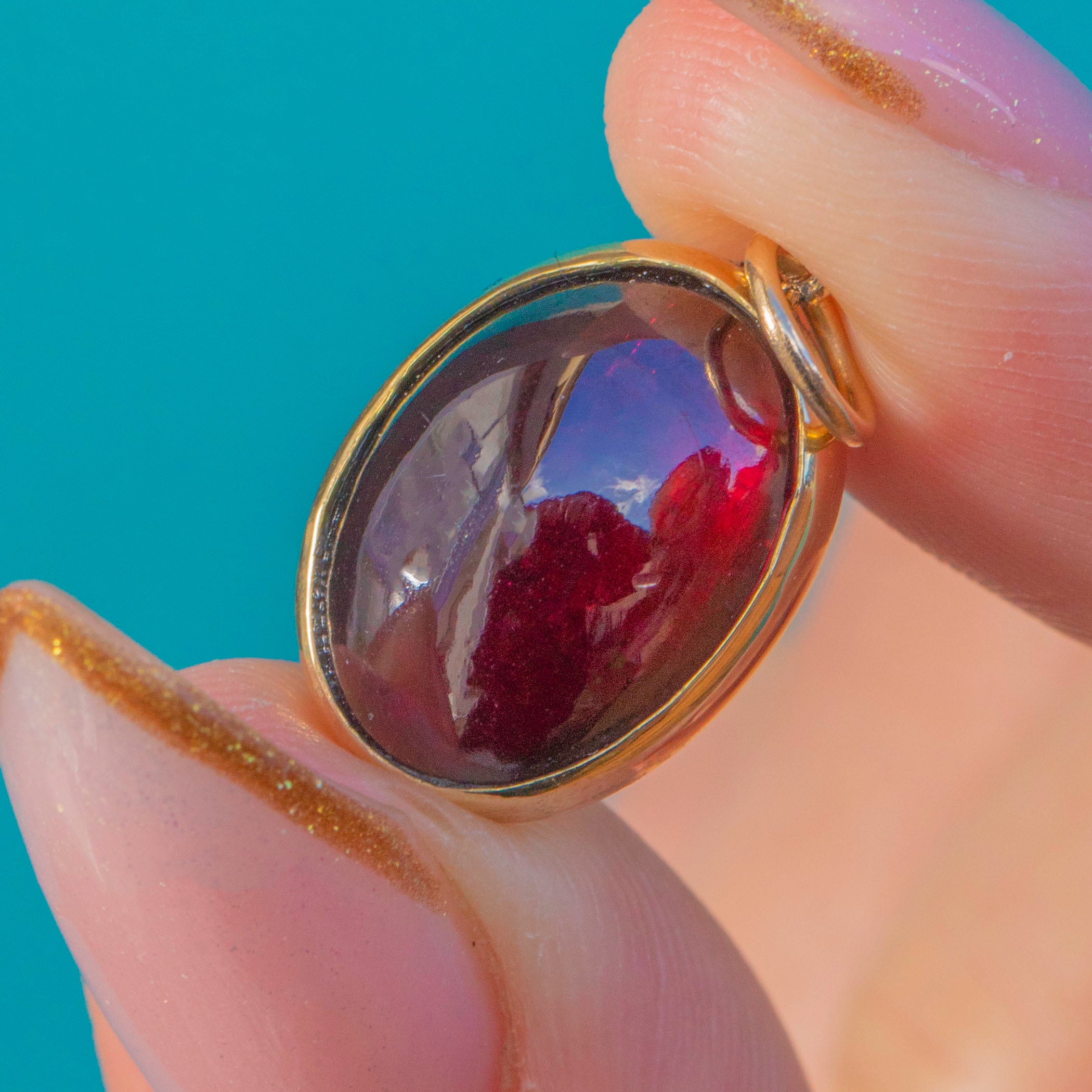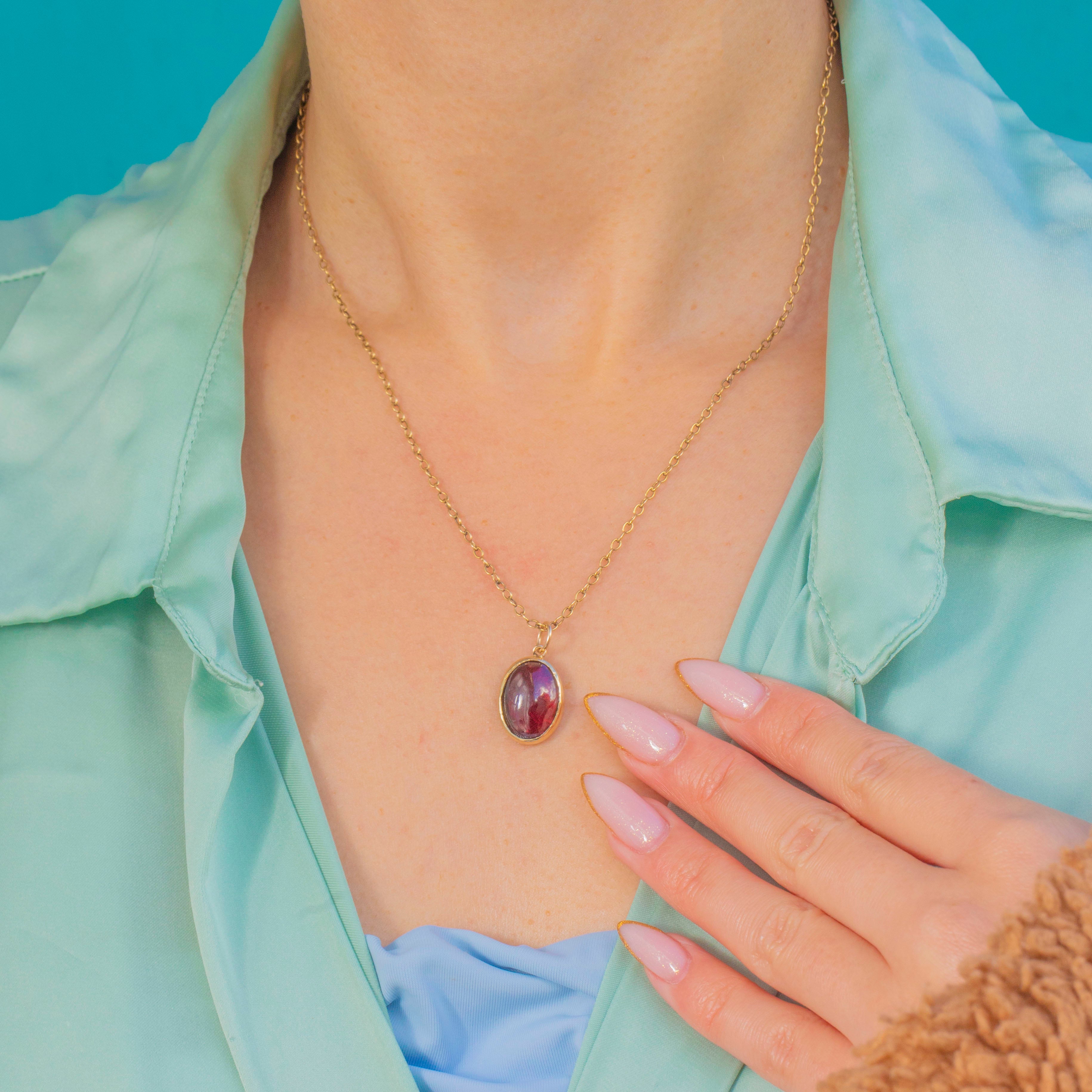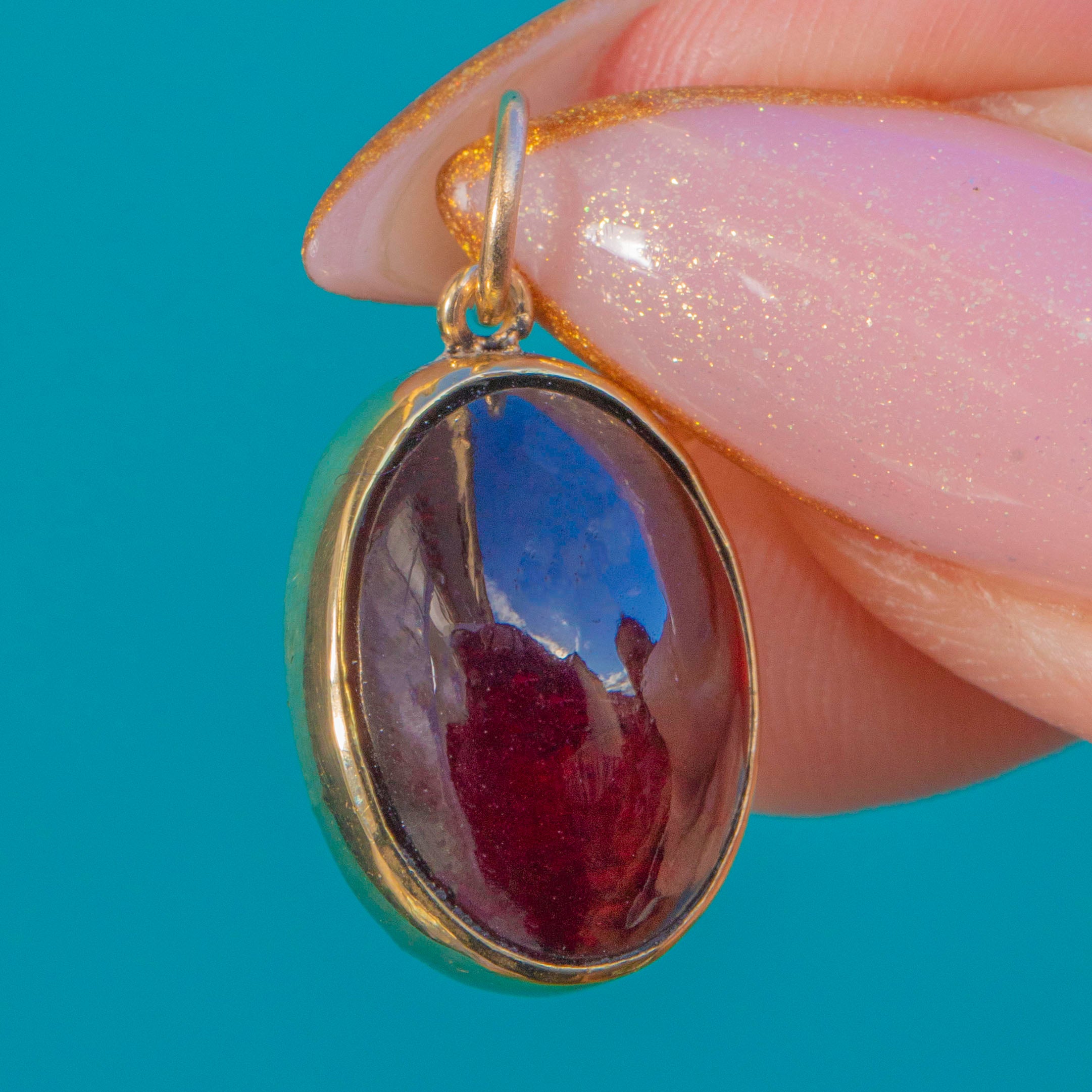 Pendentif en grenat cabochon serti clos en or 9 carats