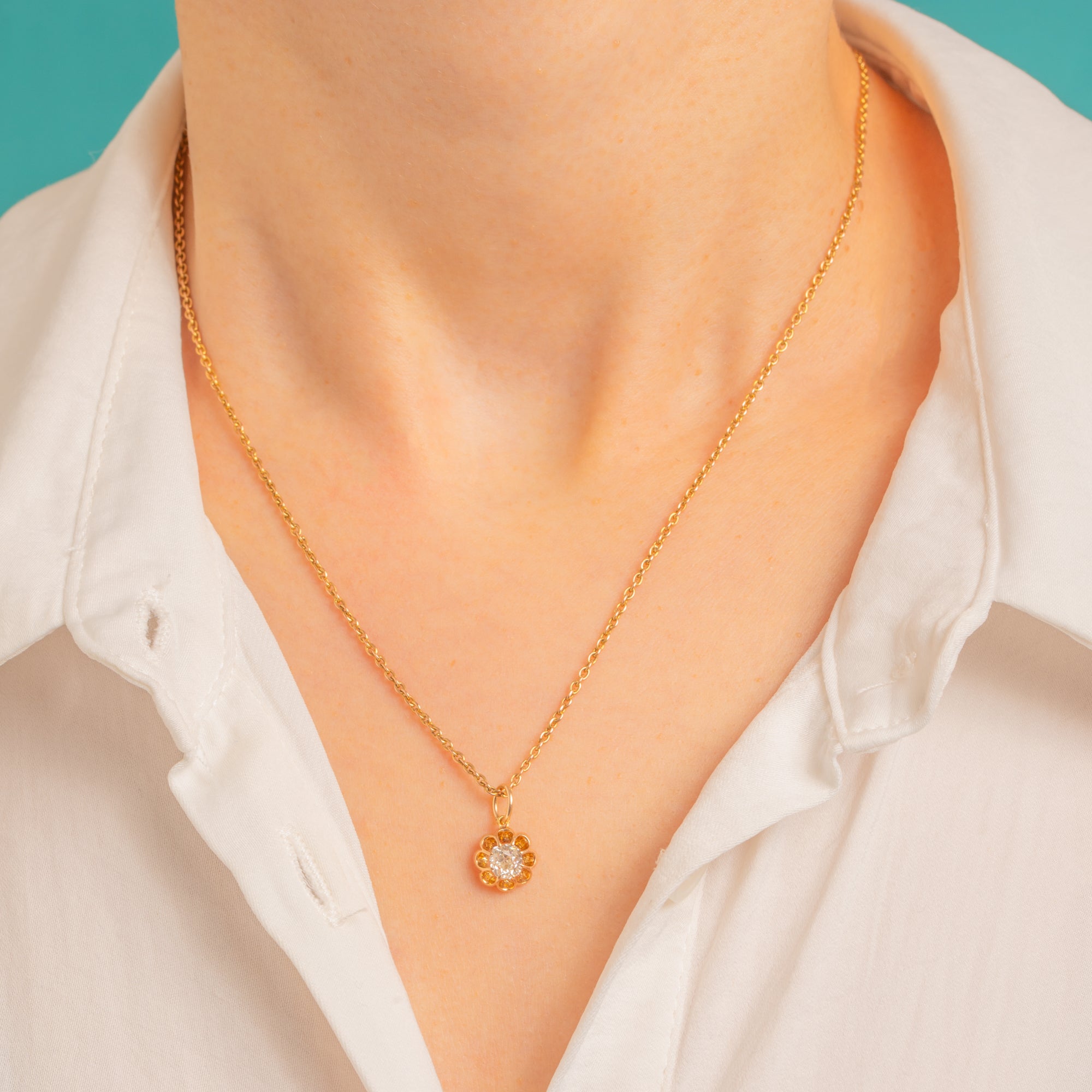 The Diamond is H colour with VS to SI clarity, displaying natural inclusions that are characteristic of antique stones. Beautiful worn alone as a delicate pendant or layered among favourite charms for a touch of Victorian charm.