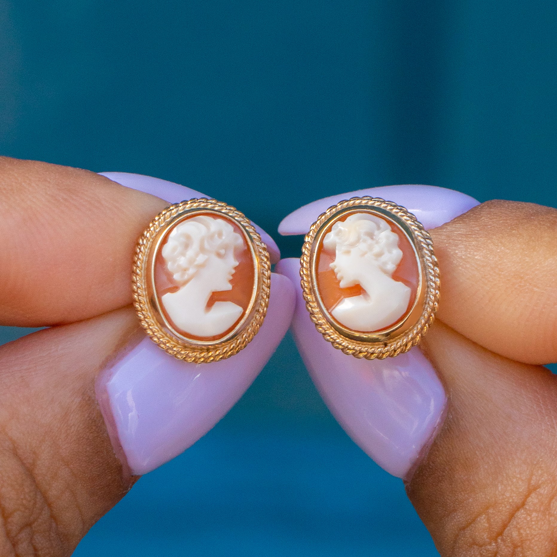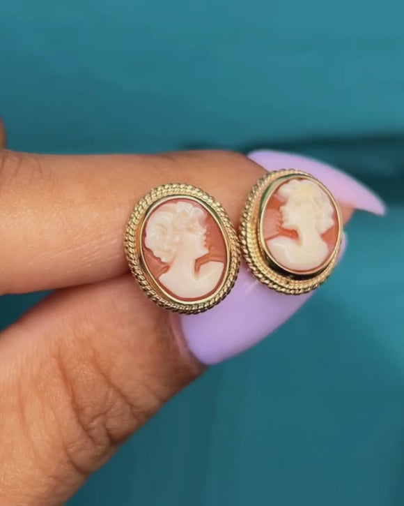 Boucles d'oreilles clous camée en or 9 carats