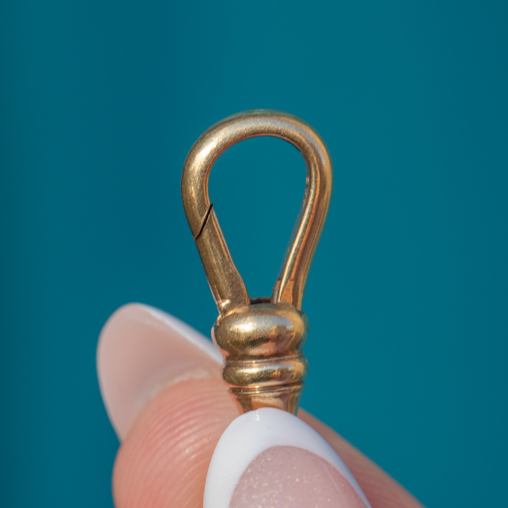 This 9ct Gold carabiner clasp is such a treat! The ultimate statement piece, this vintage clasp will provide you with endless fashionable styling possibilities. Featuring a saturated solid 9ct Gold screwtop D carabiner, topped with a much-coveted dog clip, she is so delightful (and trendy!)