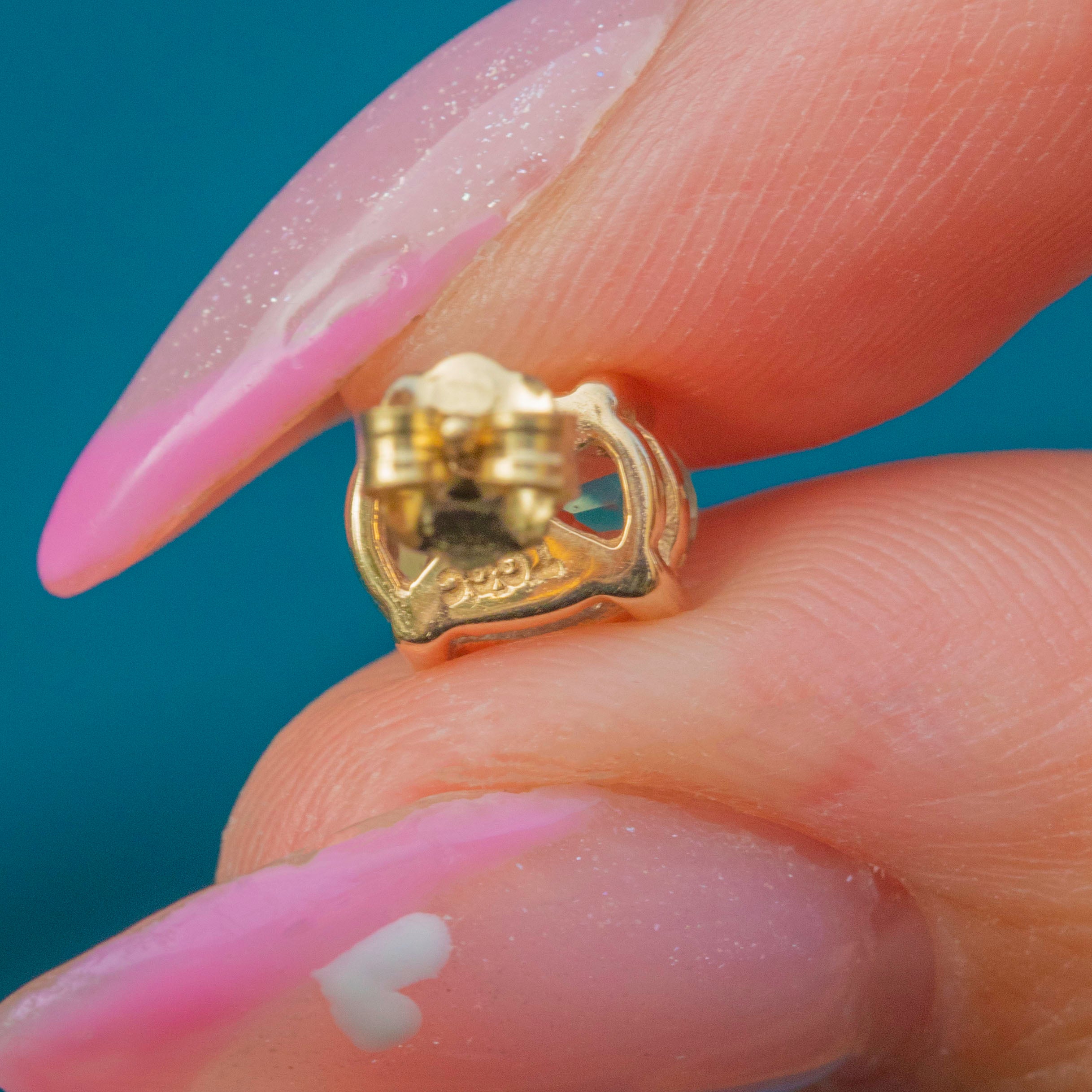 EXCELLENT: The Chrysoberyls are bright and eye-clean, with no chips or abrasions visible under magnification. The Gold settings are secure and gleaming, showing minimal wear consistent with gentle, careful use.
