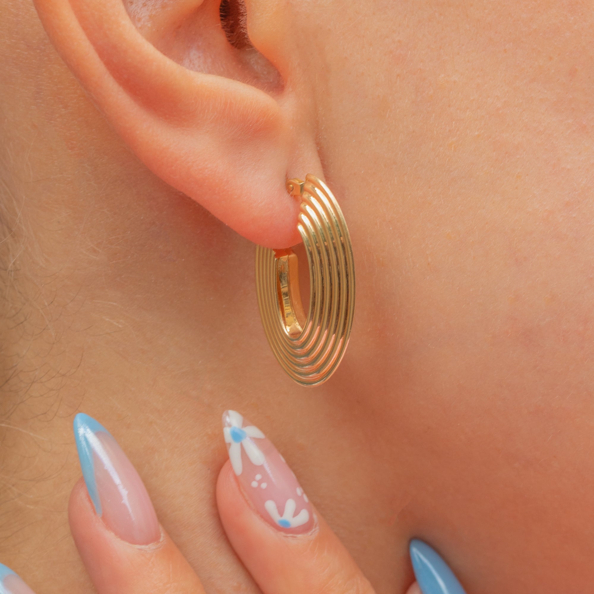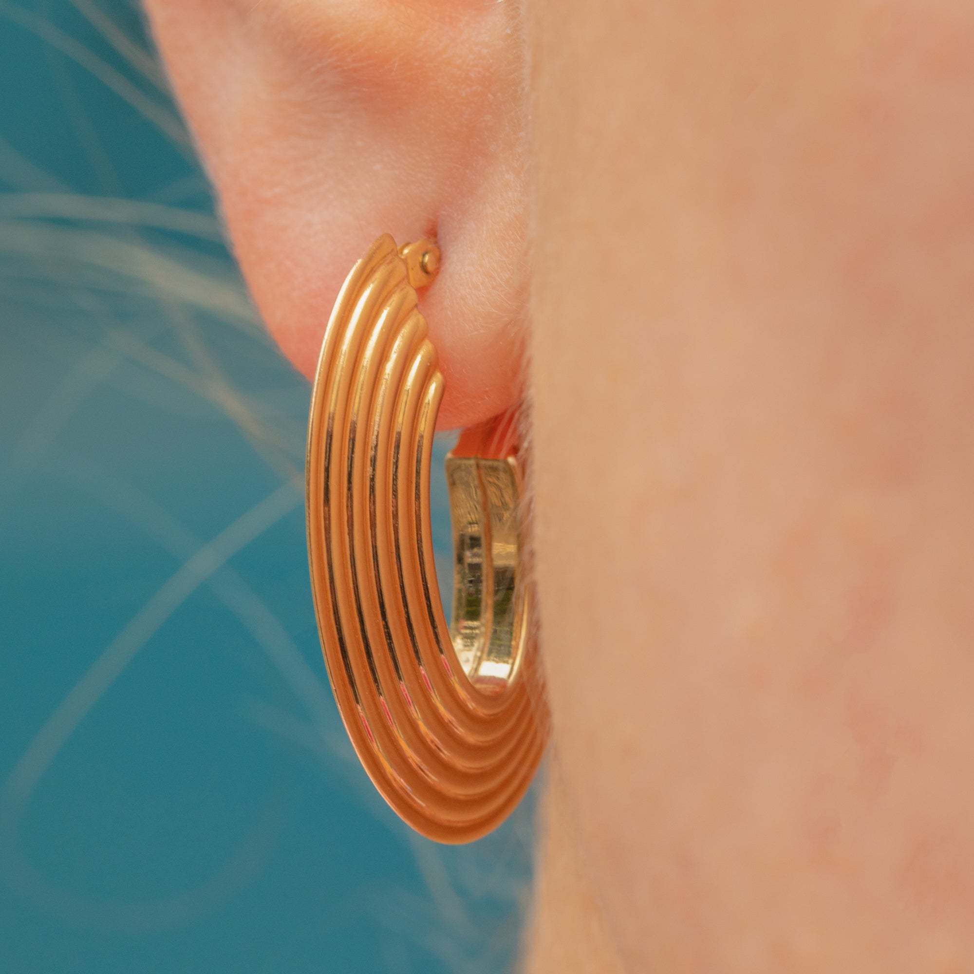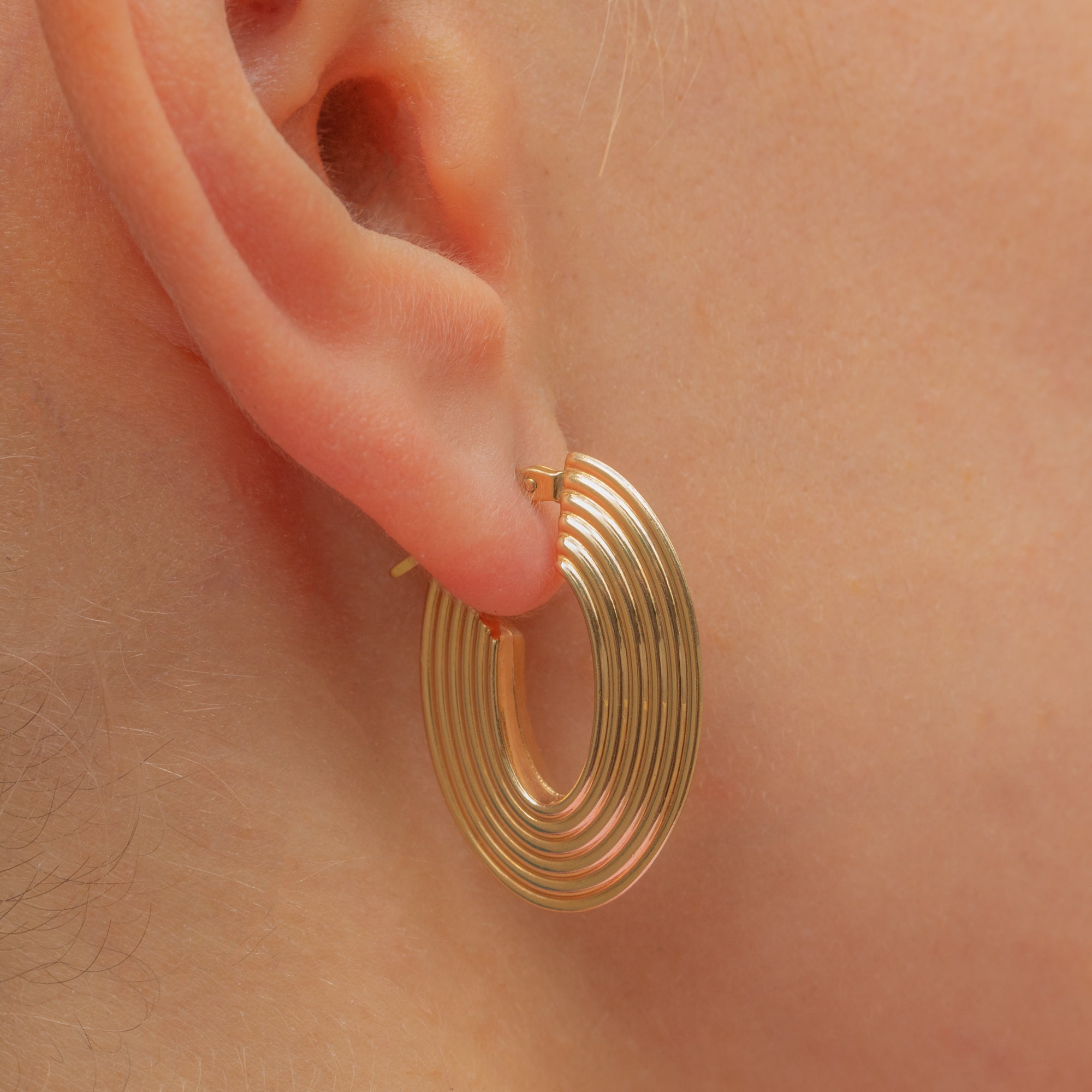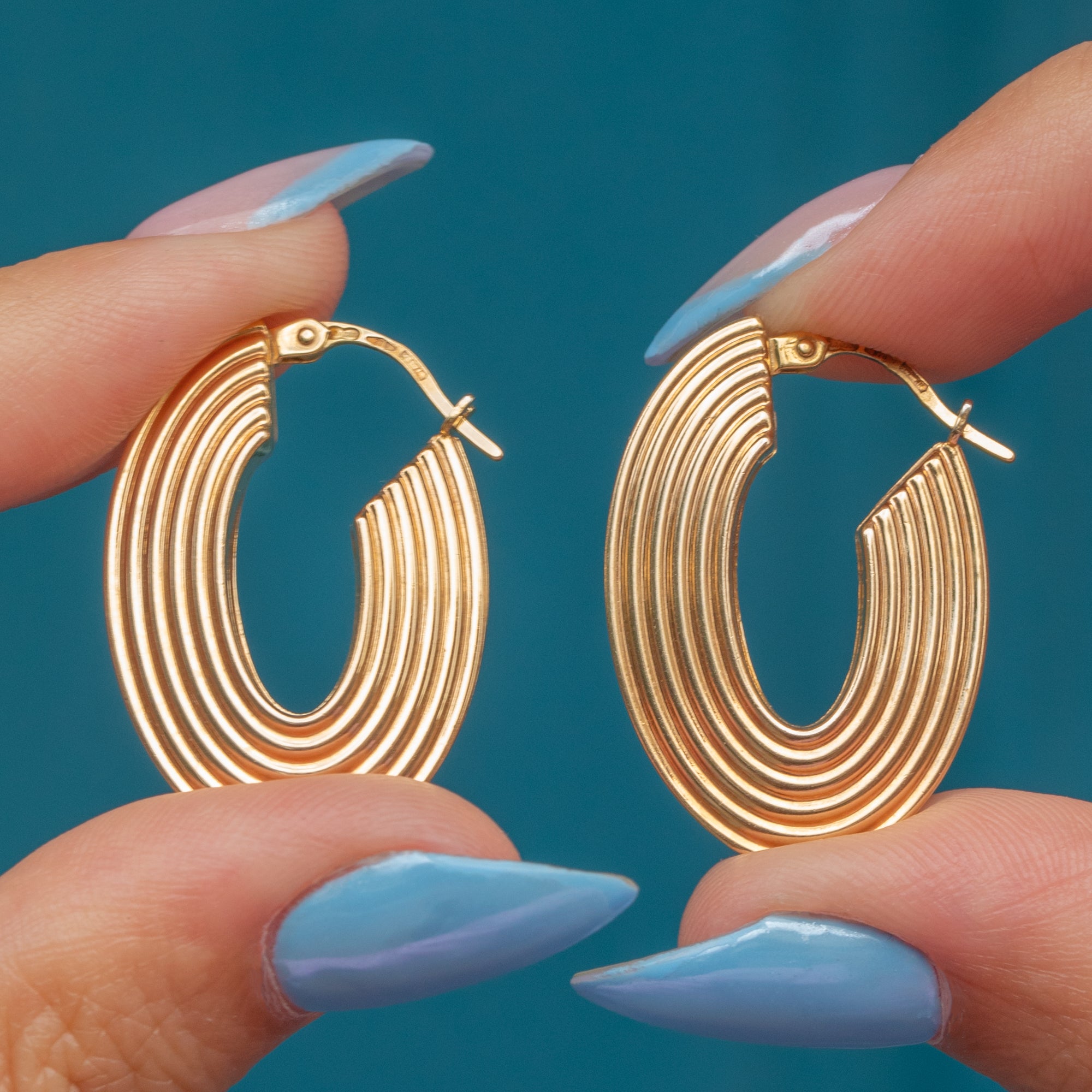 These vintage Gold hoops will add a unique edge to your outfit! Crafted from solid 9ct Gold, each oval hoop has a defined, ridged form that catches the light magnificently.