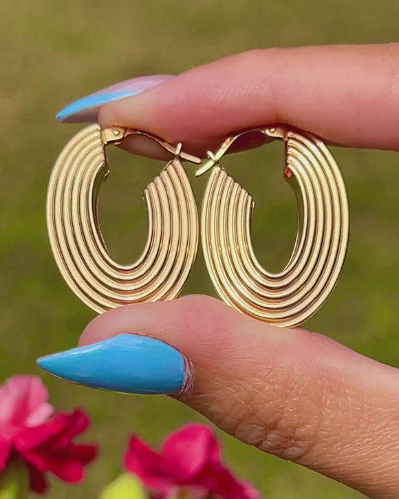 9ct Gold Chunky Ridged Oval Hoop Earrings