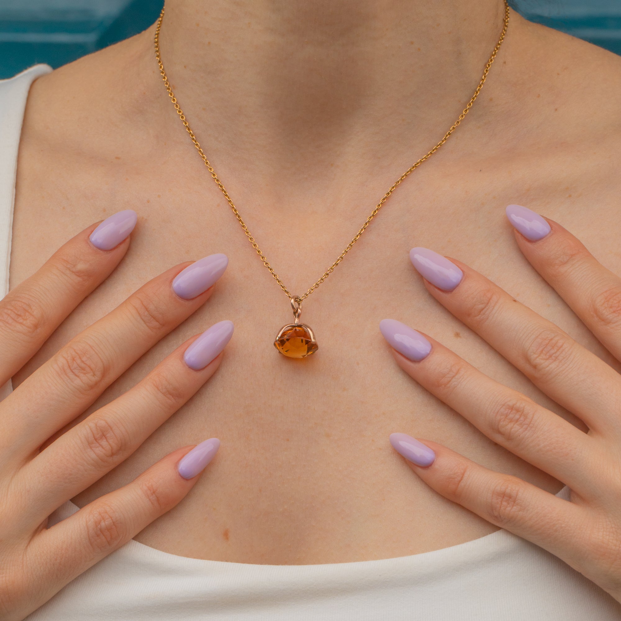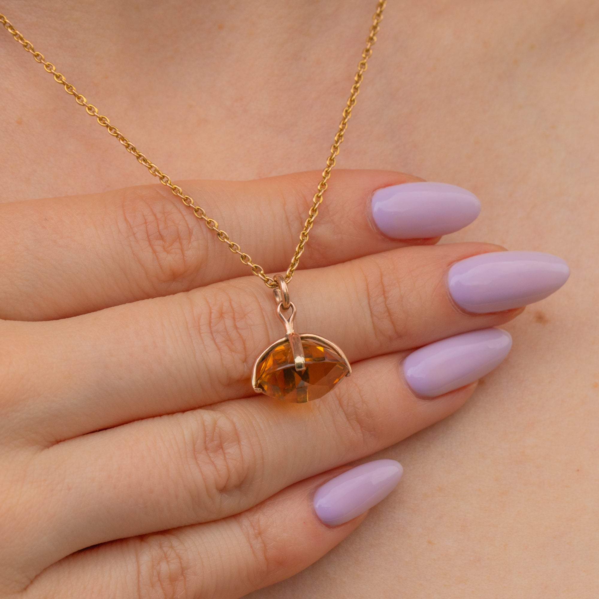 This 9ct Gold Citrine charm pendant is such a fabulous find! The round-cut Citrine is infused with the most delicious marmalade hues, and if that wasn't enough to tantalise you taste buds, the 6.00ct Citrine is set in a smooth 9ct yellow Gold that perfectly complements it.