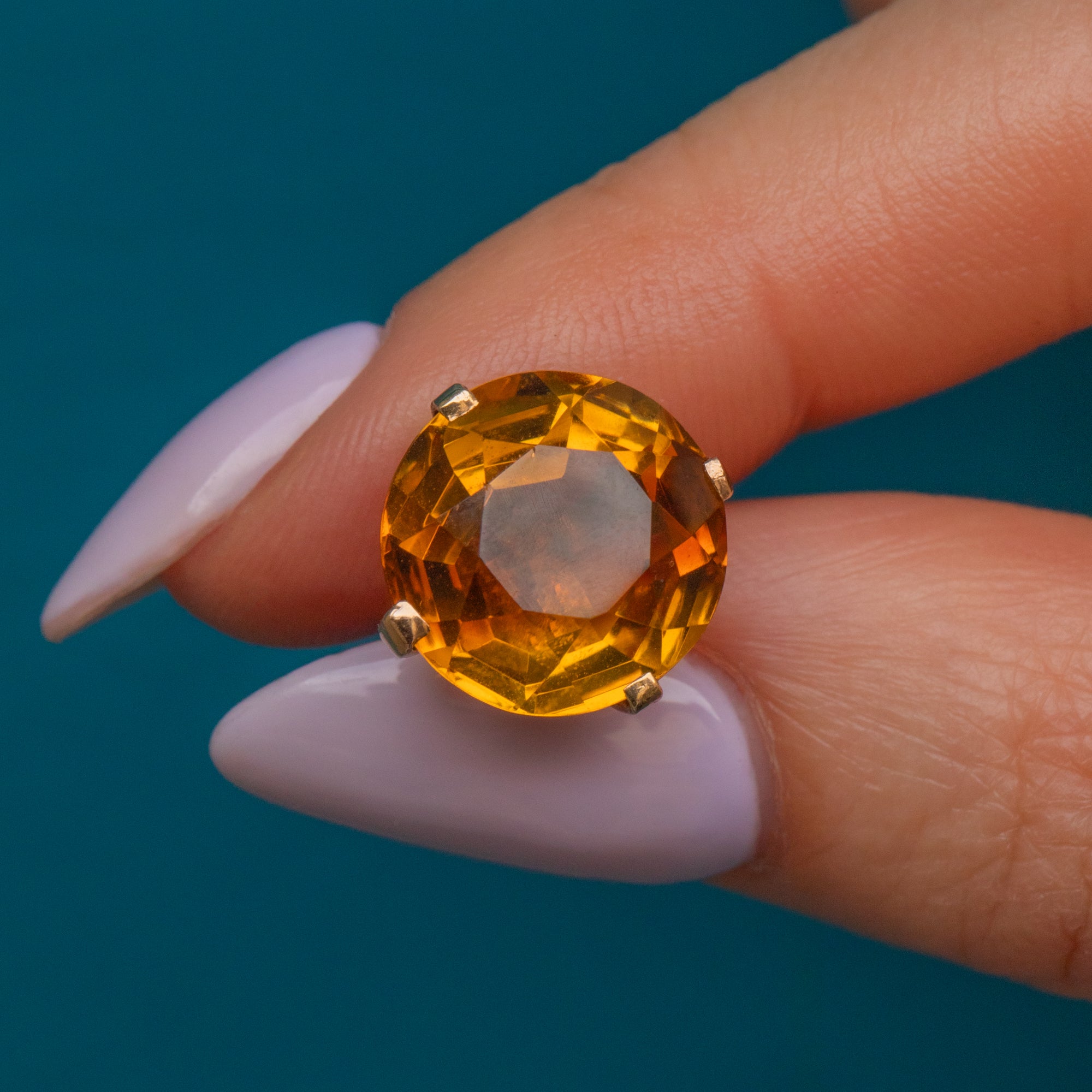 EXCELLENT. This 9ct Gold Citrine charm pendant is in excellent condition! This pendant is 6.00ct of pure bliss. The Citrine has a gorgeous hue, and is secure in its claw settings. The jump-ring allows you to wear this piece securely from a necklace or dog-clip. This piece used to be a button, but can be worn beautifully as a pendant!