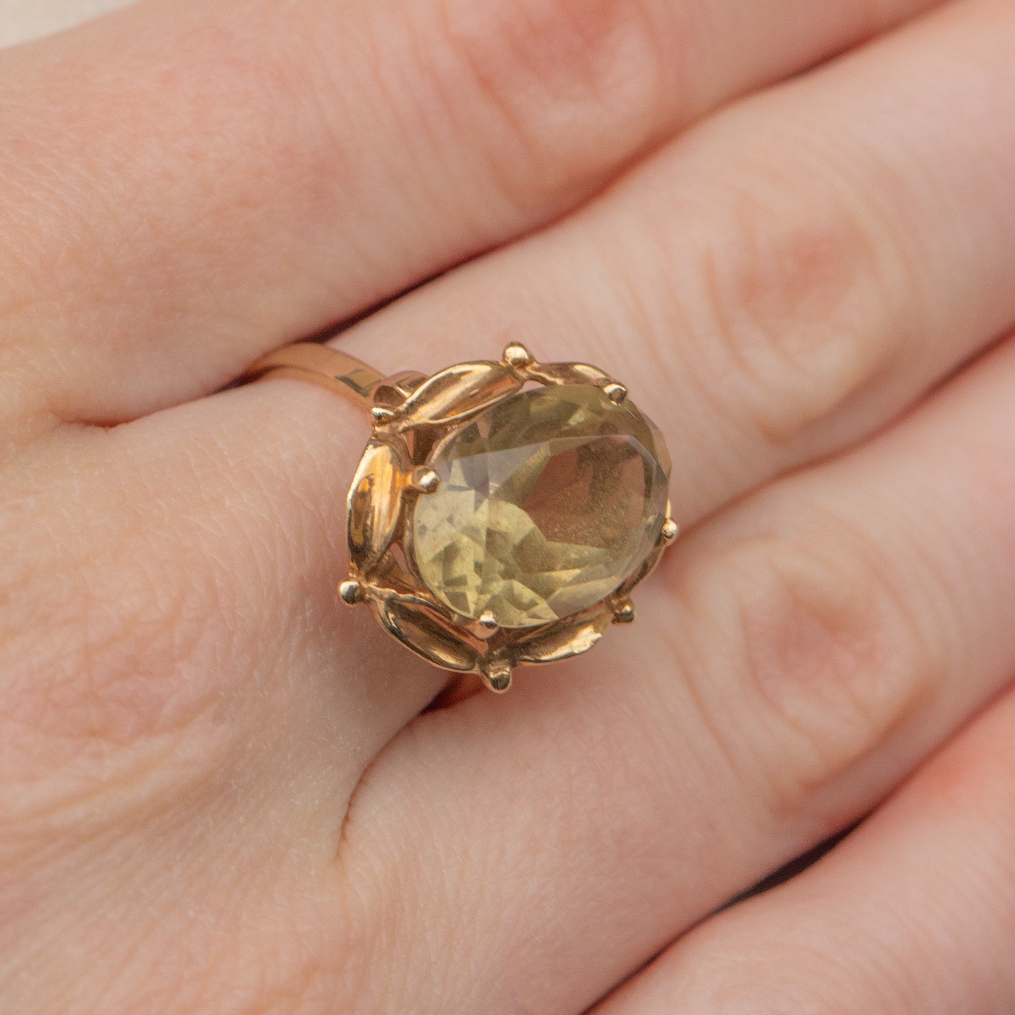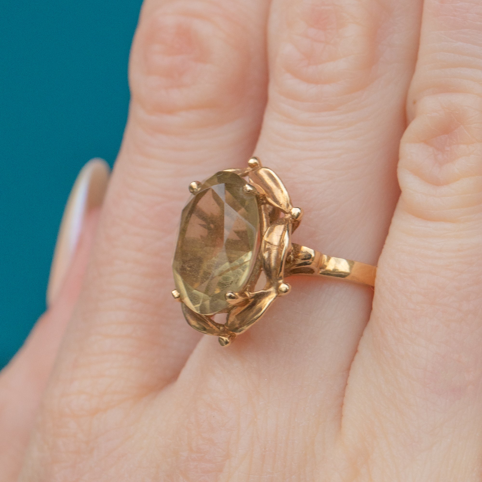The lemony 4.90ct Citrine sits snug within a 9ct Gold basket, surrounded by a floral-inspired setting! This dress ring has great wear potential and is sure to elevate your ring stack.