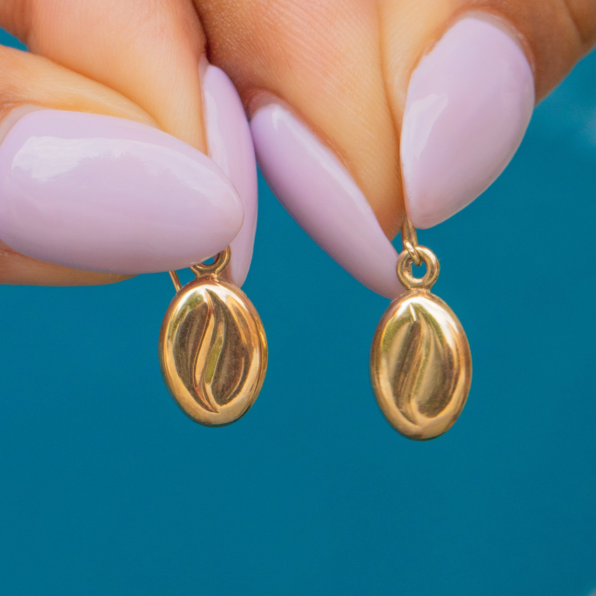 Boucles d'oreilles pendantes en or 9 carats en forme de grain de café