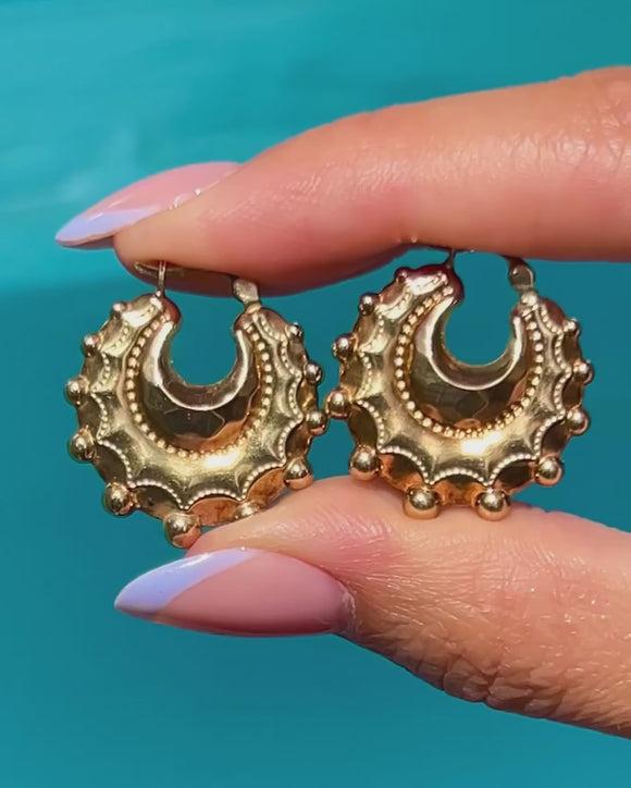 Crafted from rich 9ct Gold, these Creole hoop earrings are bold and eye-catching, with their unique design sure to impress. These vintage hoops will look gorgeous in the ear, and can be worn every day without a pull on the ear!