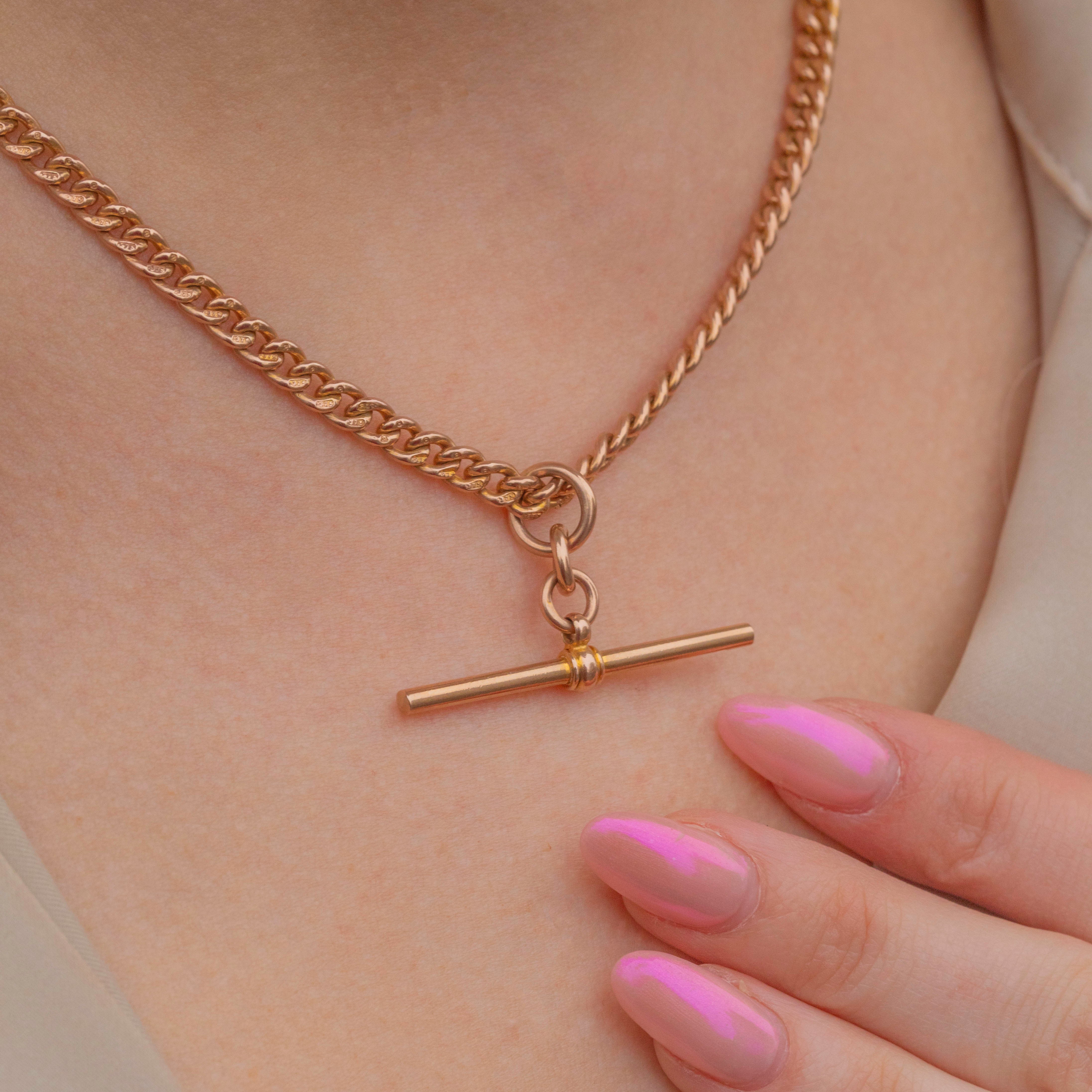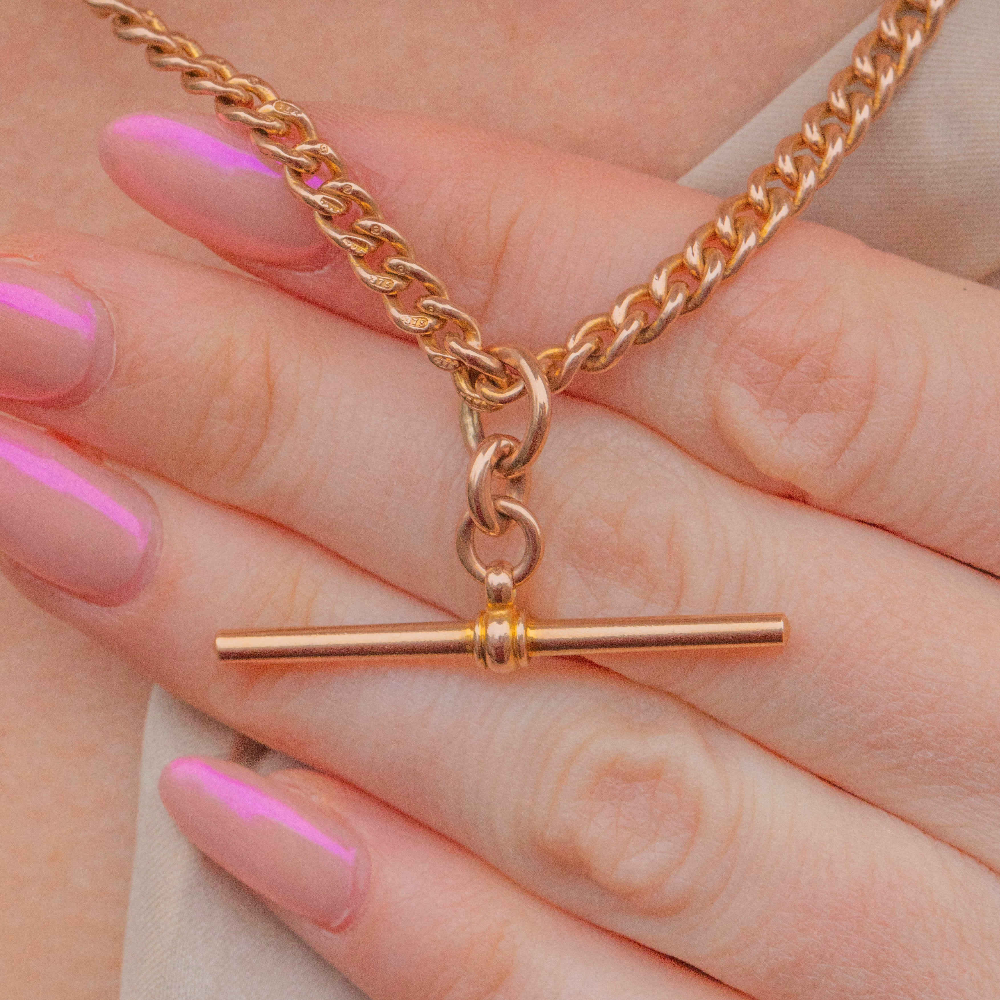 This 9ct Gold curb chain with matching dog-clips & mobile T-bar is exactly what your collection needs! You can't go wrong with a solid Gold Albert chain, and weighing in at 24.3g this buttery bright solid yellow Golf chain is a great investment.