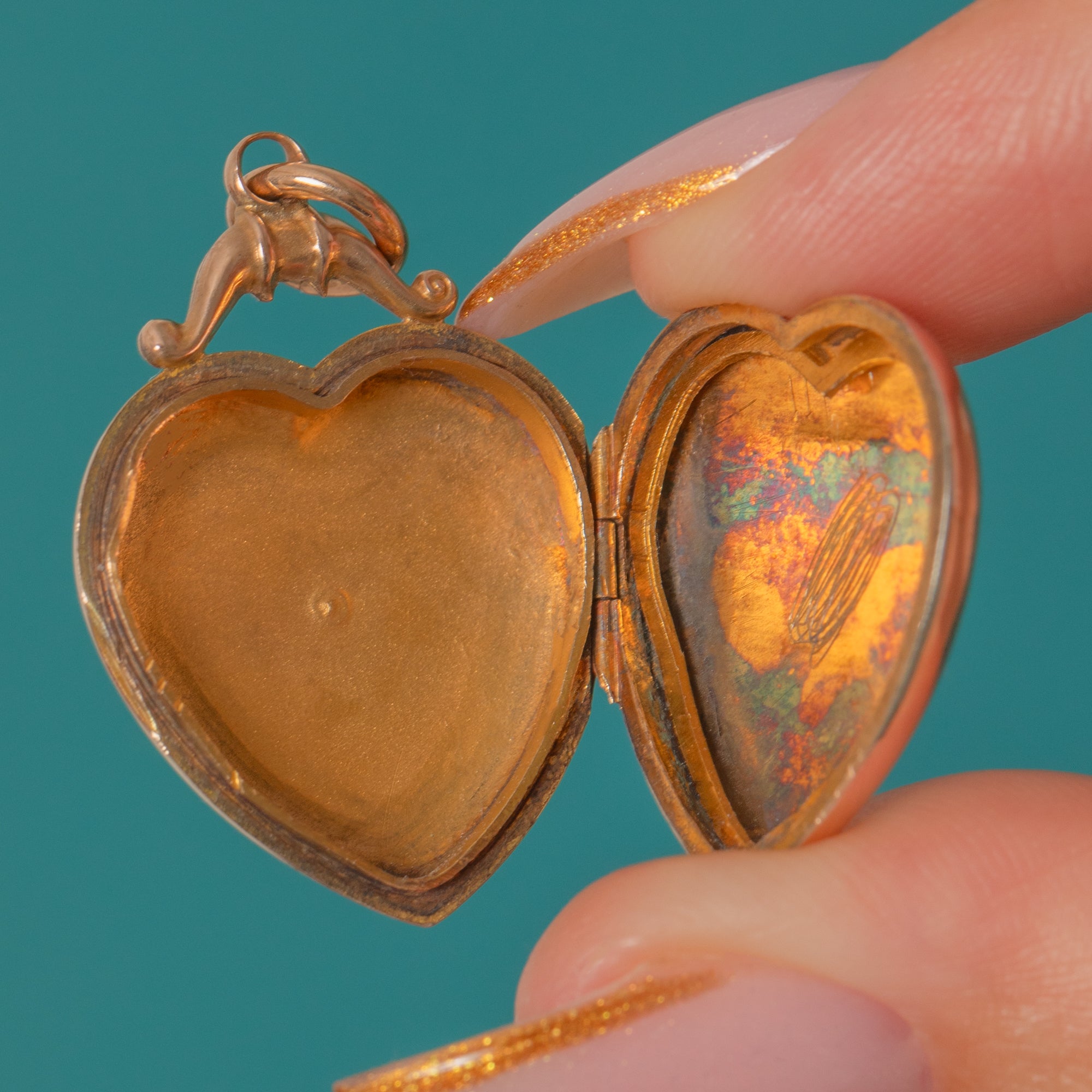 EXCELLENT: The locket opens and closes securely with a smooth hinge. The Diamond is bright and intact, and the Gold has a lovely patina with minimal surface wear. Beautifully preserved throughout.