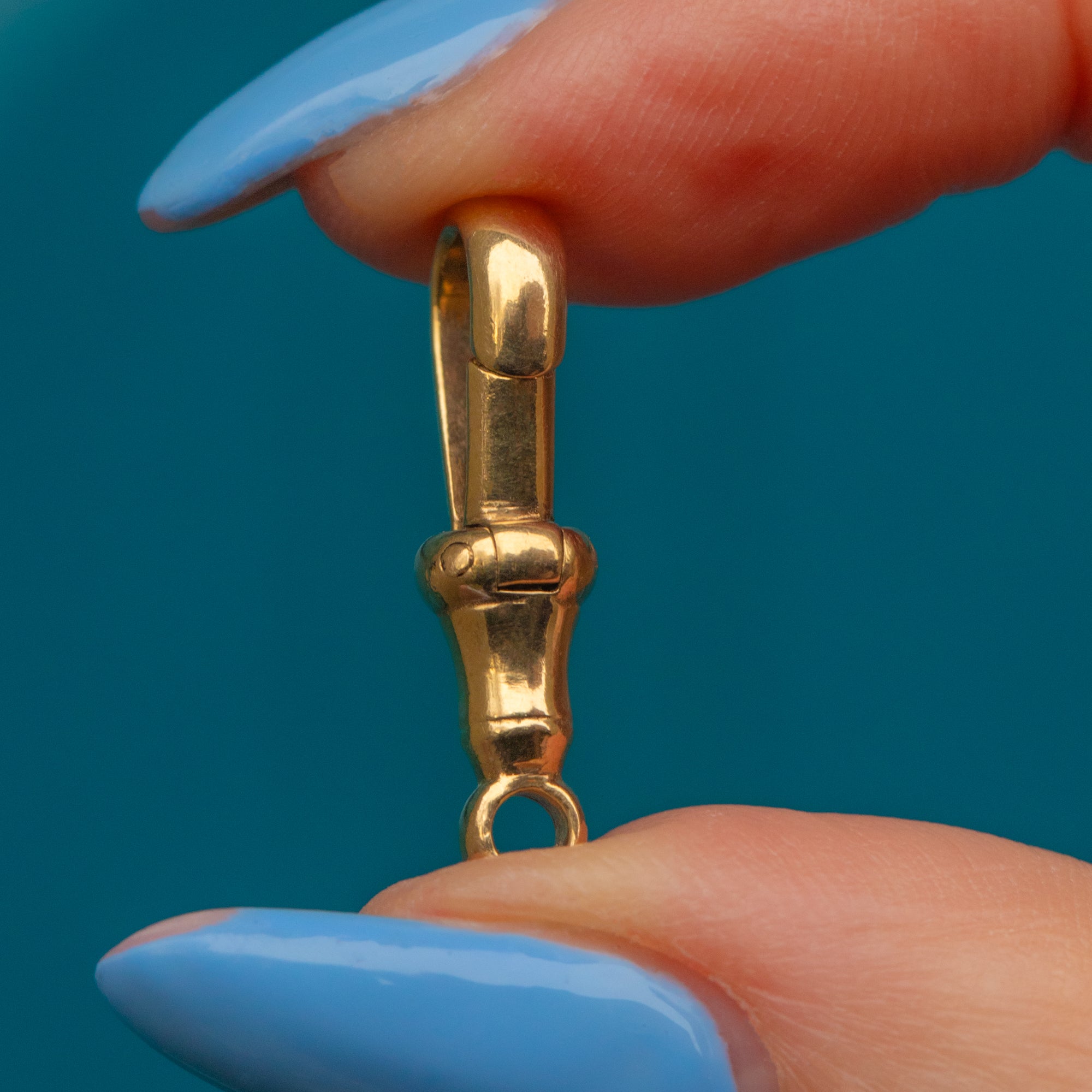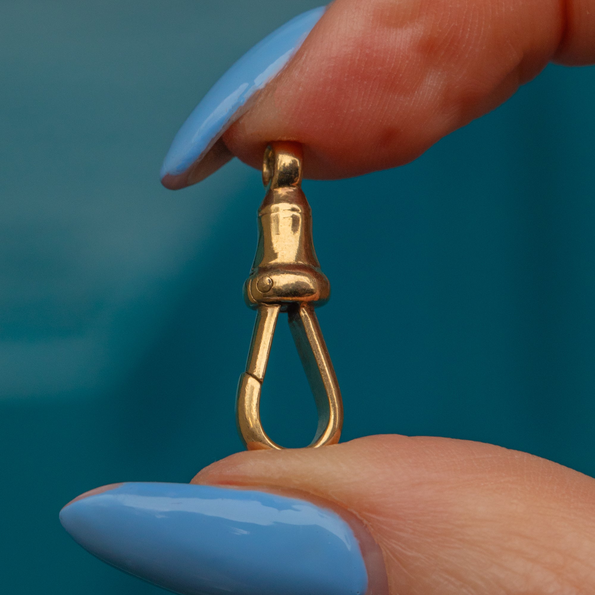 EXCELLENT. This large bright yellow 9ct Gold antique dog-clip is in mint condition. Her Gold is lustrous and free from any visible signs of wear. In perfect working condition and with little else to note, she is excellent!