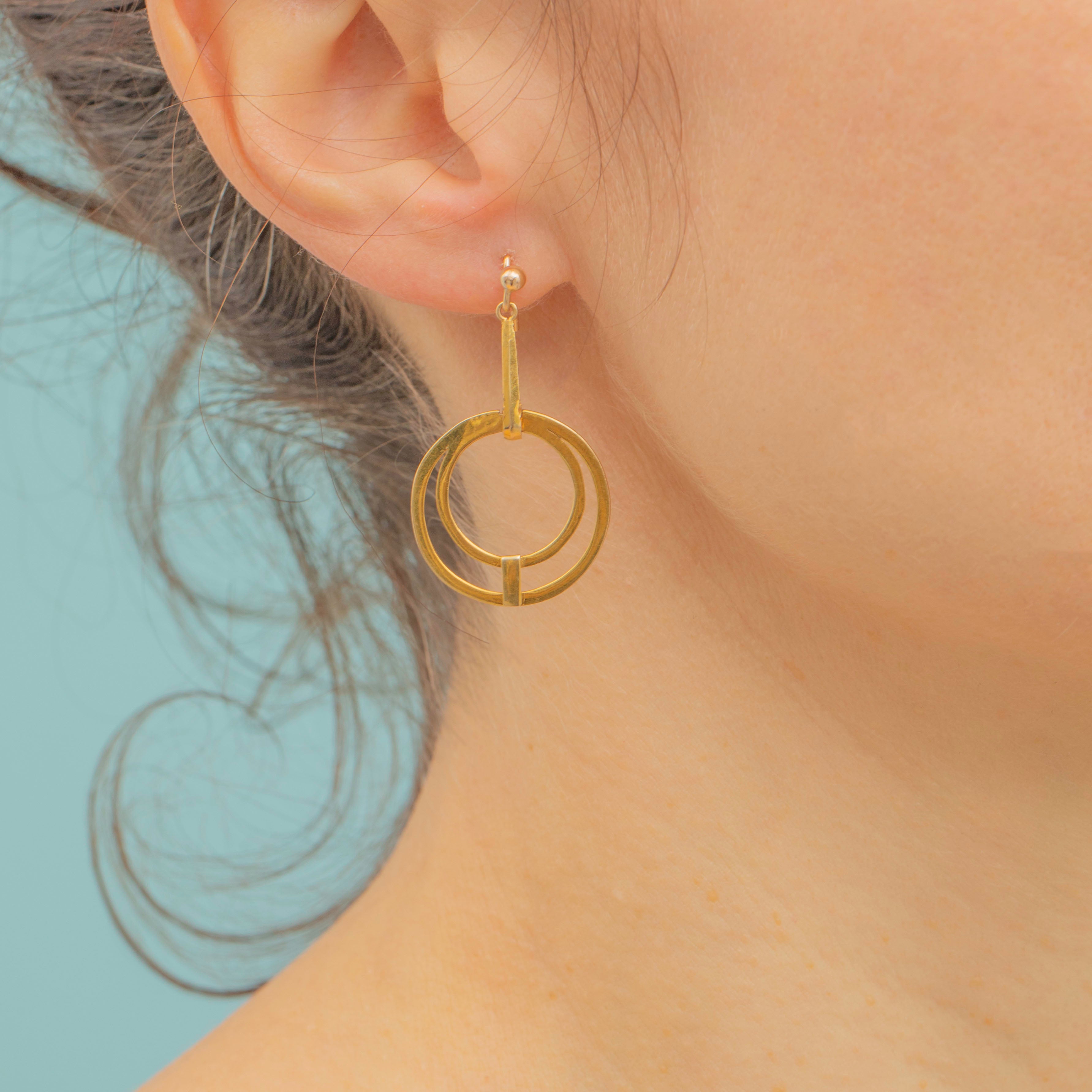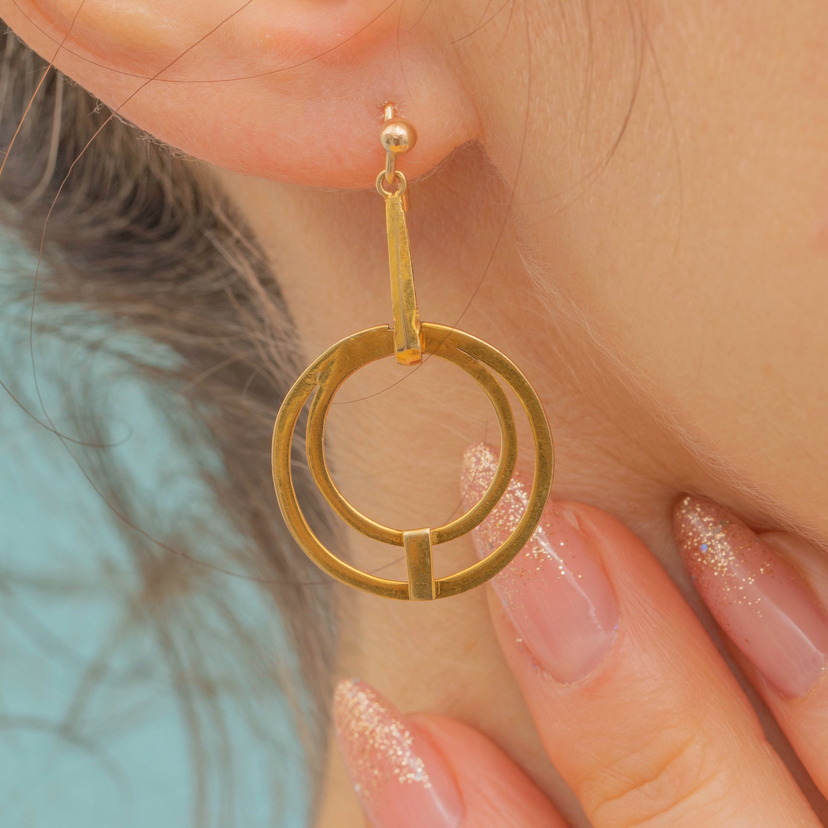 EXCELLENT. This pair of 9ct Gold double hoop drop earrings are in excellent condition. The earrings are complete with hooks for comfortable wear. With very minimal sign of wear, these earrings can be worn everyday with confidence.