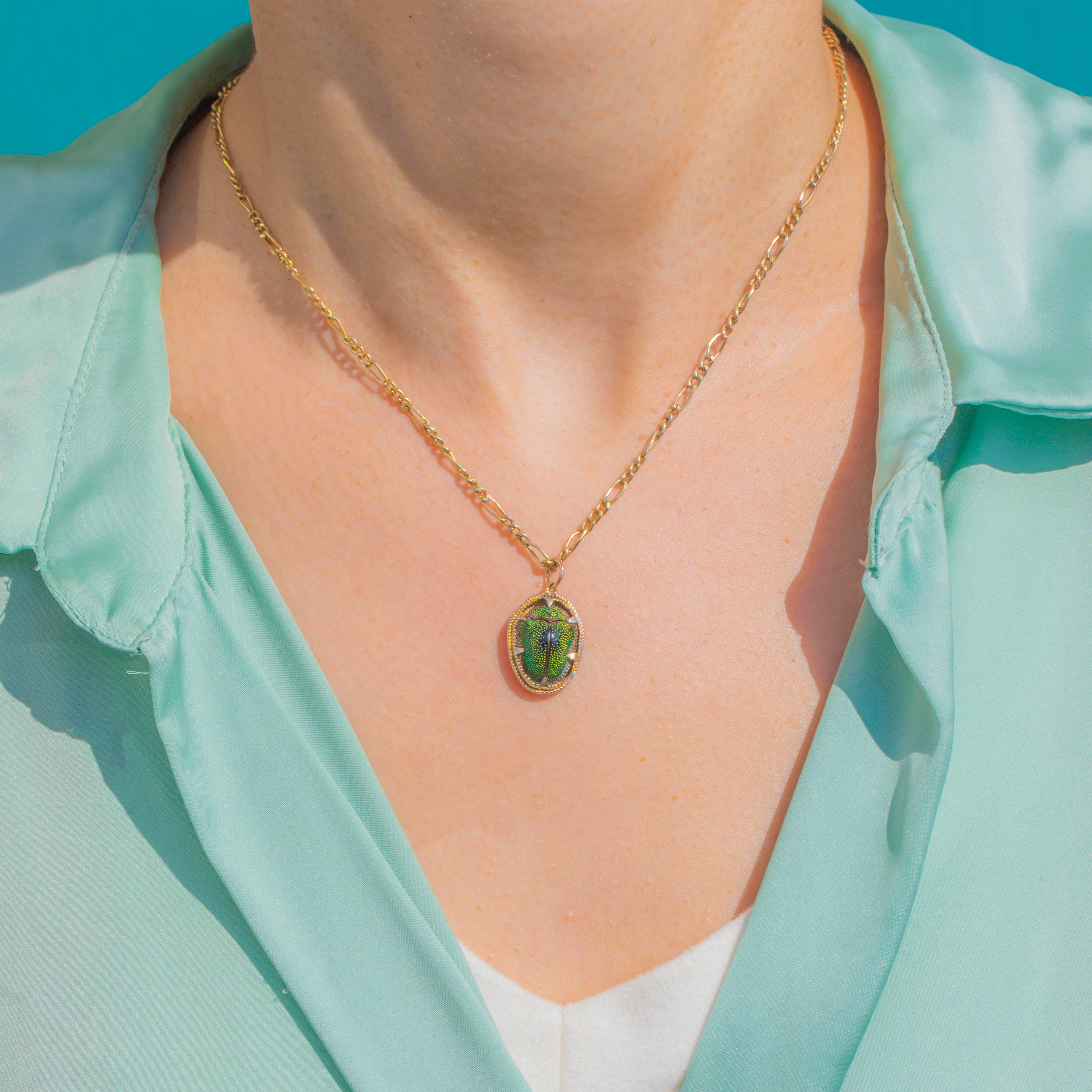 An elegant nod to Egyptian Revival style, this petite Victorian scarab charm is rich with symbolism and old-world allure. Crafted in 9ct Gold, the beetle is framed by a refined rope-twist bezel that adds texture and a delicate glow to the design.