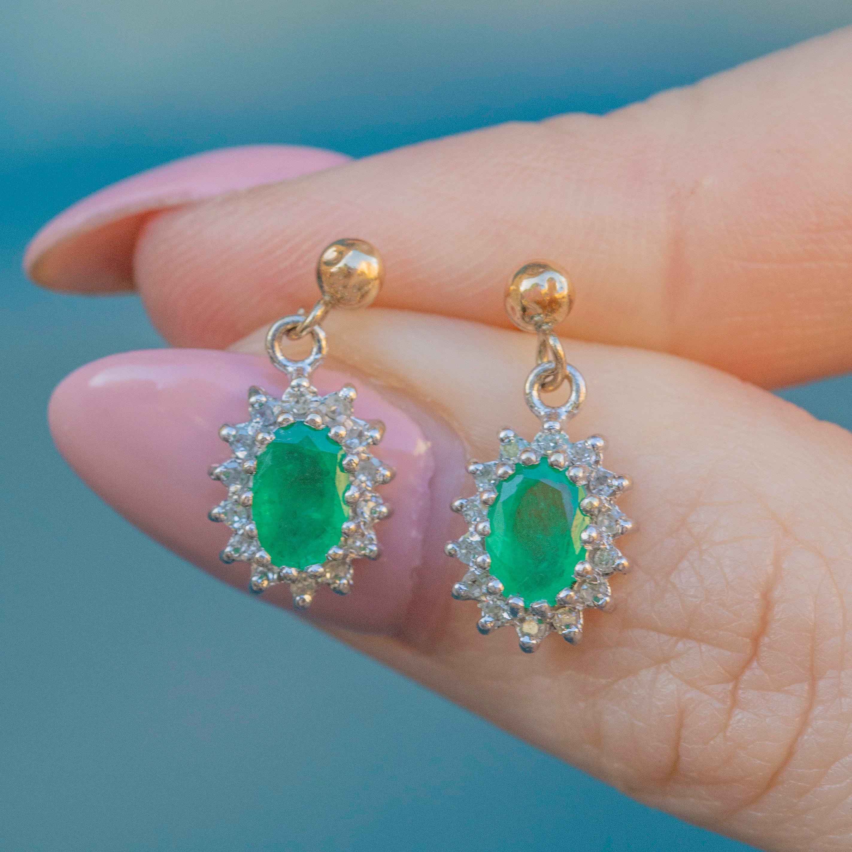 Add a vibrant pop of colour and a touch of sophistication to your collection with these 9ct Gold Emerald Diamond cluster earrings!