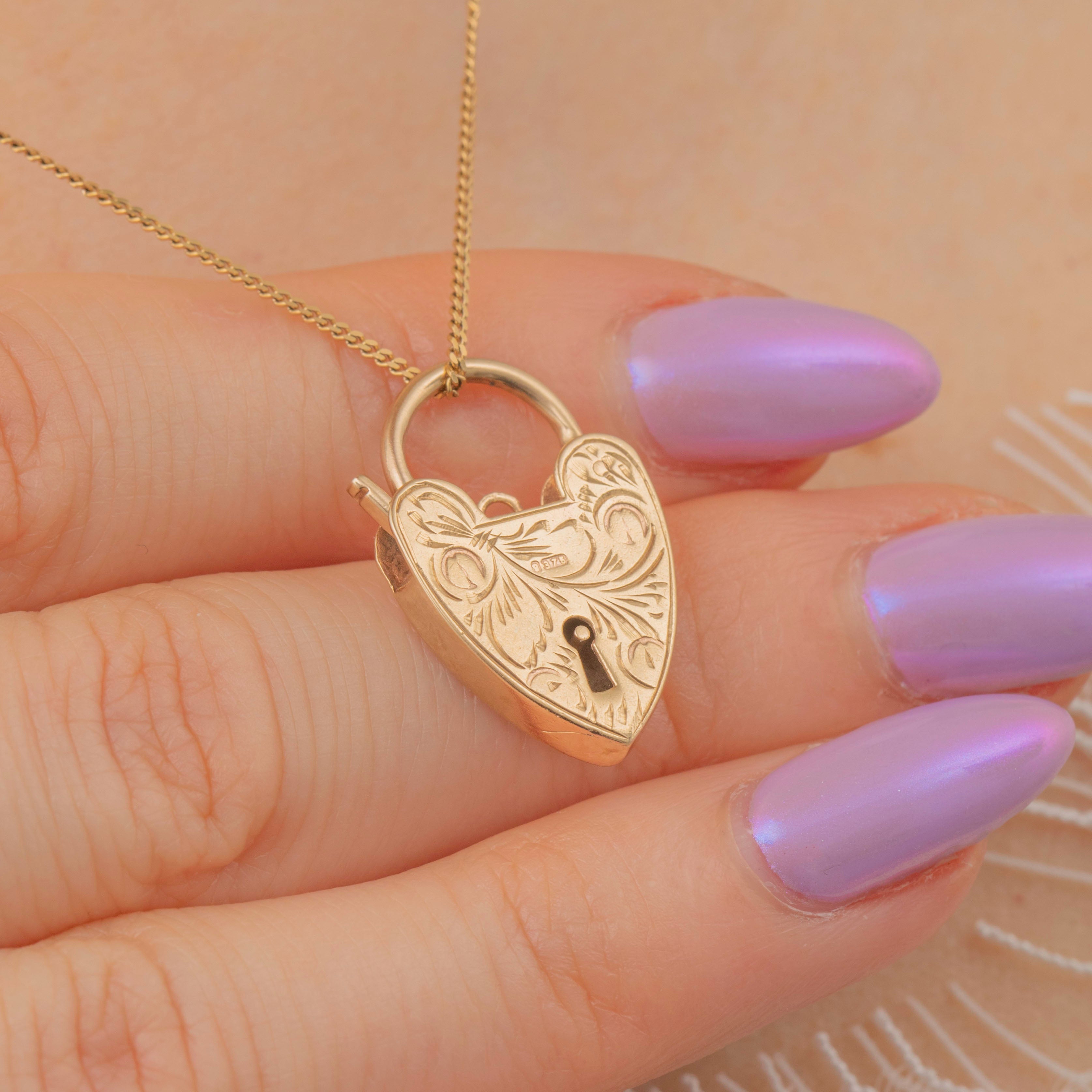 This Victorian 9ct Gold engraved heart padlock pendant is a petite treasure! Crafted entirely from buttery 9ct, she is a highly collectible piece!