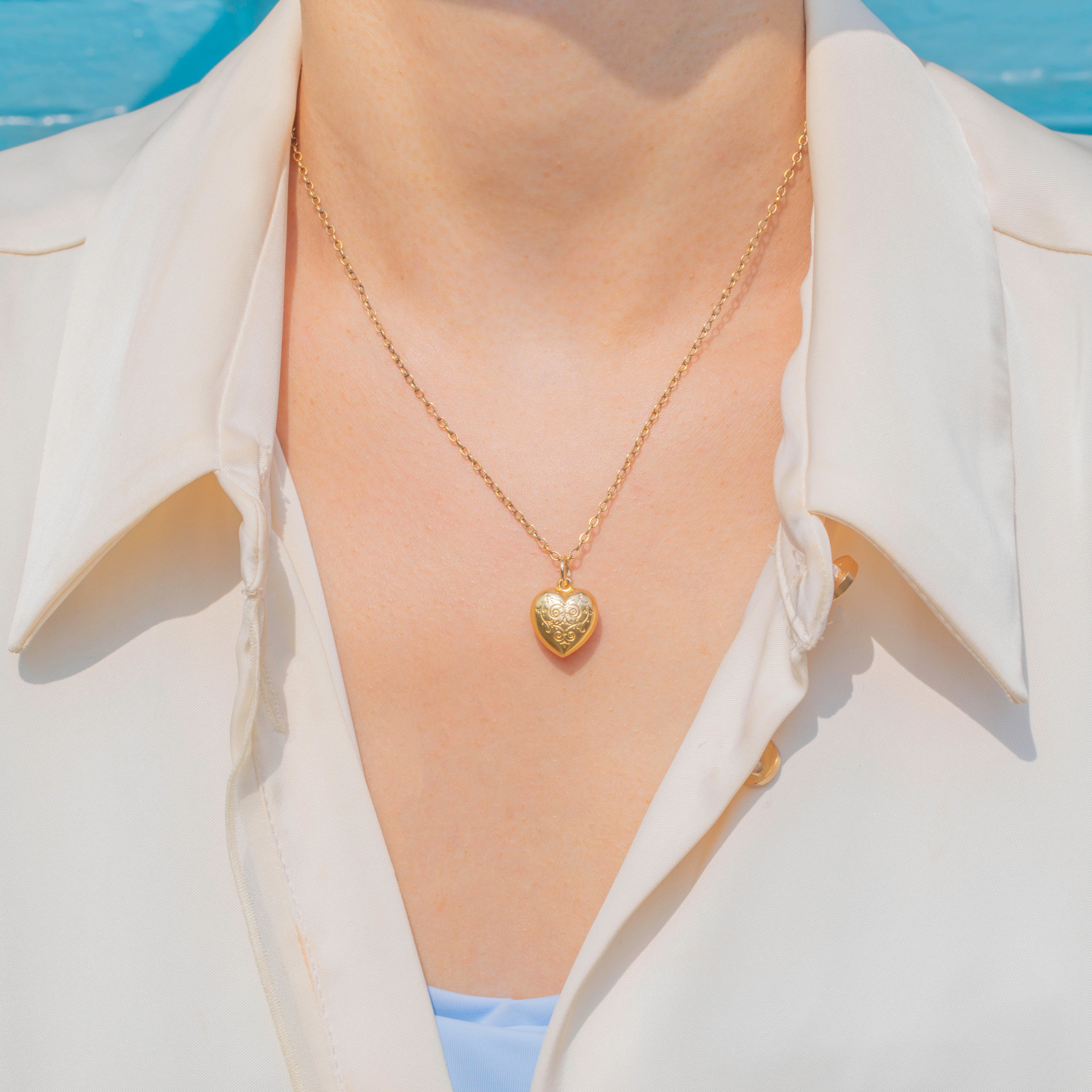 This 9ct Gold engraved puffy heart charm exudes vintage prestige! Crafted from bright Gold, the surface of the heart displays beautiful engravings, bringing ample texture to this dainty vintage pendant.