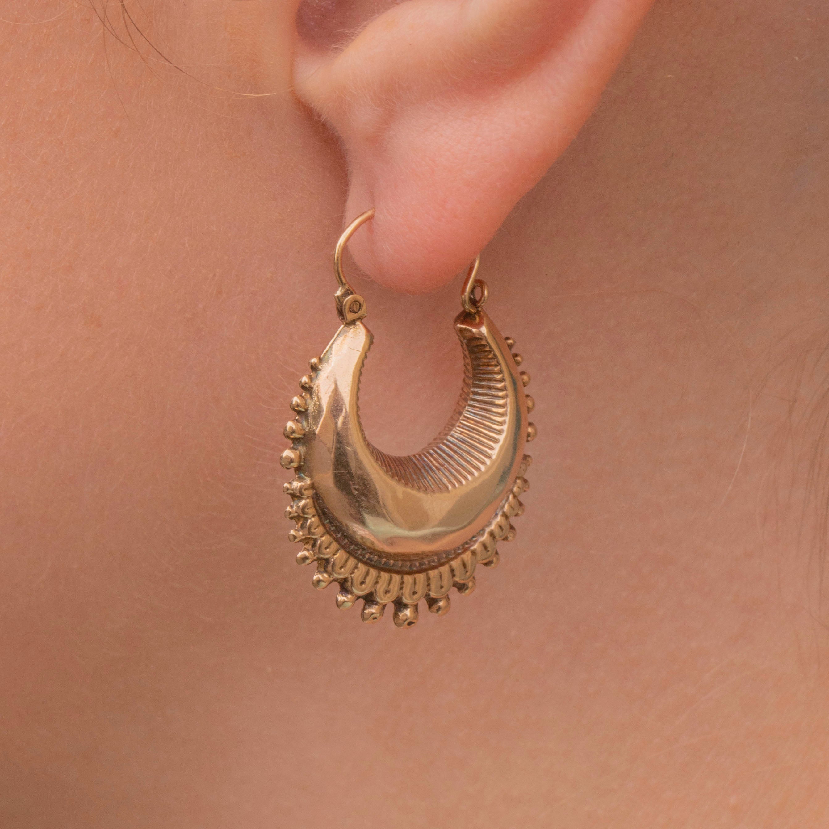 EXCELLENT. These 9ct Gold faceted fancy hoop earrings are in exceptional condition. The Gold is bright with no dings or dents to the body of the earrings. The hooks are sturdy and attach securely making them ready to wear or gift straight away.