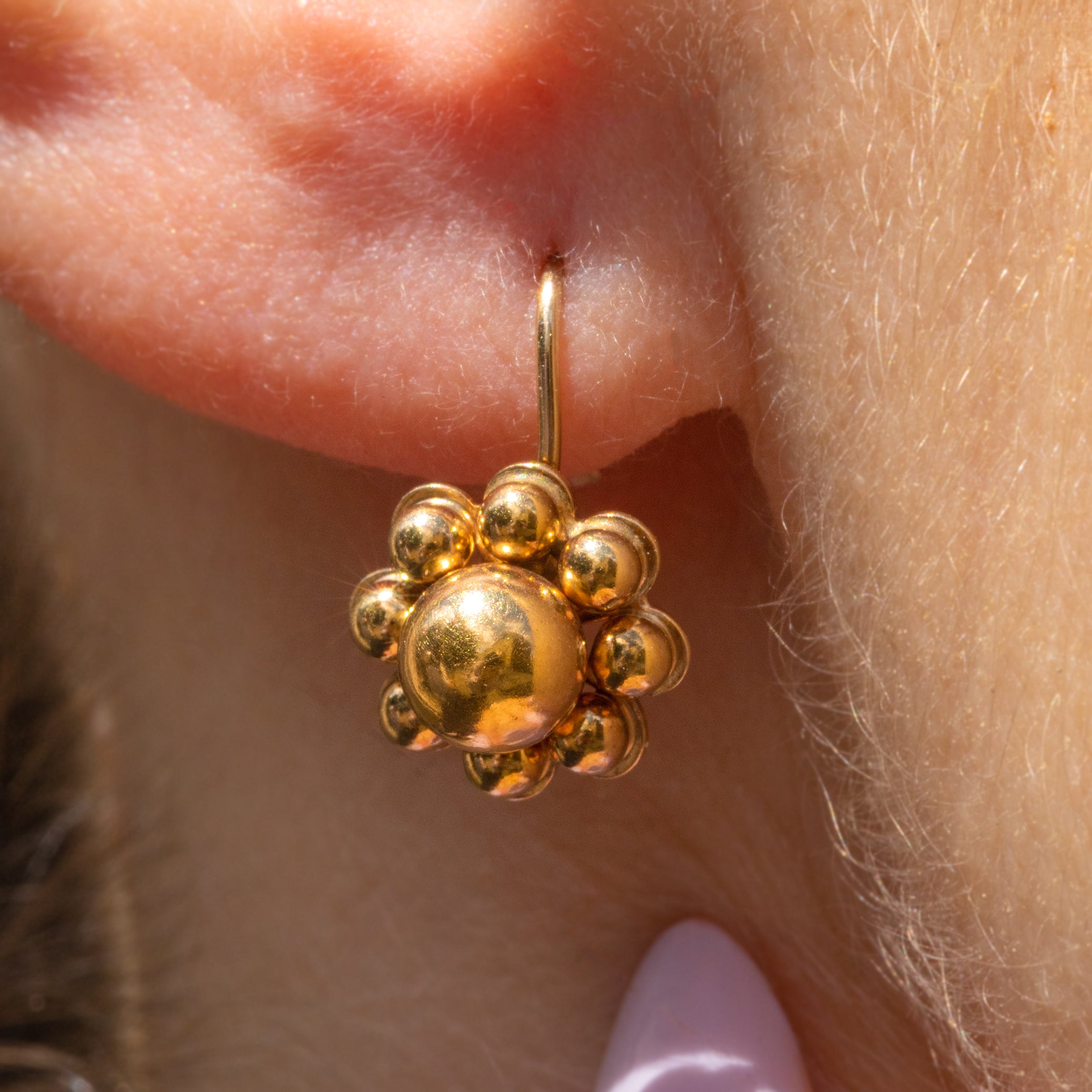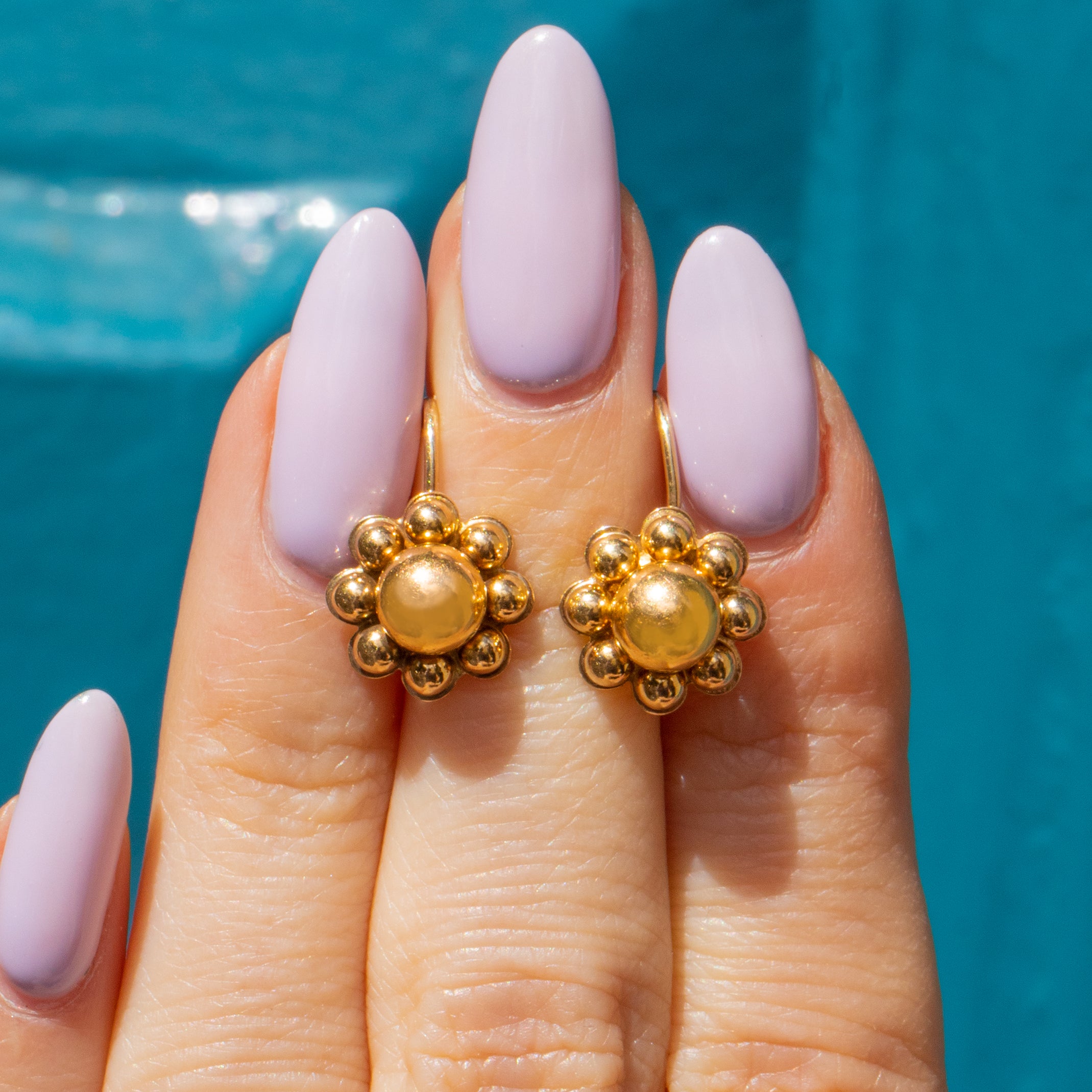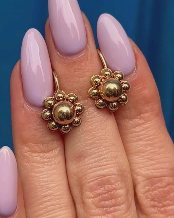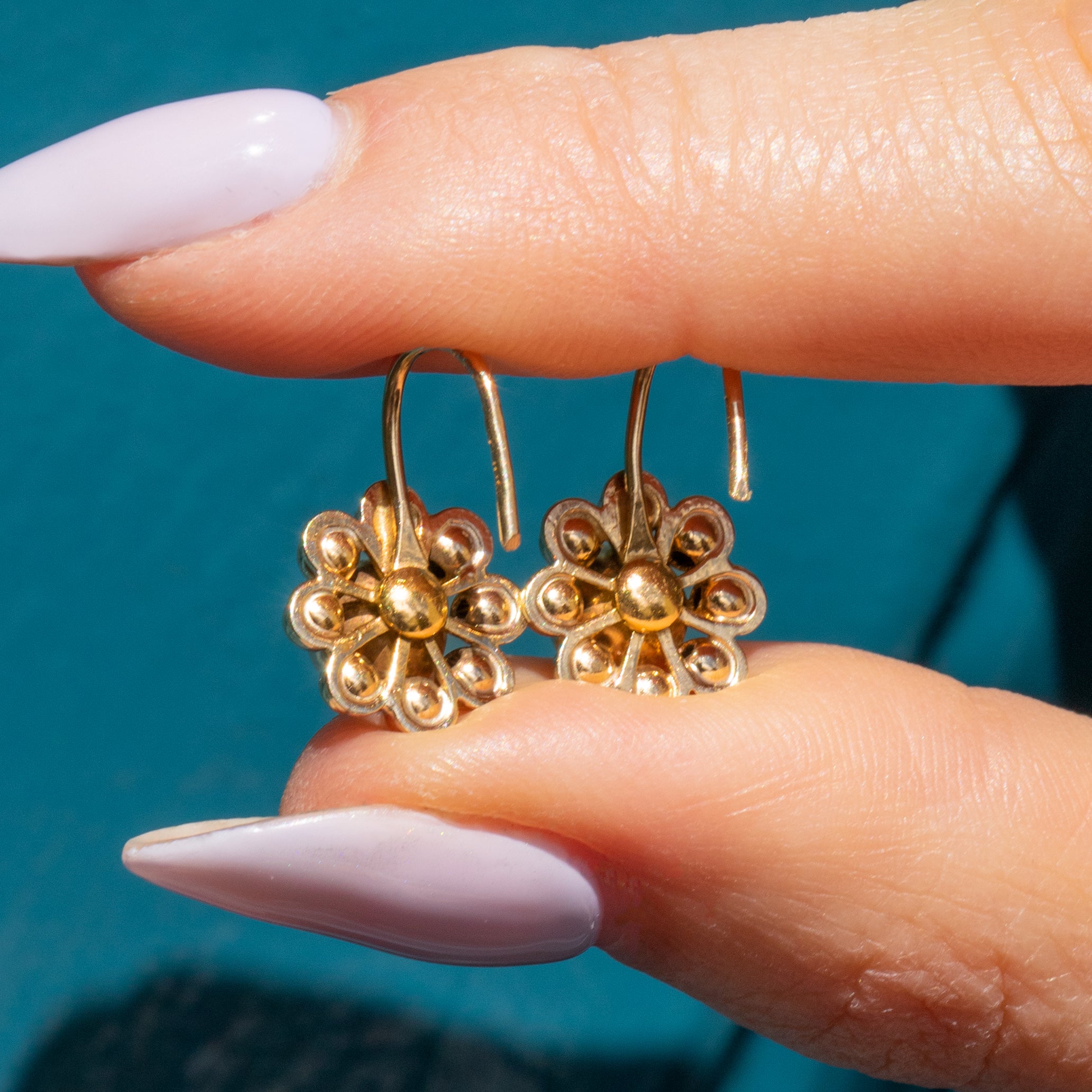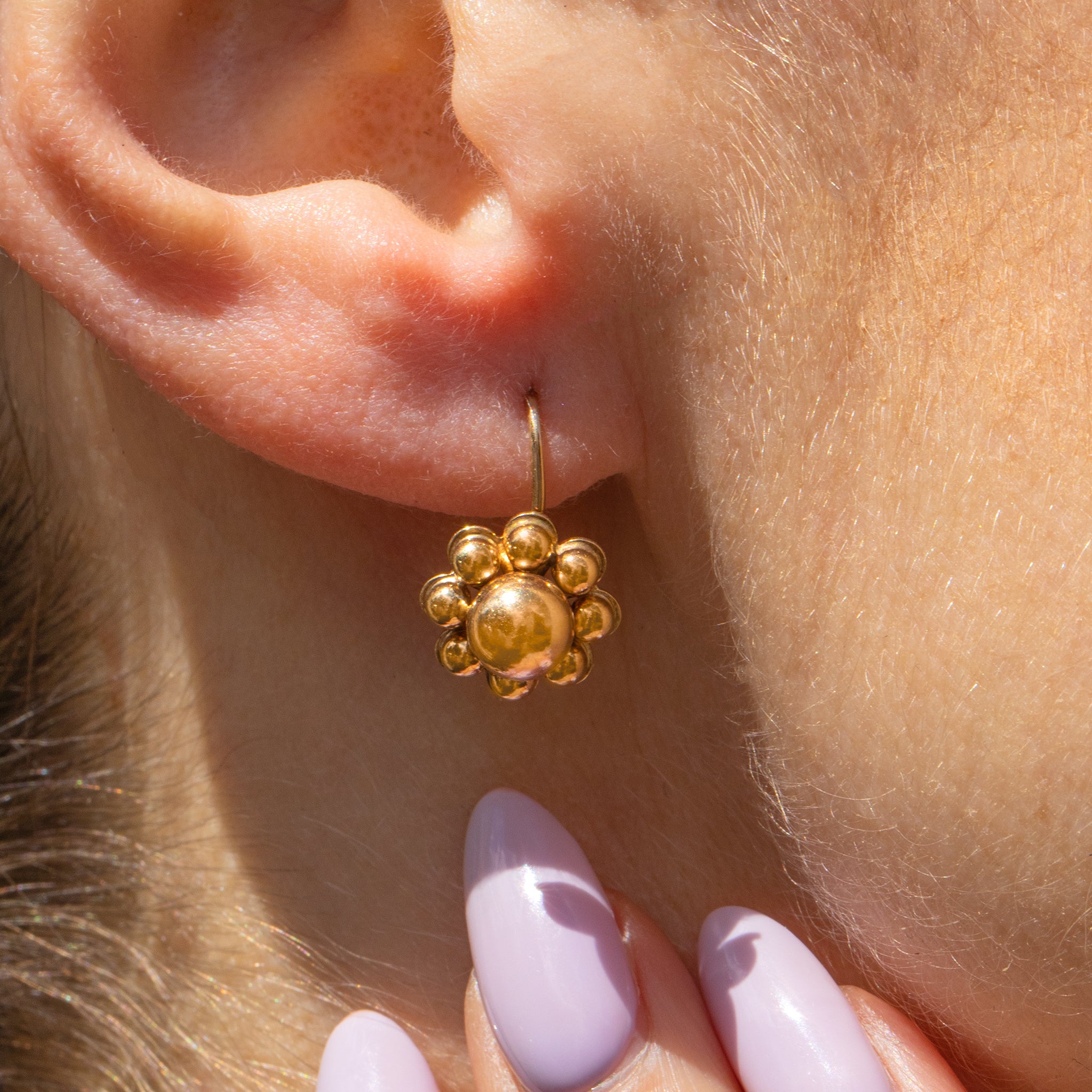 The bold design of these 9ct Gold flower earrings is what makes them so sublime! Crafted entirely from beaded details to form their plump floral form they make a cheerful pair, and to make things better they are formed from glossy 9ct Gold.