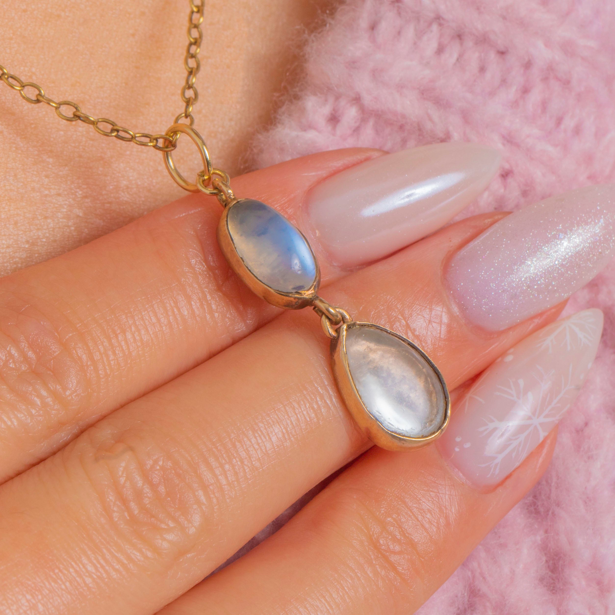 9ct Gold Foiled Moonstone Double Drop Pendant