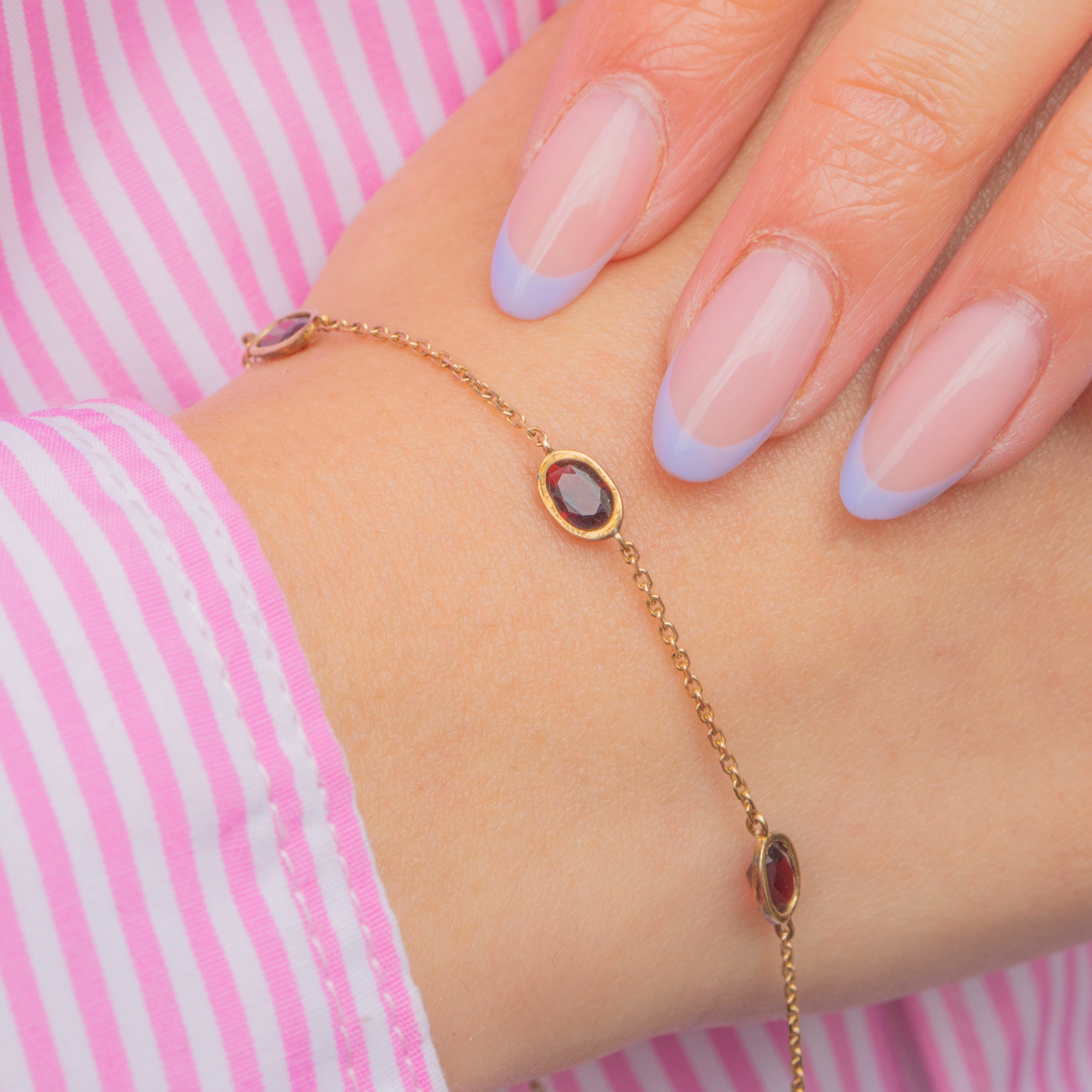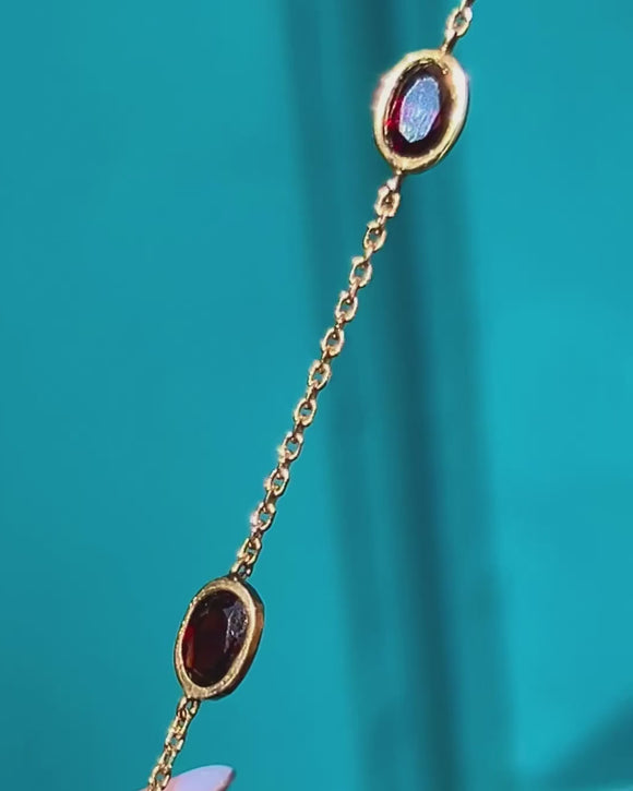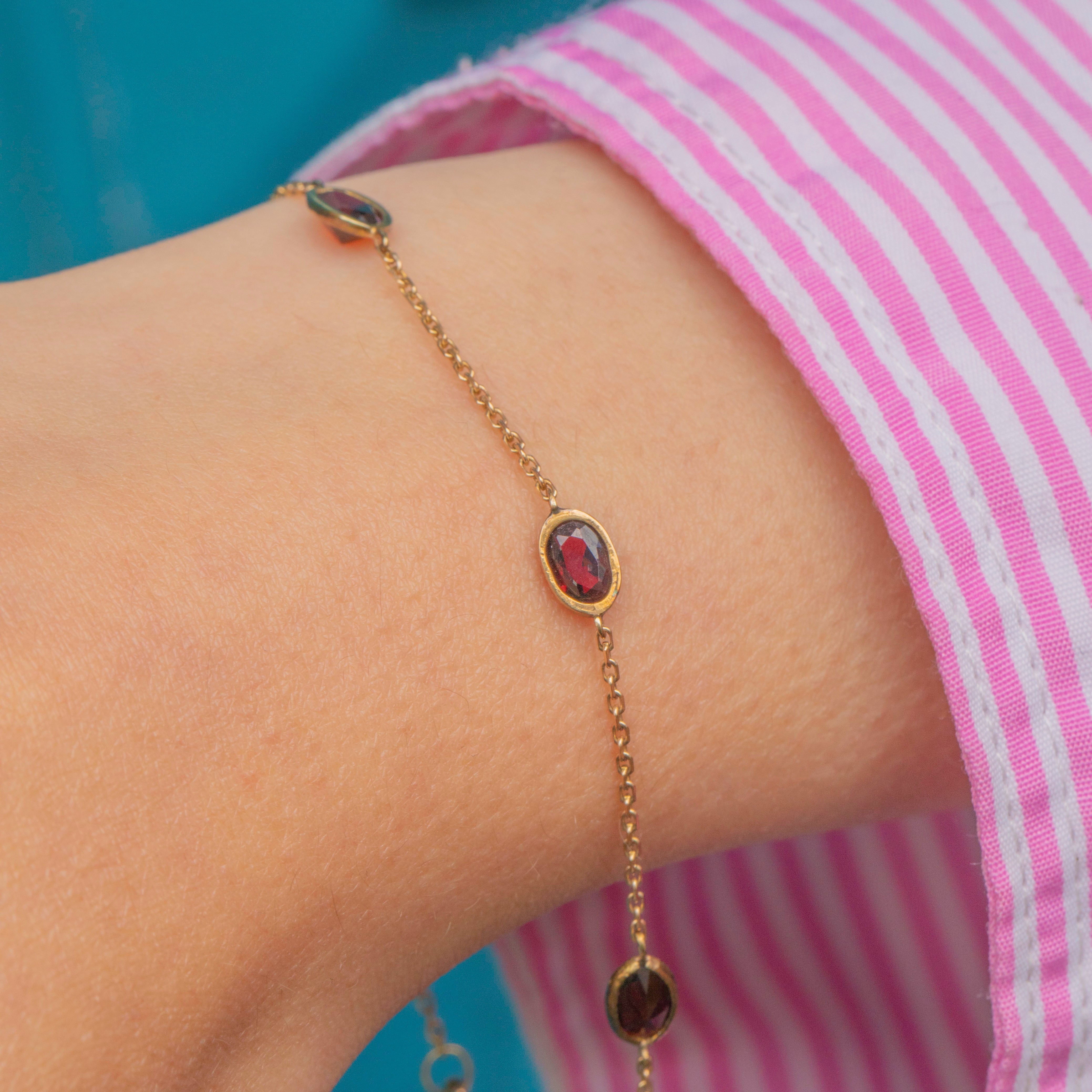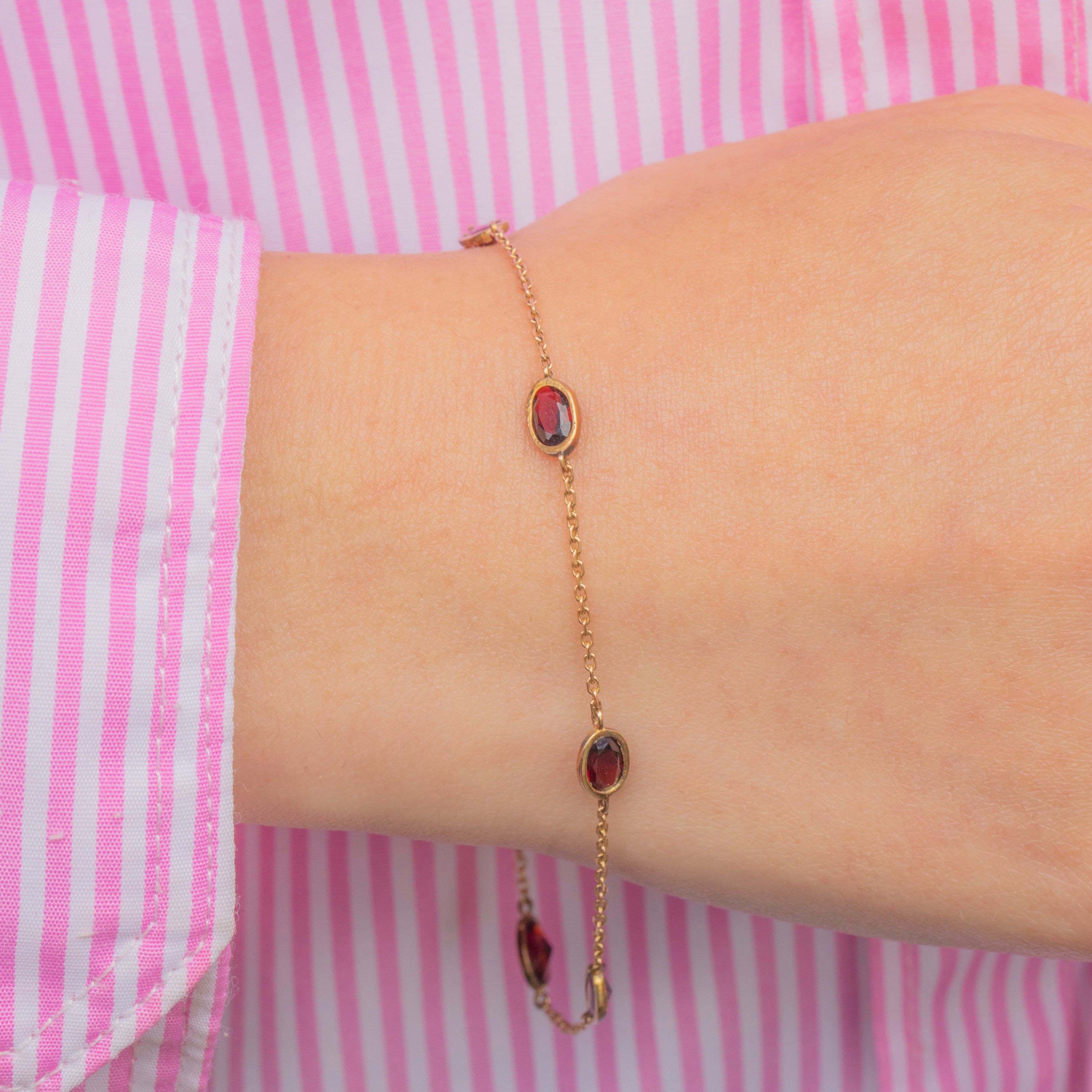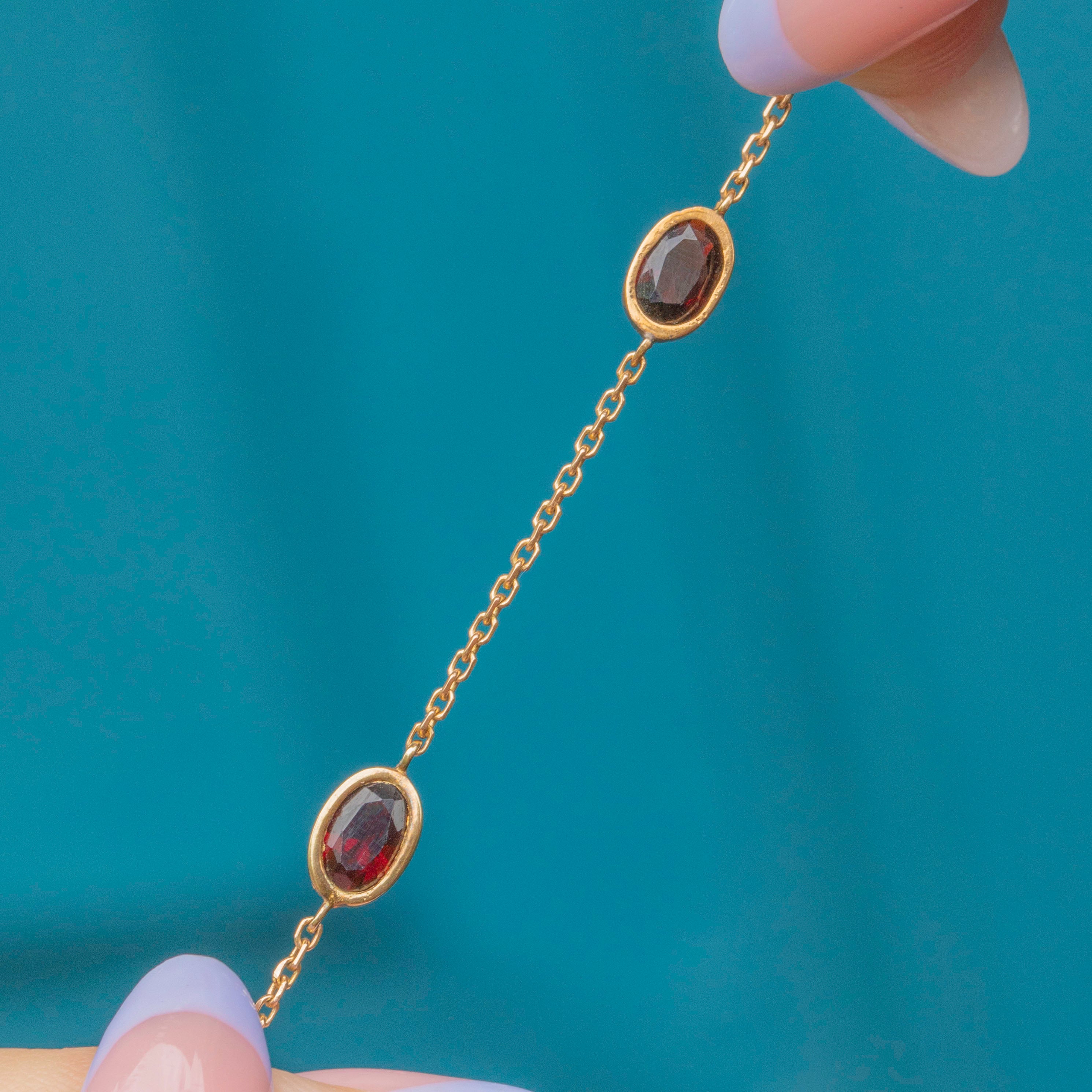 Dainty, lightweight and fully hallmarked to 1981, this 9ct Gold Garnet bracelet is a gorgeous piece!