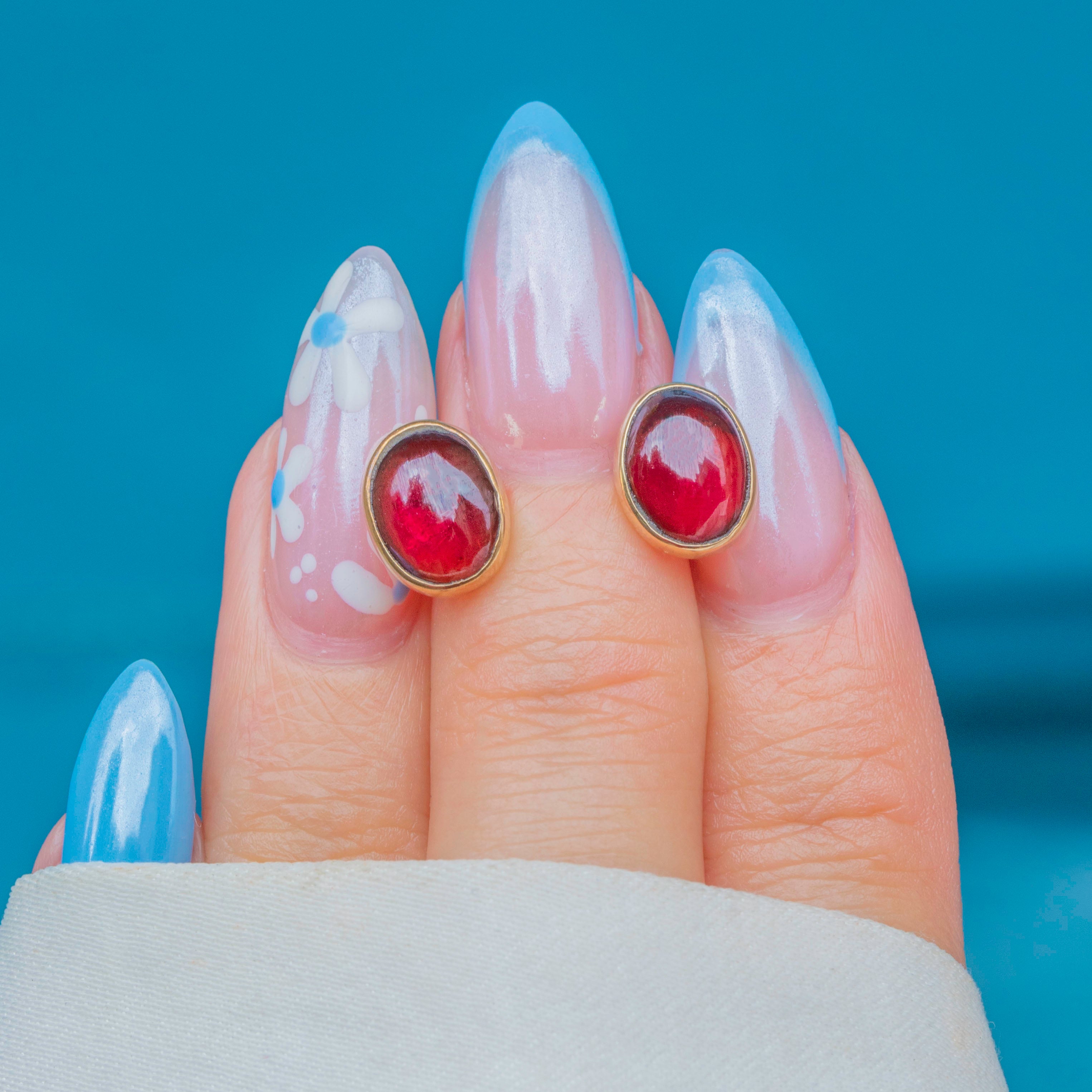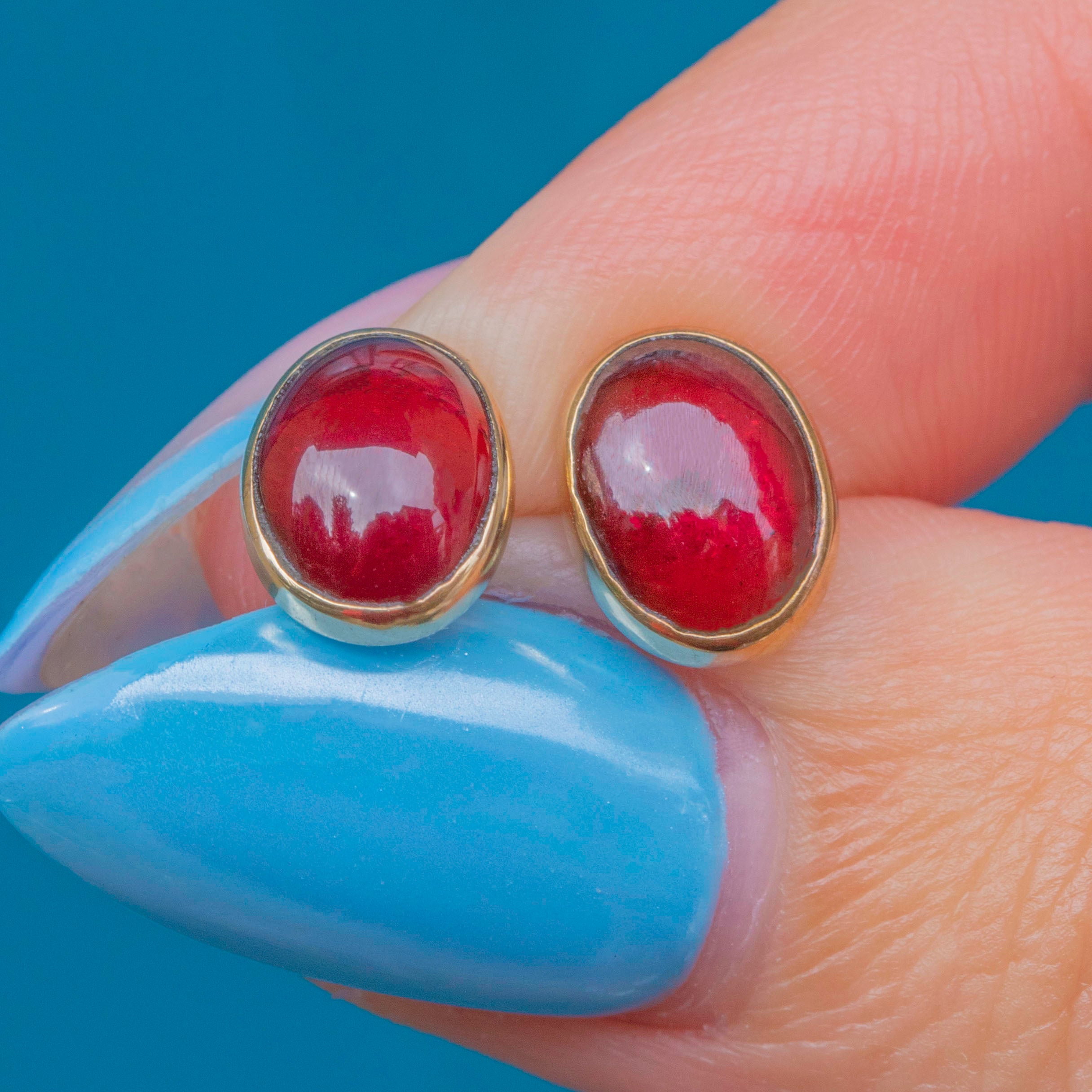 9ct Gold Garnet Cabochon Stud Earrings