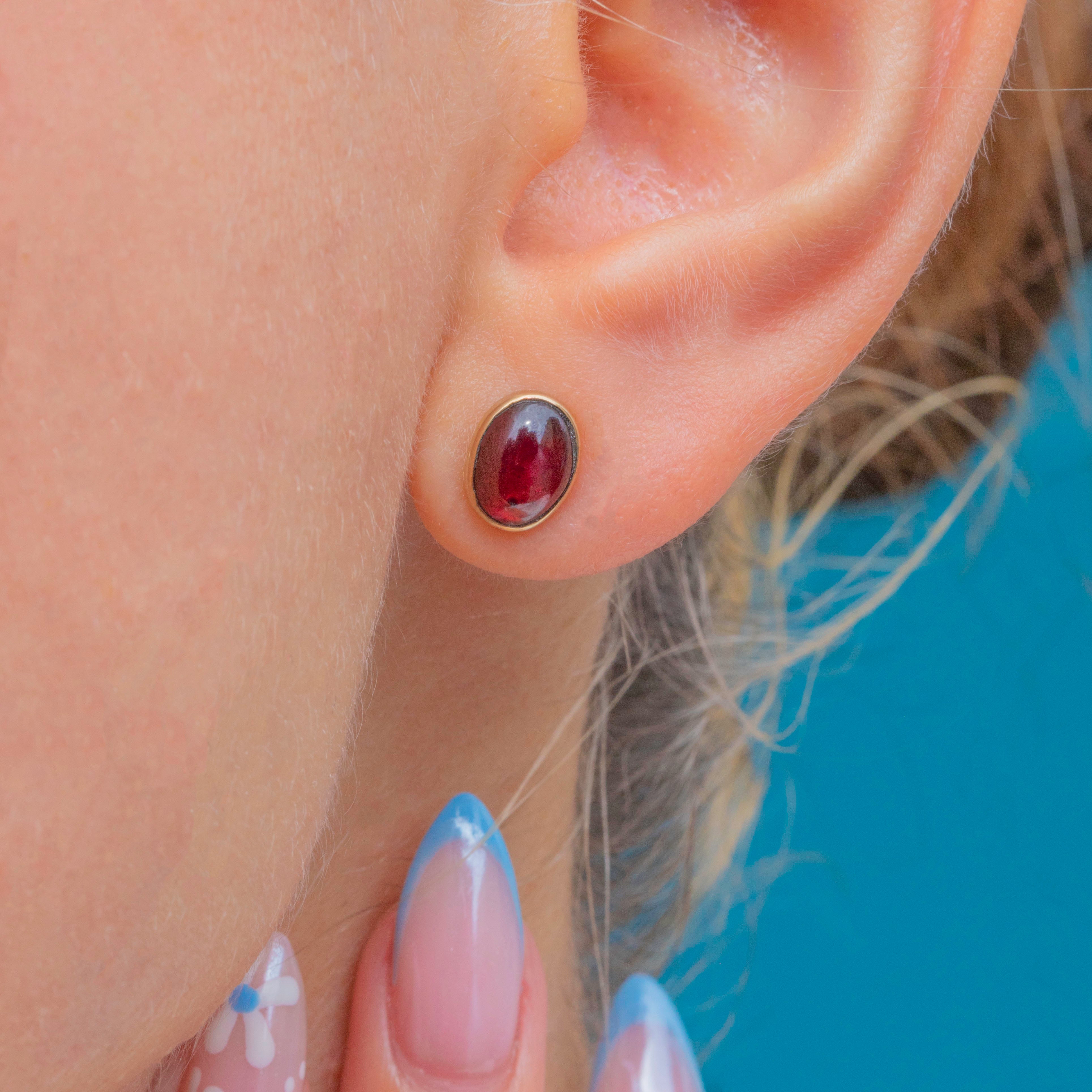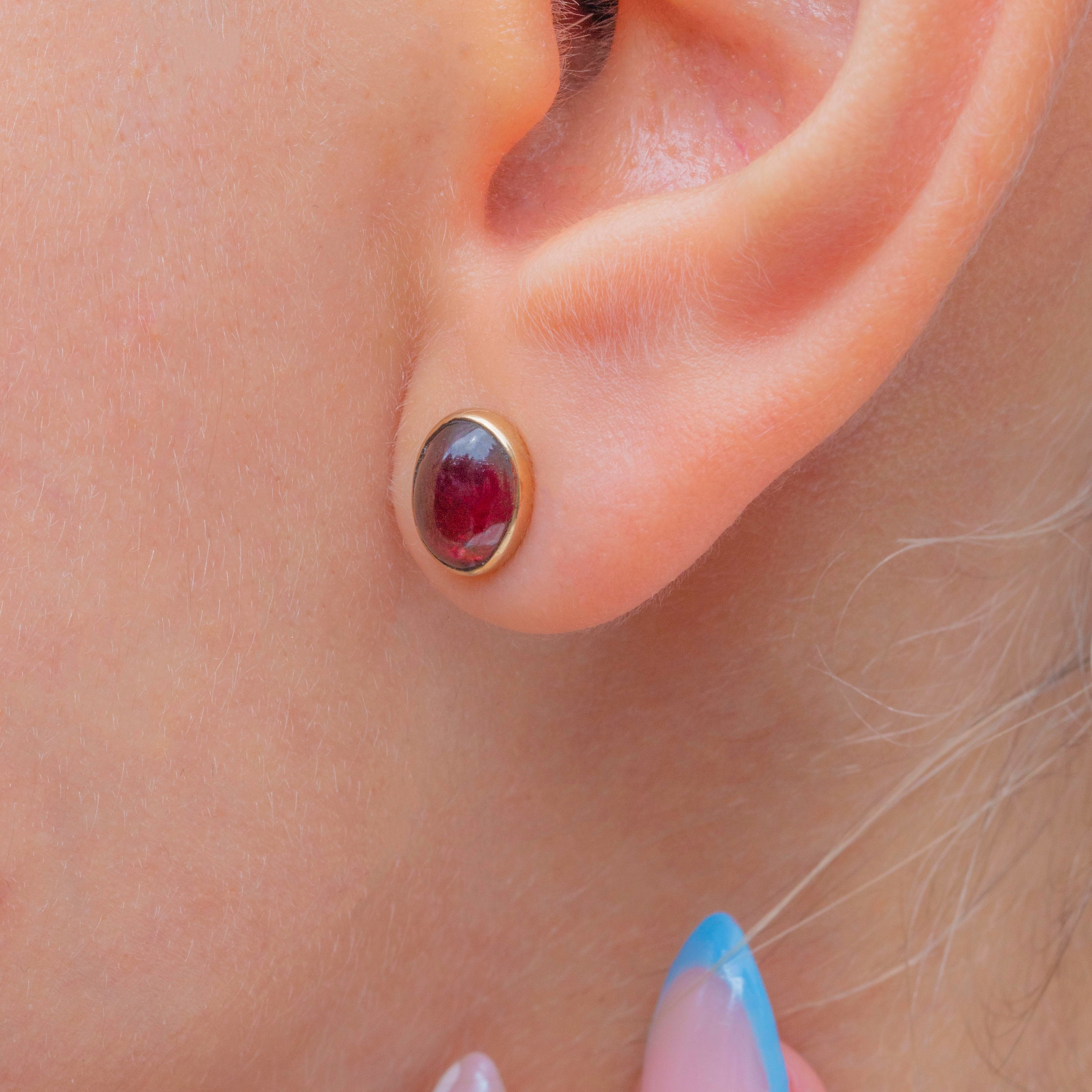 EXCELLENT: The Garnets sit securely in their bezels and are free from any notable signs of wear. With secure butterfly backs, these Garnet studs can be worn with utmost confidence.
