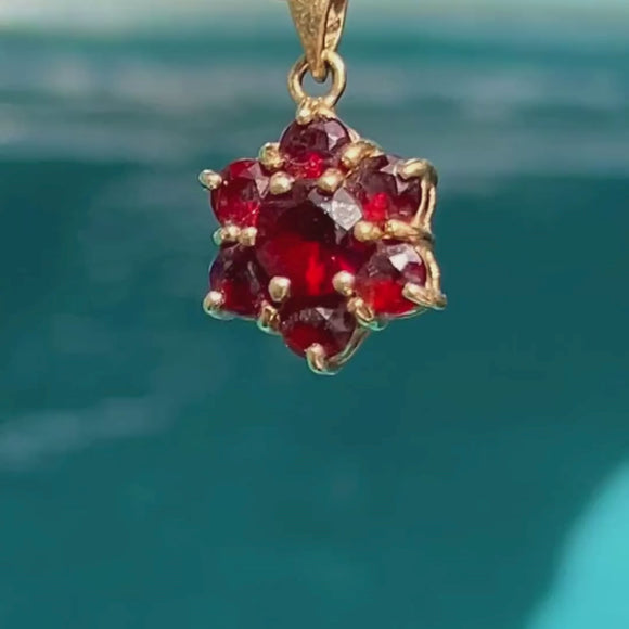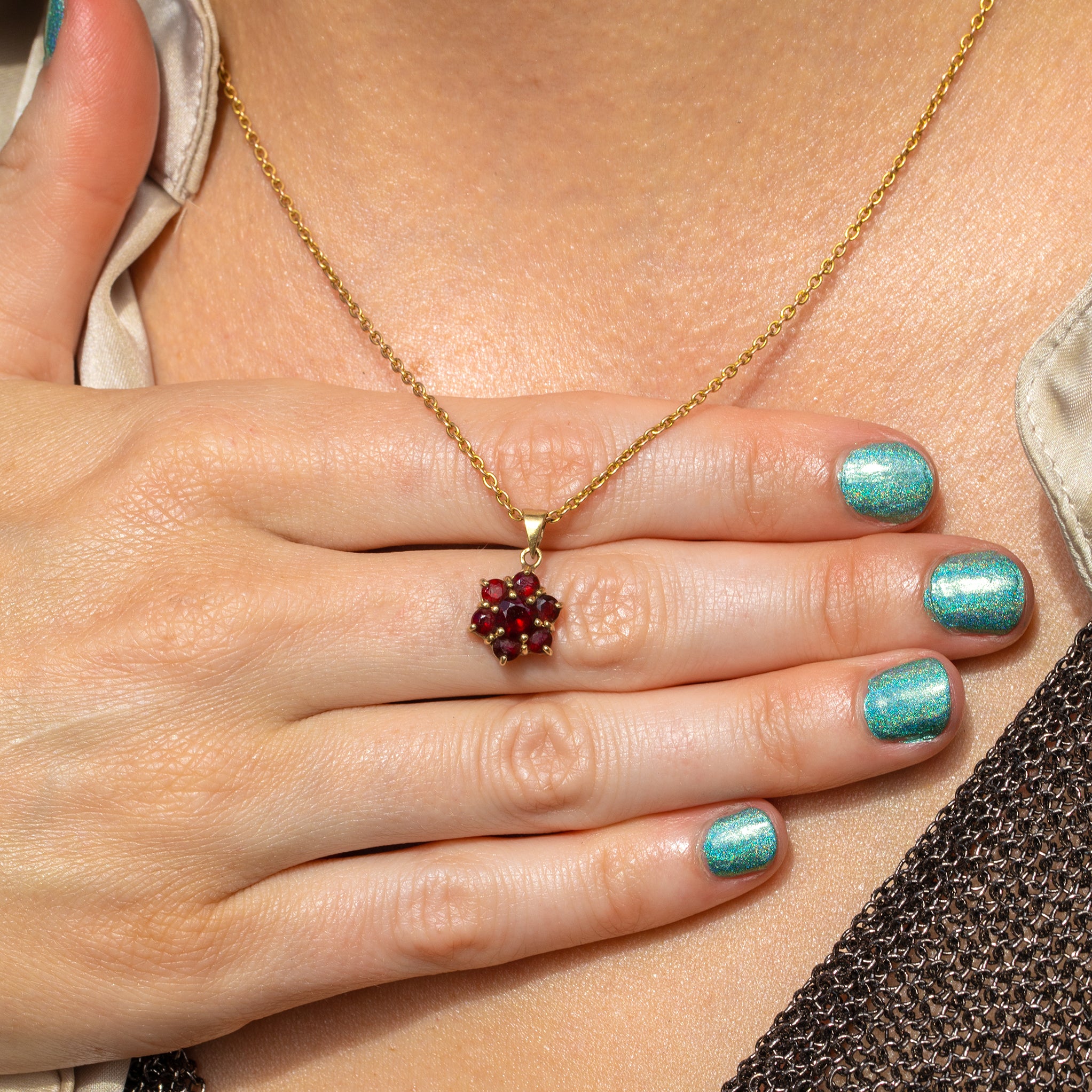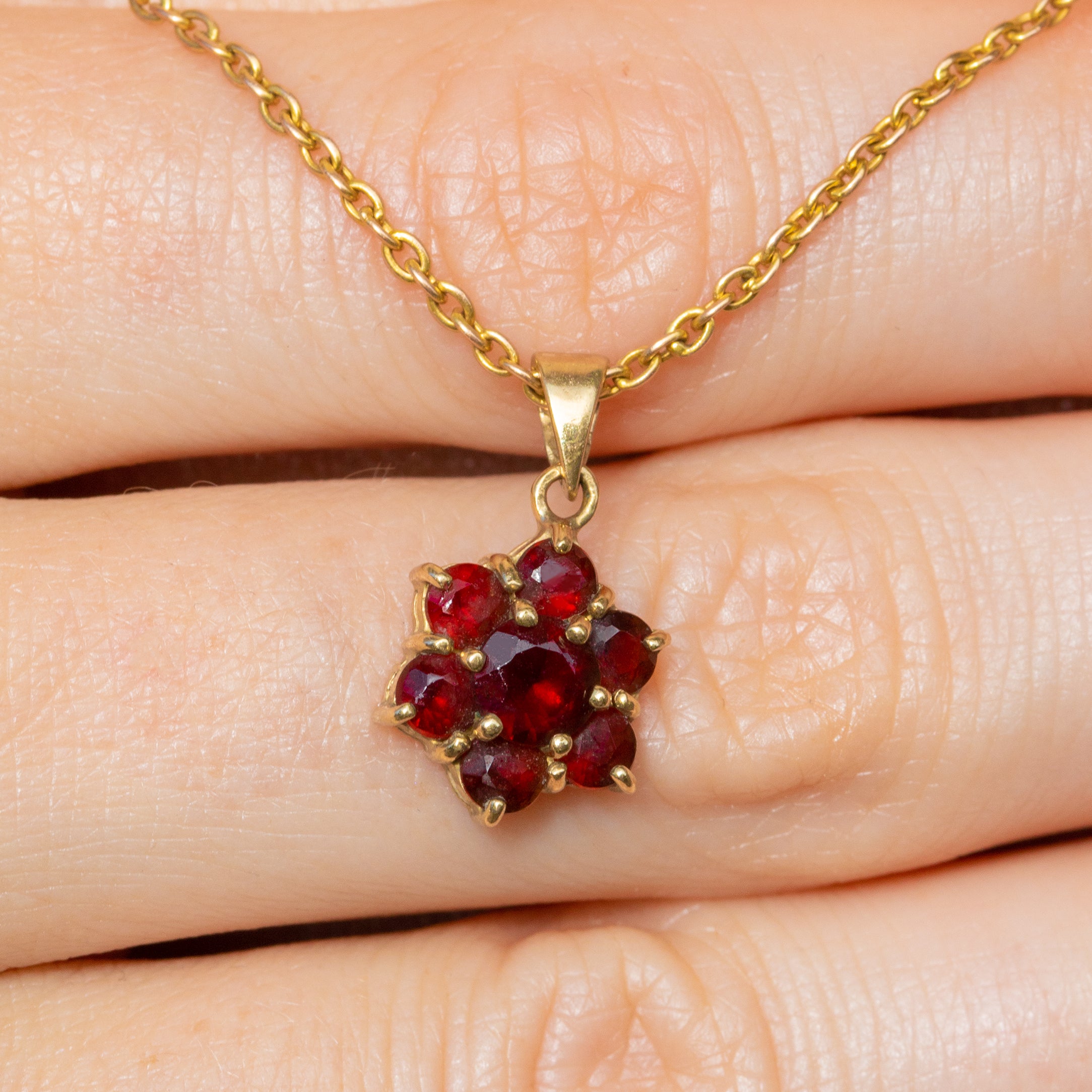 EXCELLENT. With securely set Gemstones, saturated 9ct Gold and a sturdy bale, this 9ct Gold Garnet flower charm is in excellent condition!