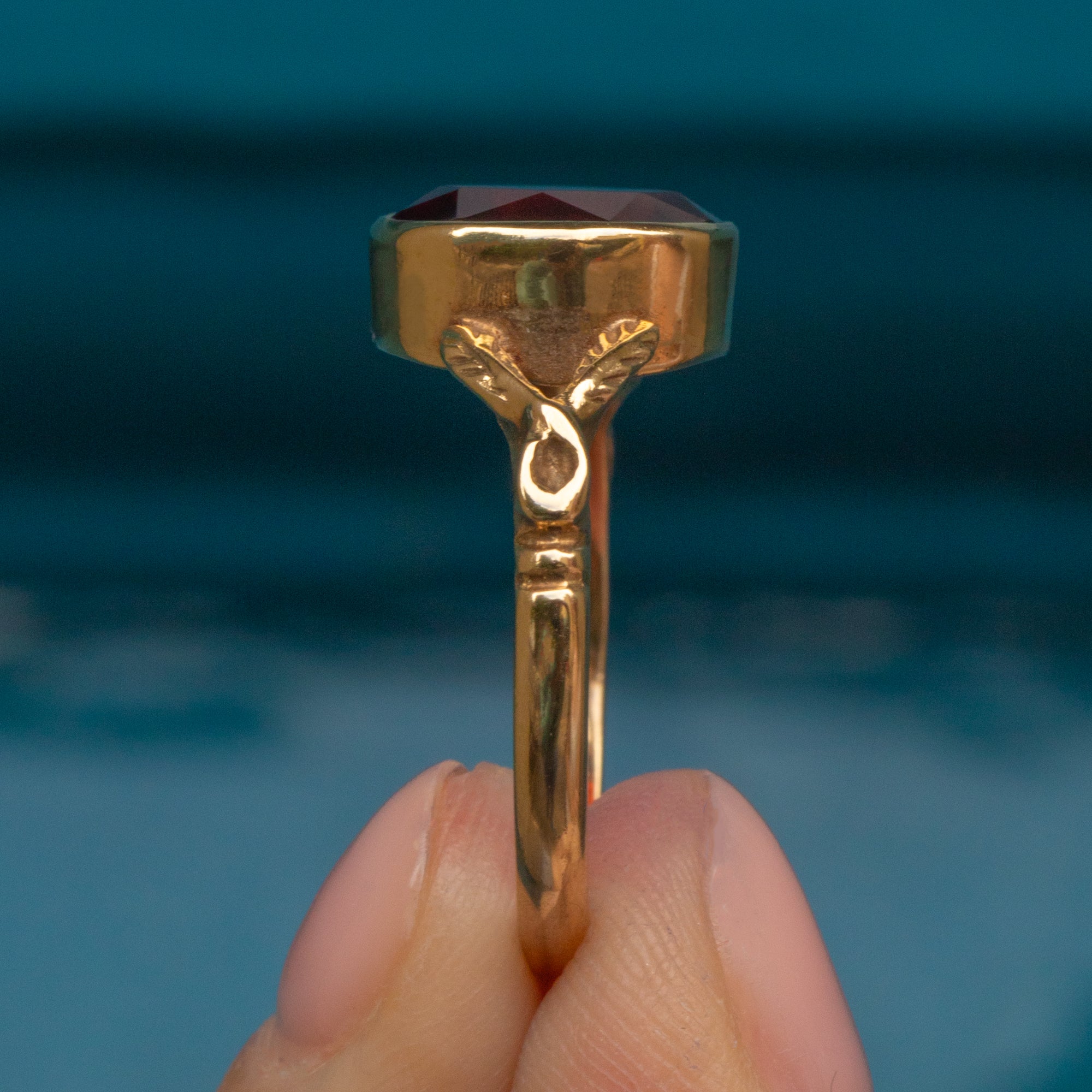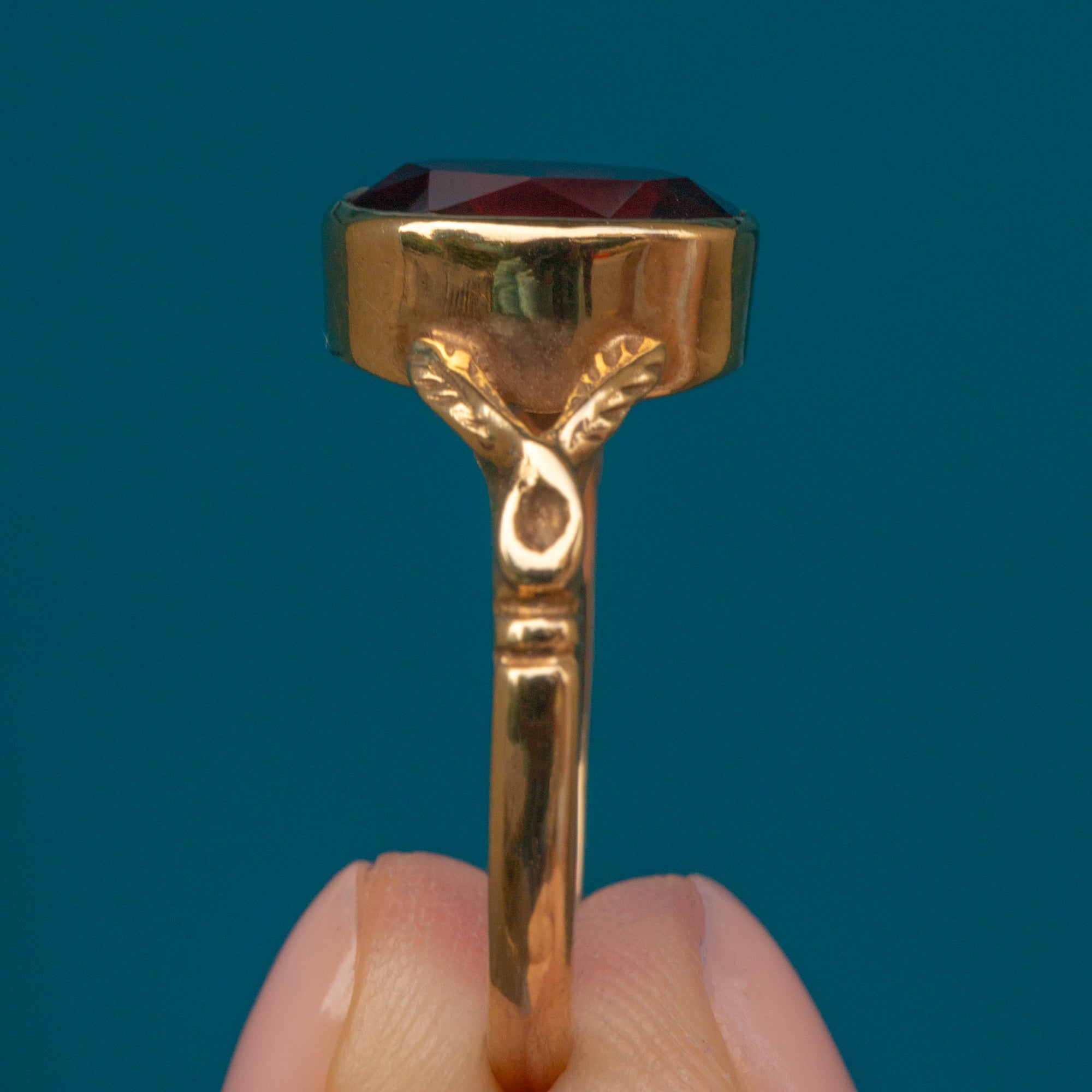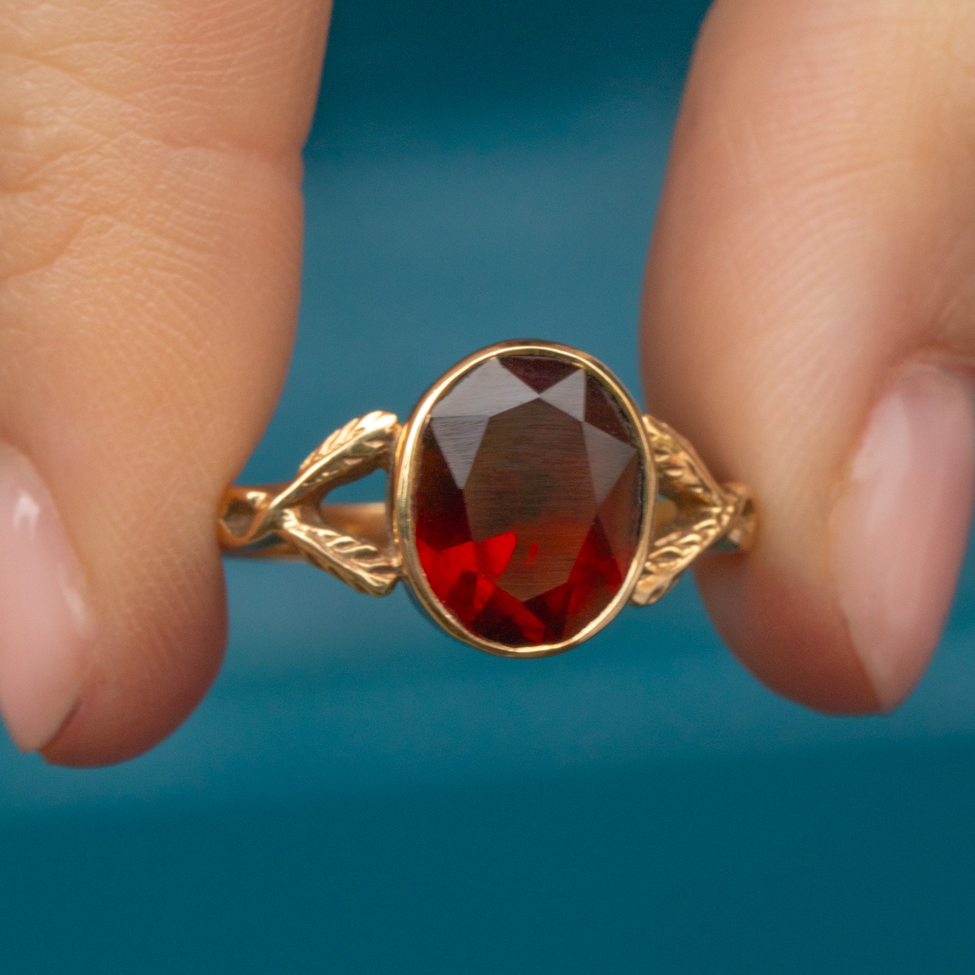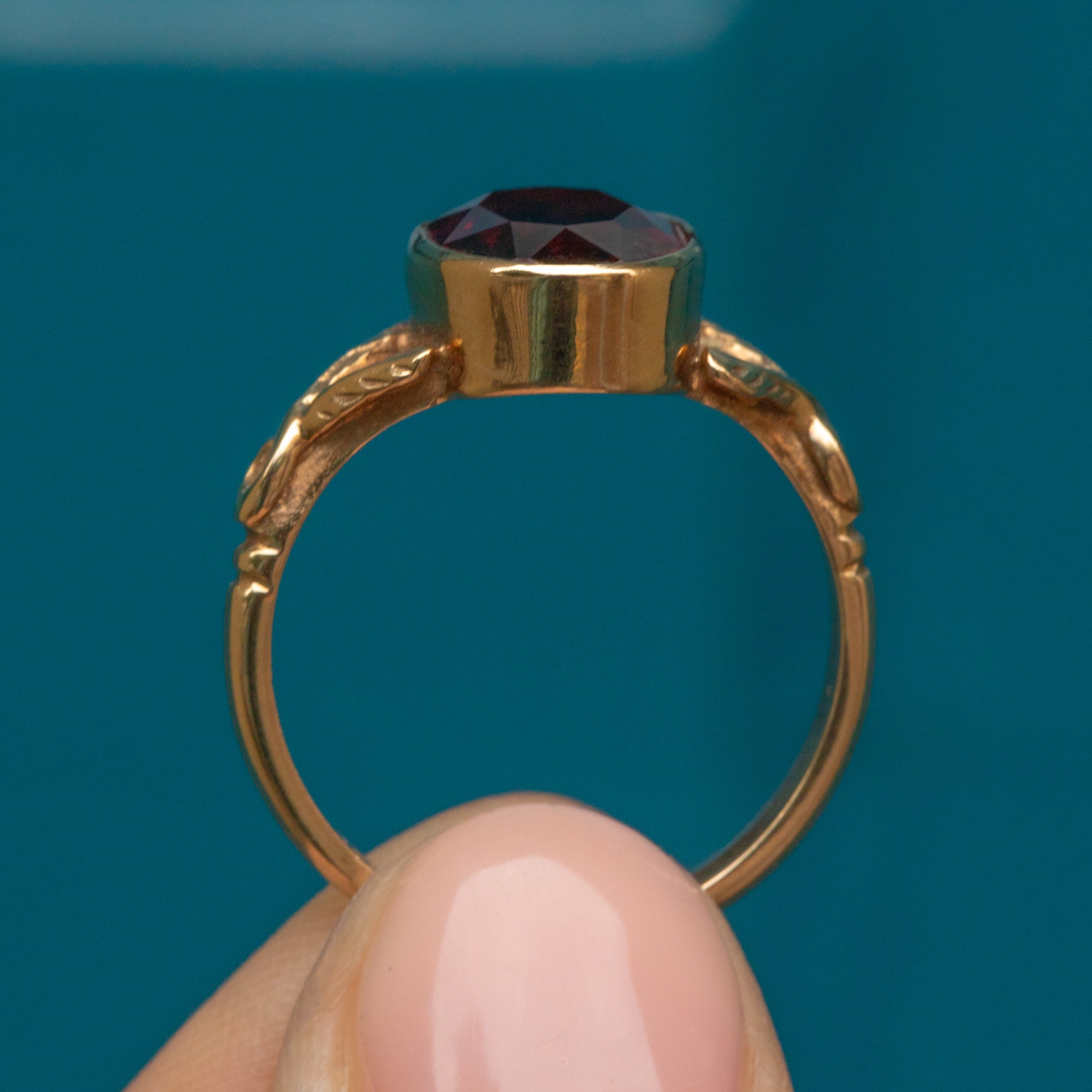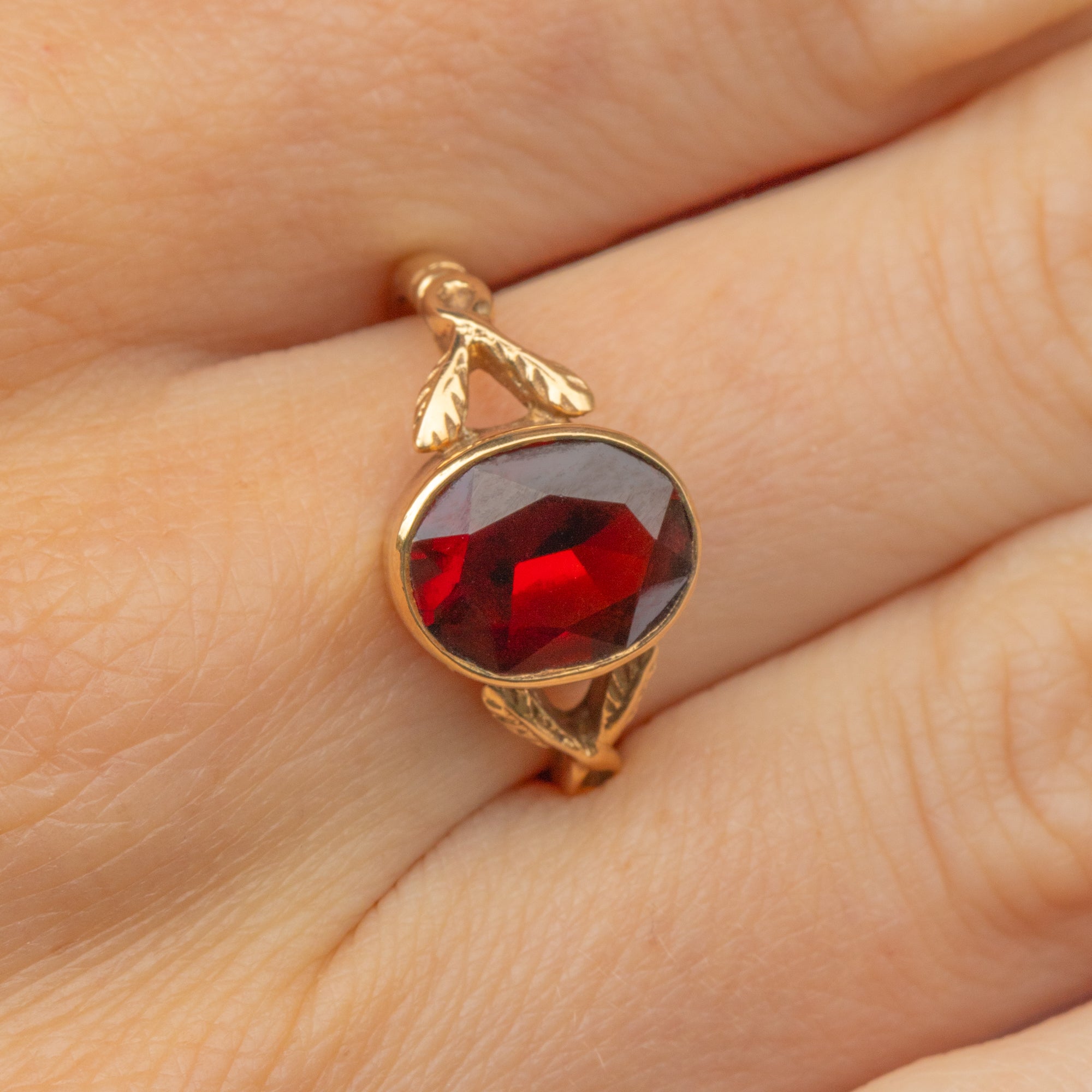 The 9ct Gold band will wrap around your finger with luxury, with the decorative foliate split shoulders bringing an enchanting finish. Set to impress, this vintage Garnet ring will quickly become a favourite within your collection!