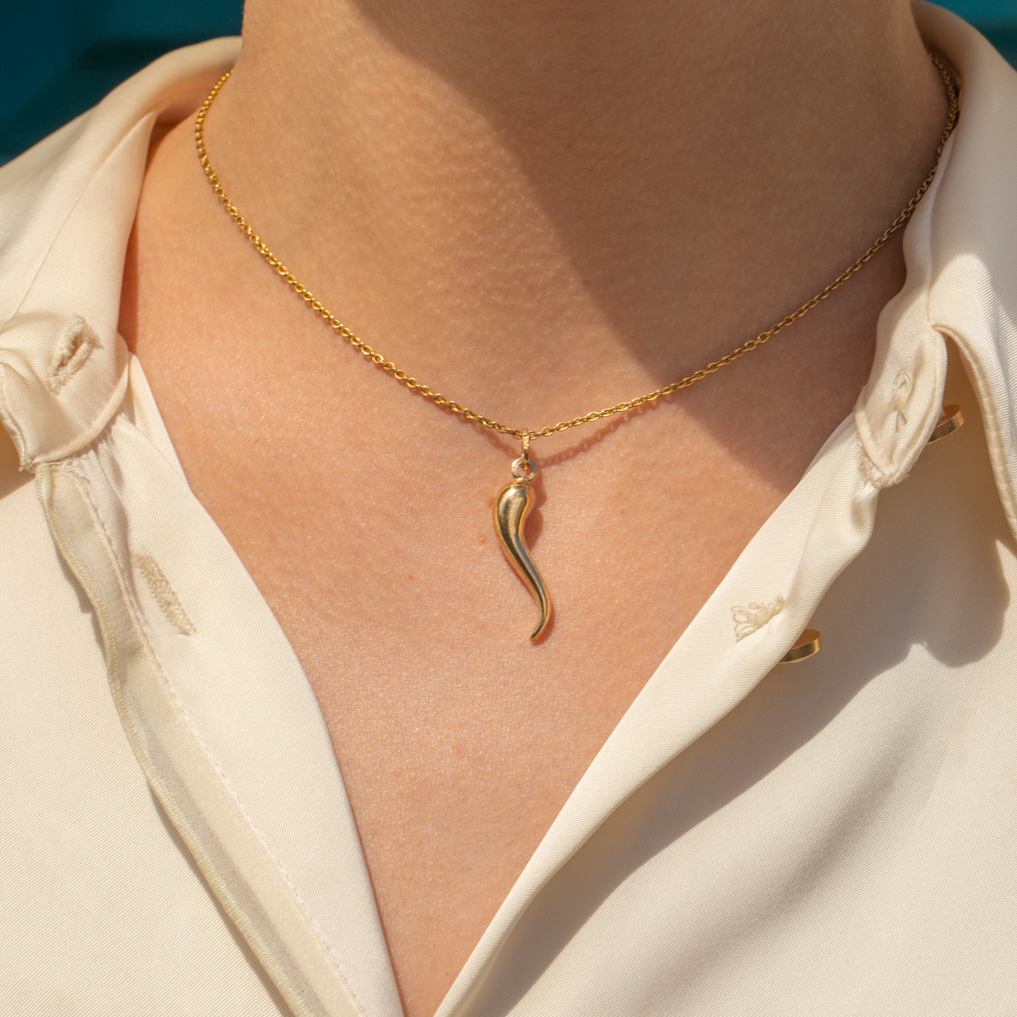 Her striking form will suspend elegantly from your favourtite chain, instantly adding a luxurious flash of Gold to your outfit!