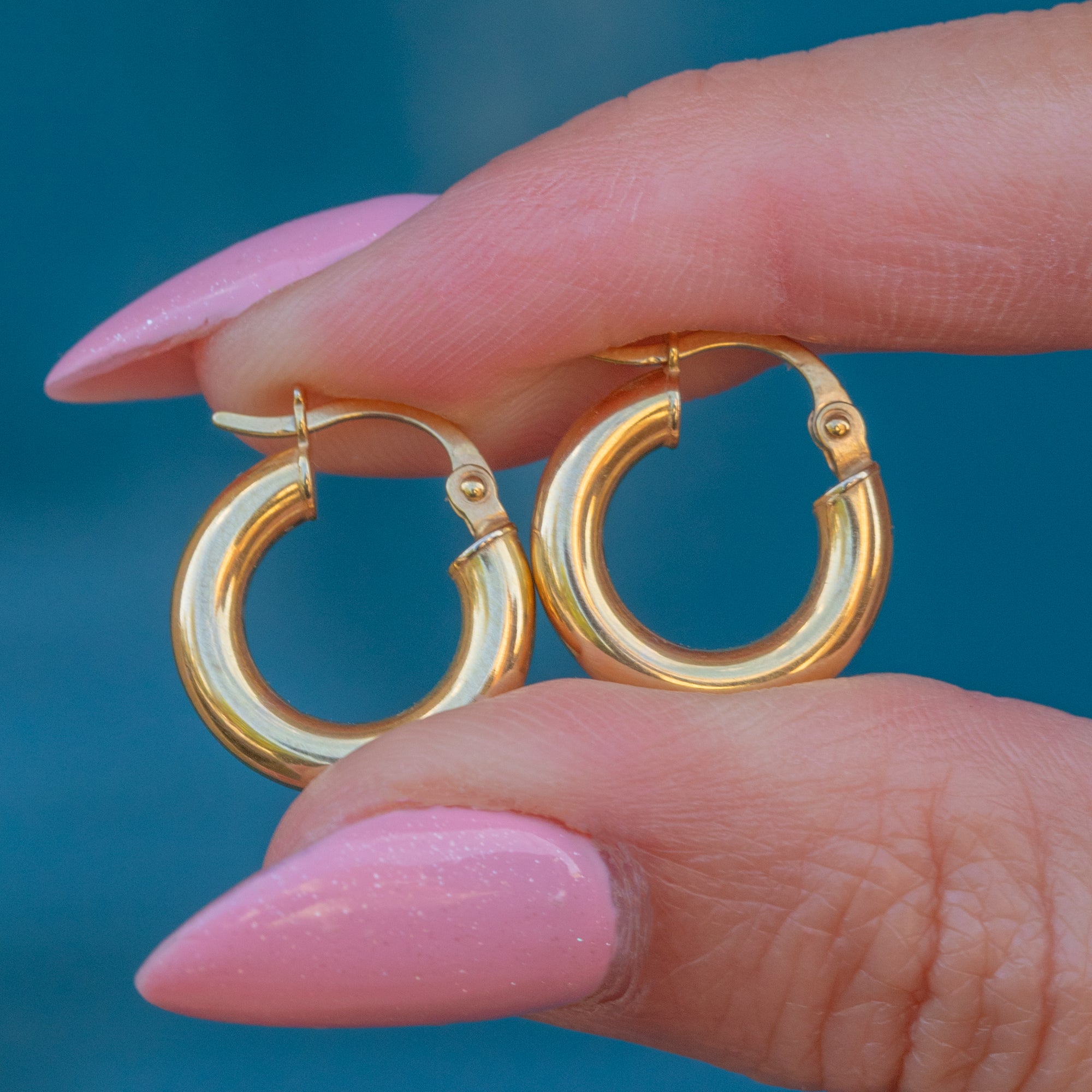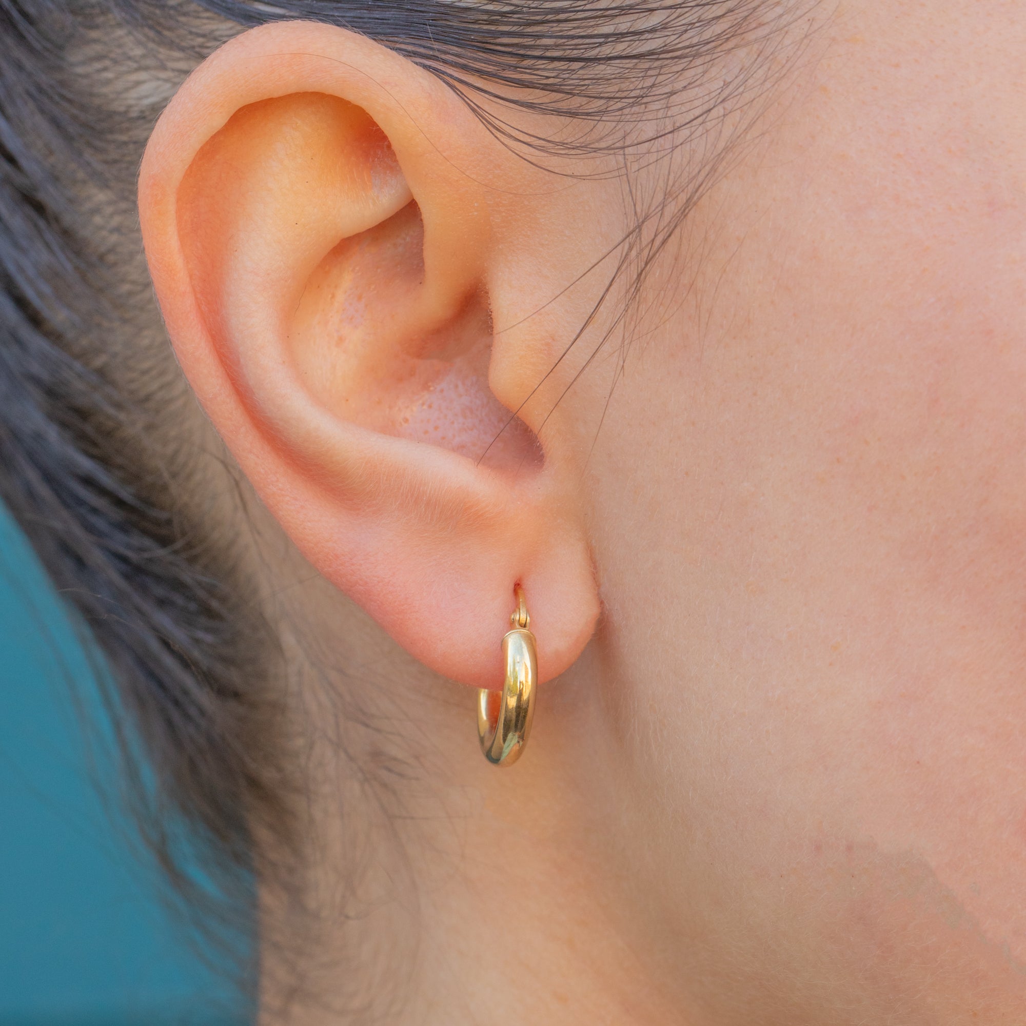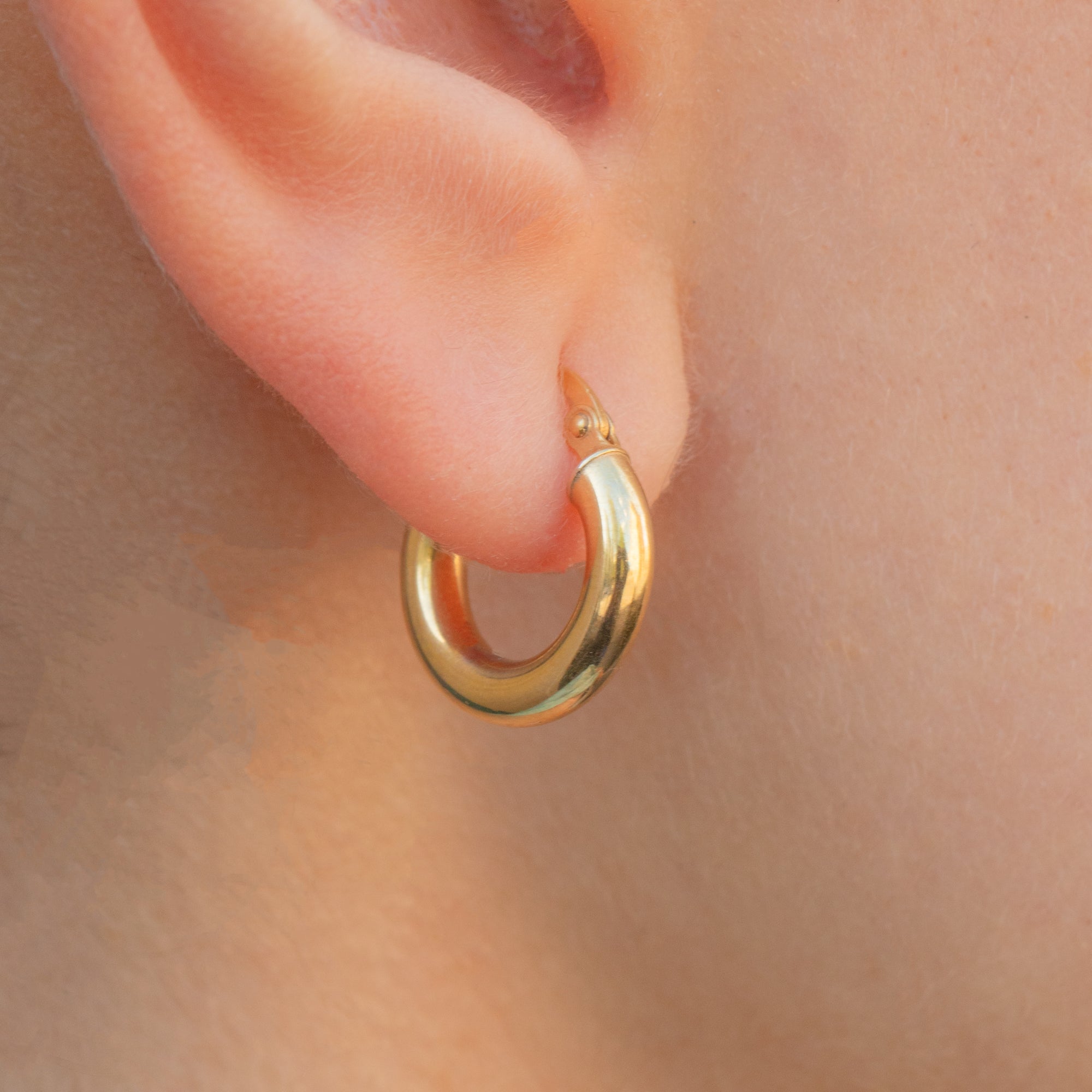 These donut hoops are dainty and perfect for everyday wear, with a chunky design that gives them impact! Whether worn alone or layered with other earrings to create the ultimate earrings stack, these solid Gold hoops will soon become an everyday essential.
