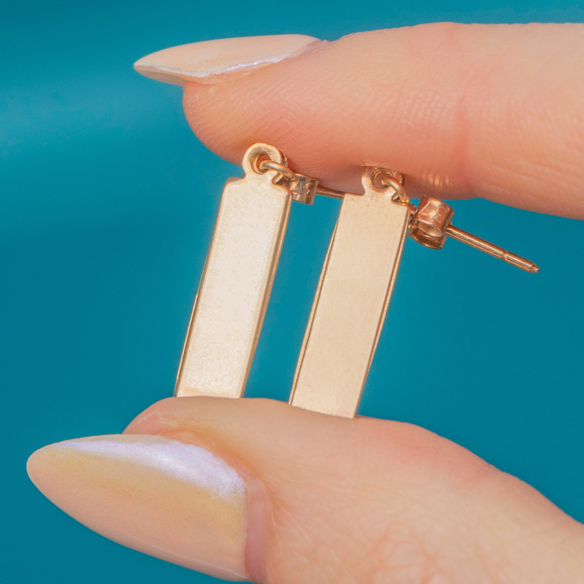 EXCELLENT. These 9ct Gold ingot earrings are in excellent condition. The earrings are hallmarked to the year 1979, and dainty enough for everyday. This pair of pretties are the perfect thing to gift this festive season!