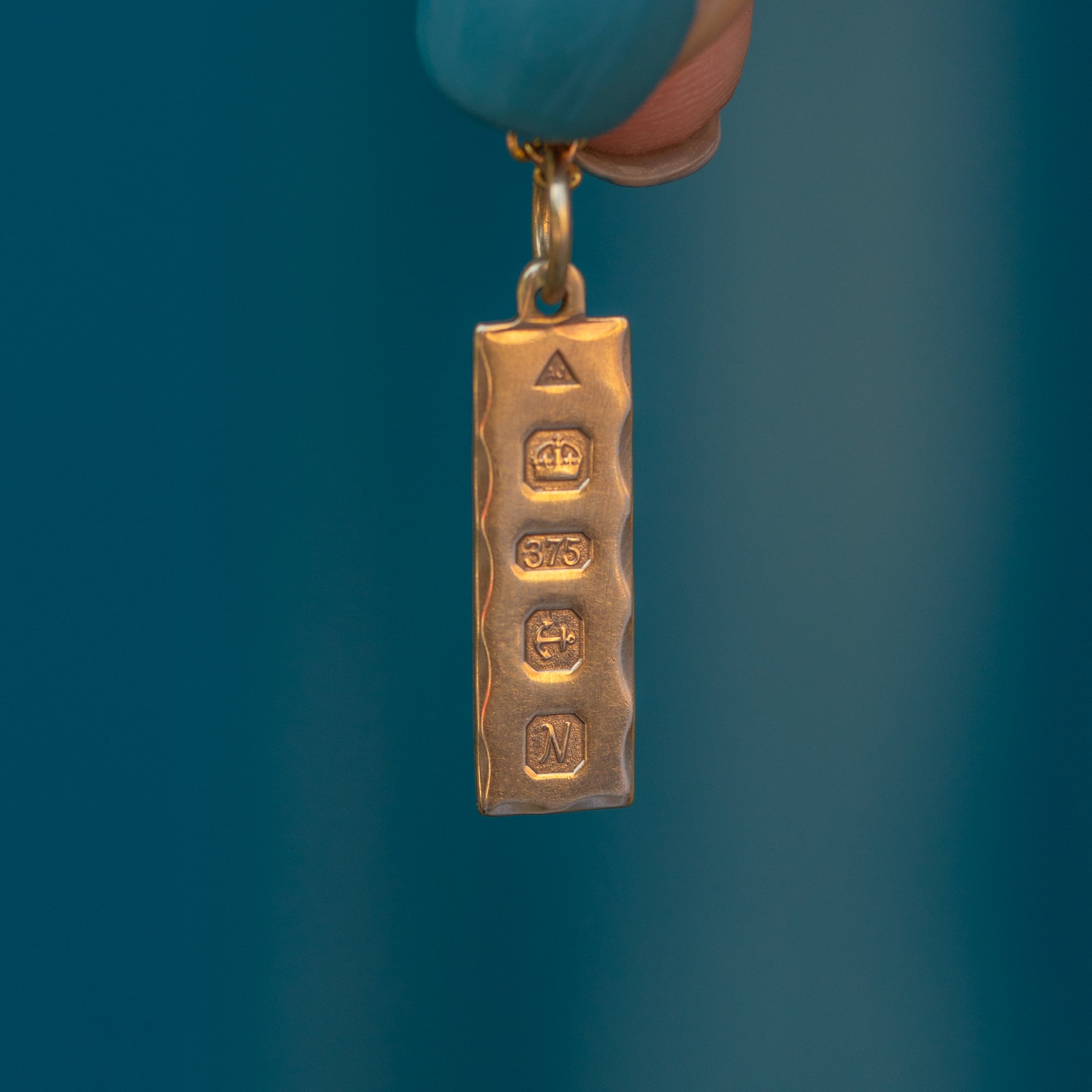 Nothing beats a sweet slab of Gold like this 9ct Gold ingot pendant, to add opulence to your repertoire. With her front adorned with a full set of chunky English hallmarks, the beauty of ingot pendants is making them the main feature and appreciating their bold design.